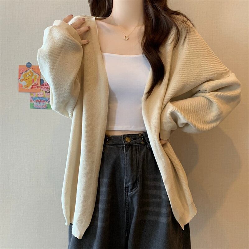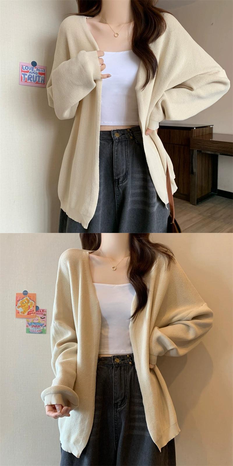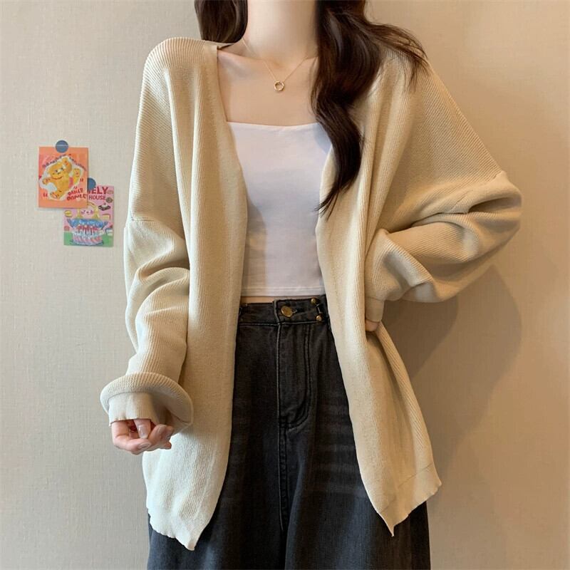 ミッドレングスセーターカーディガンコート女性秋と冬のレトロ怠惰なスタイルルーズで多目的な V ネック長袖セーター ロング オータム 秋物 ウィンター 冬物 Vネック 7460078772191007 | framboise21