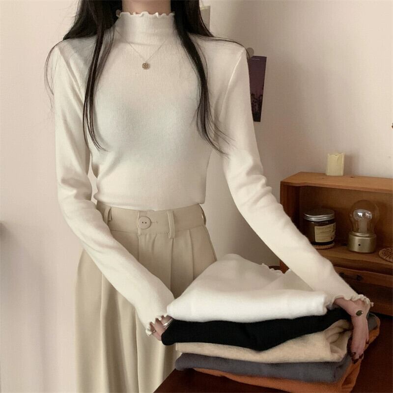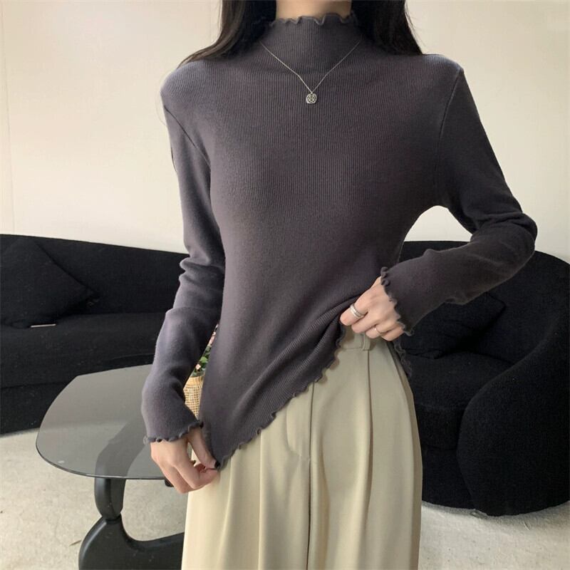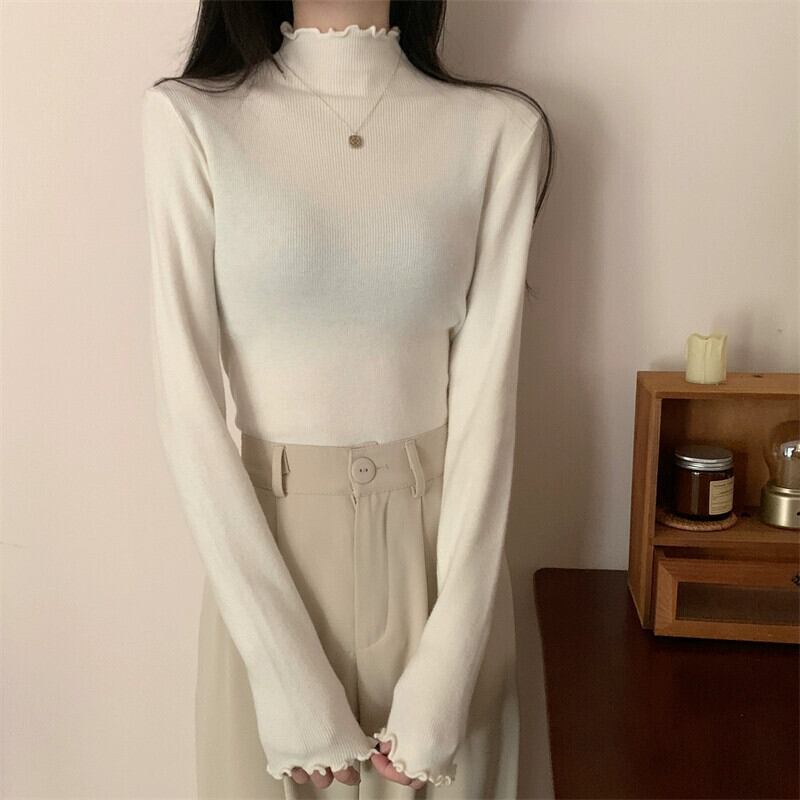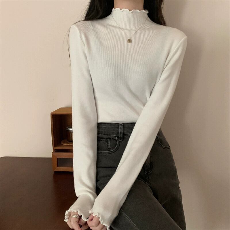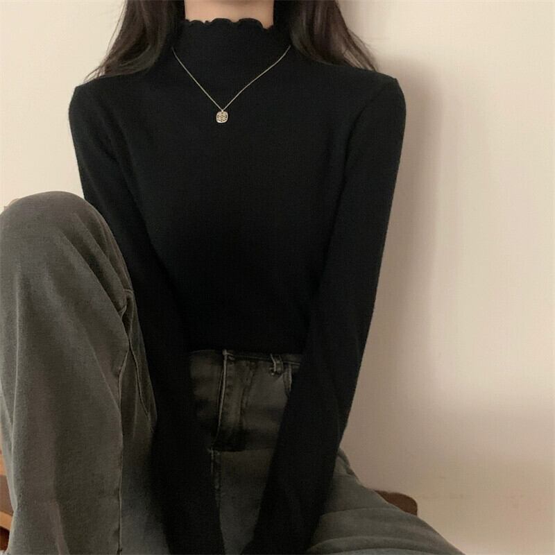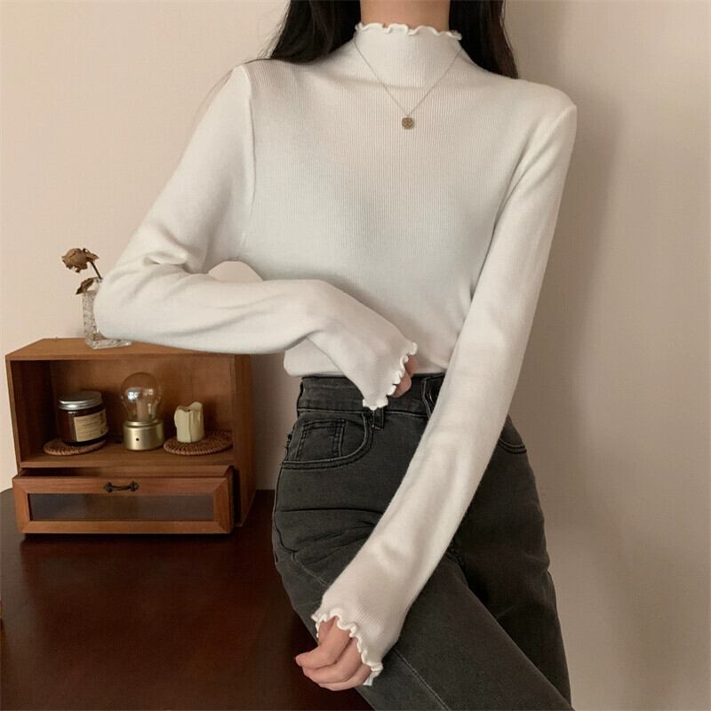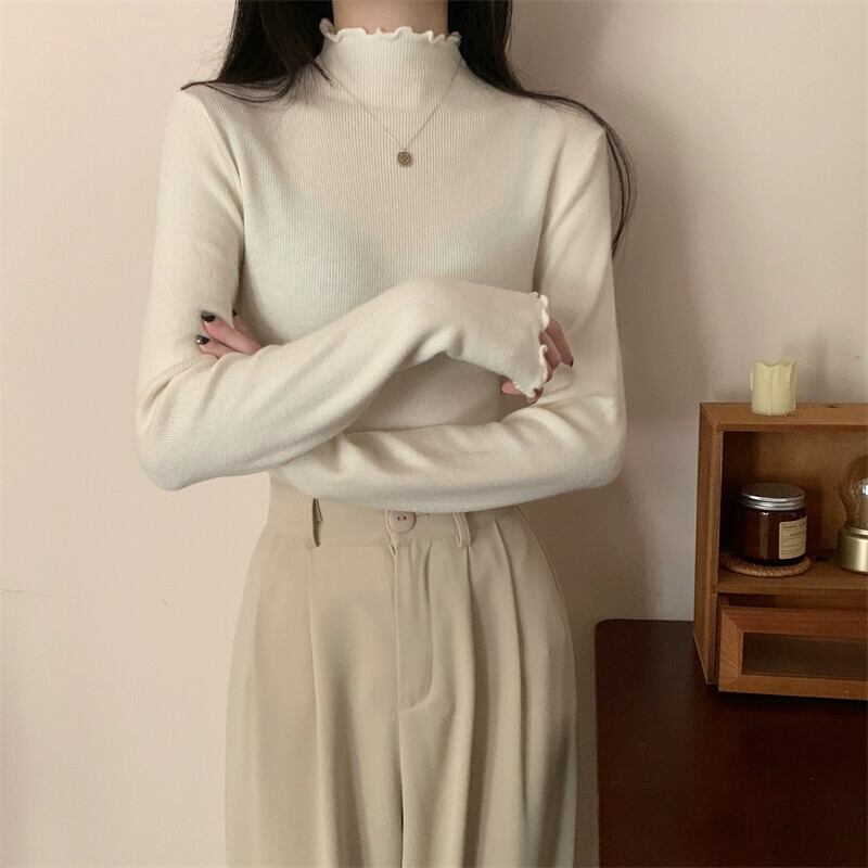 秋と冬のハーフタートルネックニットボトムシャツ女性、ファッショナブルでファッショナブル、スリムでスリム、真菌裾ミッドカラーセーター付き オータム 秋物 ウィンター 冬物 7460034710117515 | framboise21