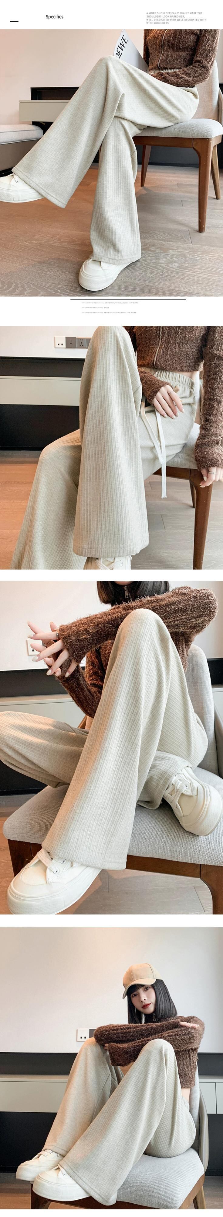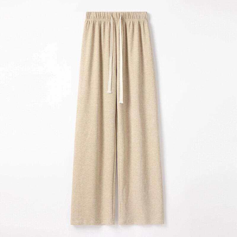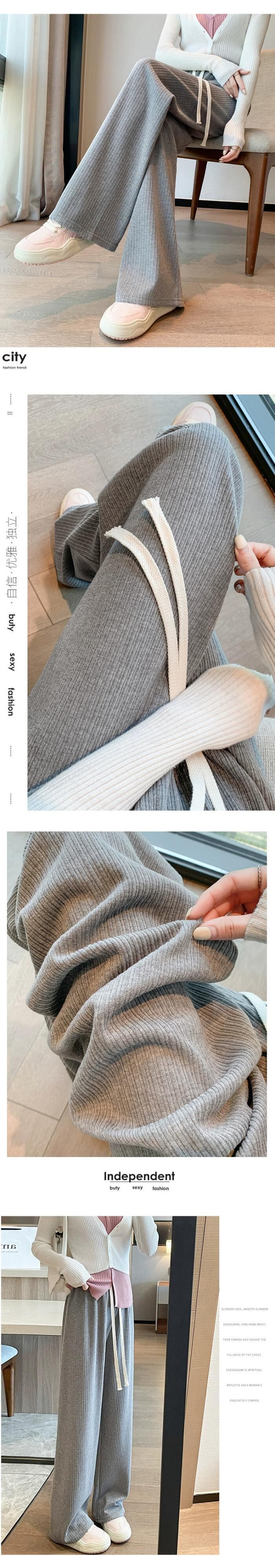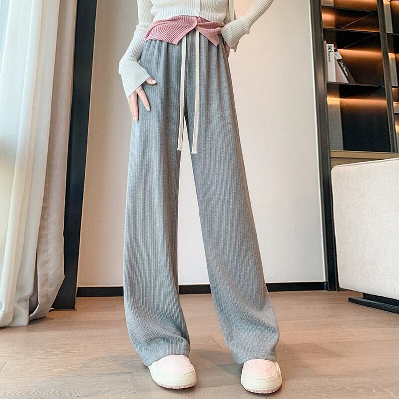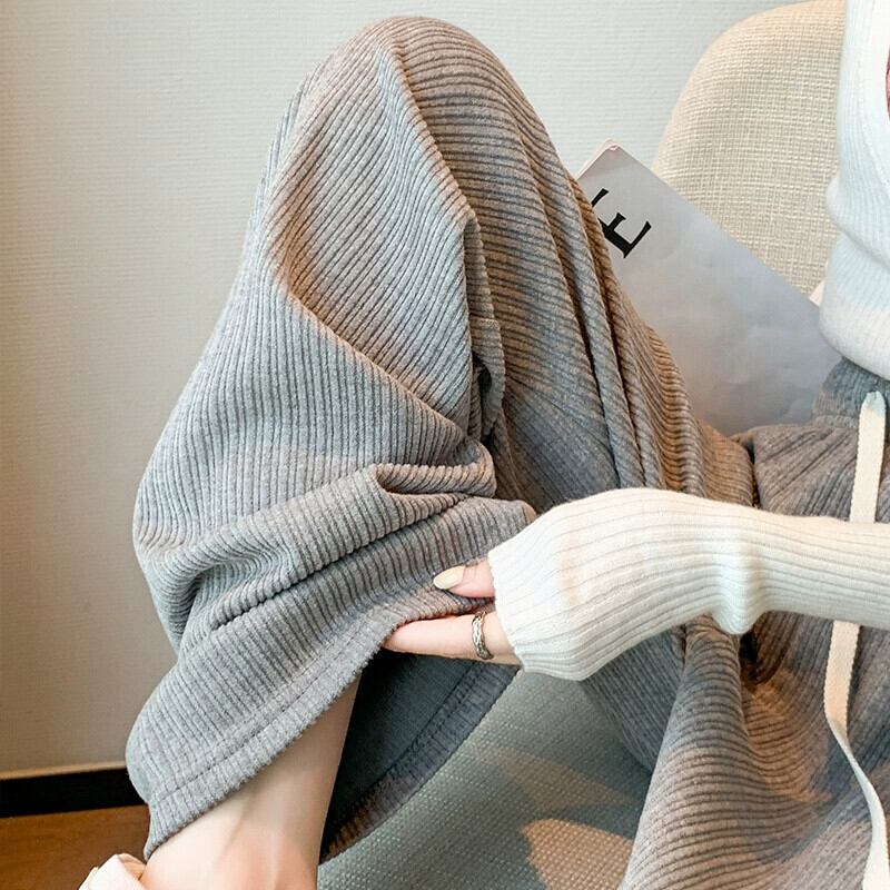 秋冬の厚いカシミアニットワイドレッグパンツ女性、ハイウエストの柔らかくもちもちドレープパンツ、ゆったりとしたカジュアルなストレートレッグもち米パンツ オータム 秋物 ウィンター 冬物 7460031486103985 | framboise21