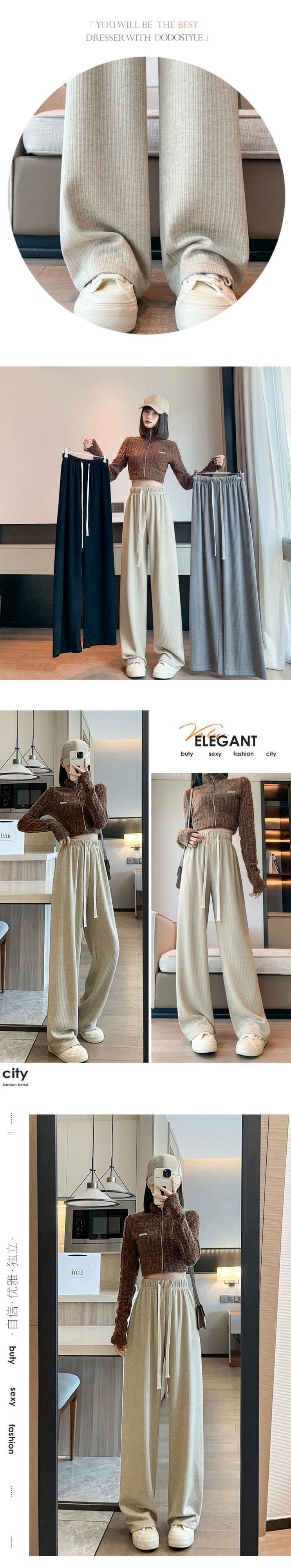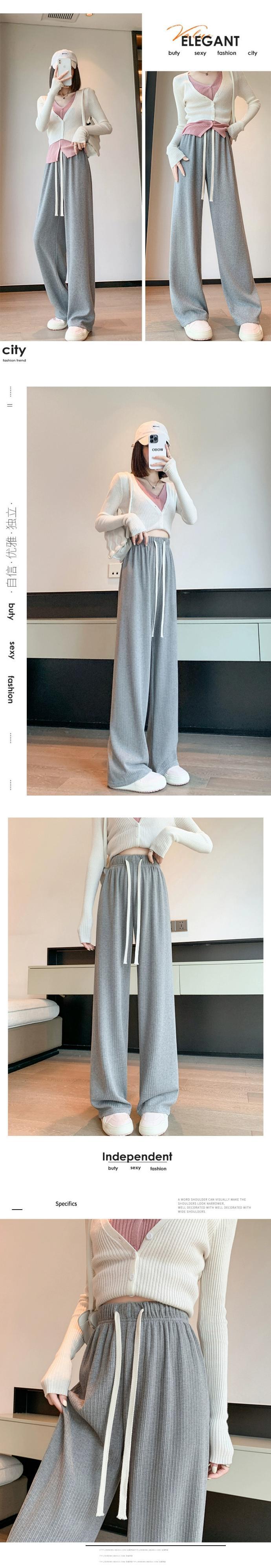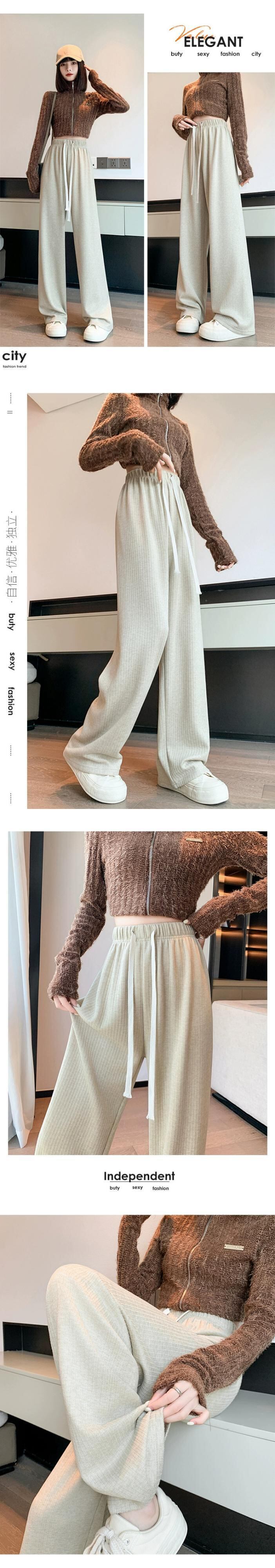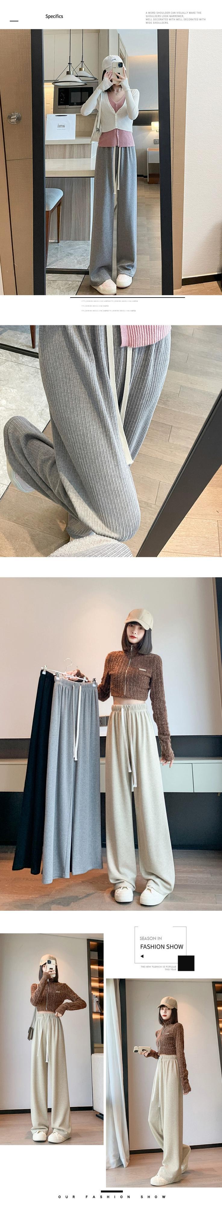 秋冬の厚いカシミアニットワイドレッグパンツ女性、ハイウエストの柔らかくもちもちドレープパンツ、ゆったりとしたカジュアルなストレートレッグもち米パンツ オータム 秋物 ウィンター 冬物 7460031486103985 | framboise21