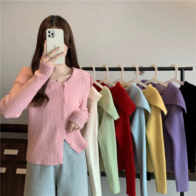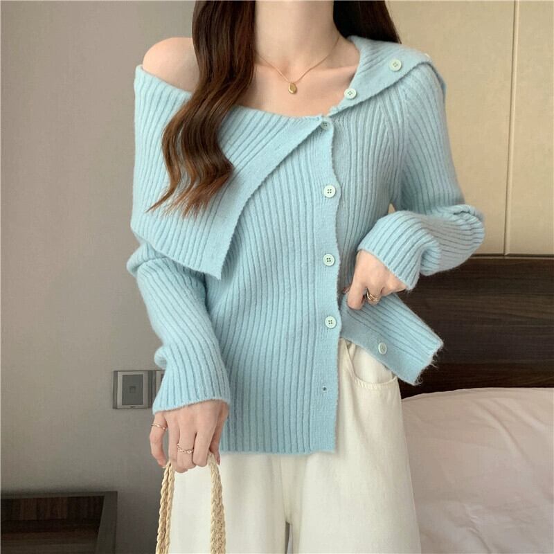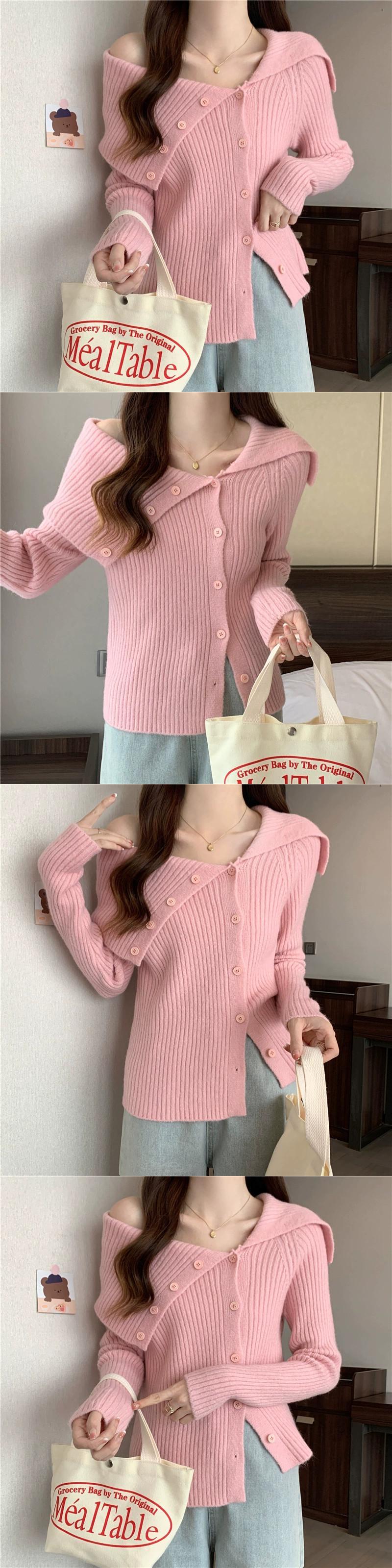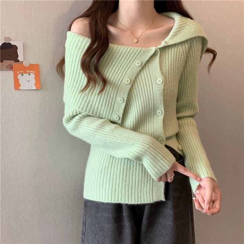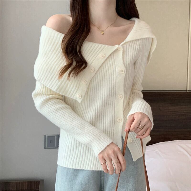 ピンクのショートオフショルダーラペルセーターカーディガン女性の秋と冬のファッショナブルでスリムフィットの長袖セーター ロング オータム 秋物 ウィンター 冬物 7460056226828290 | framboise21