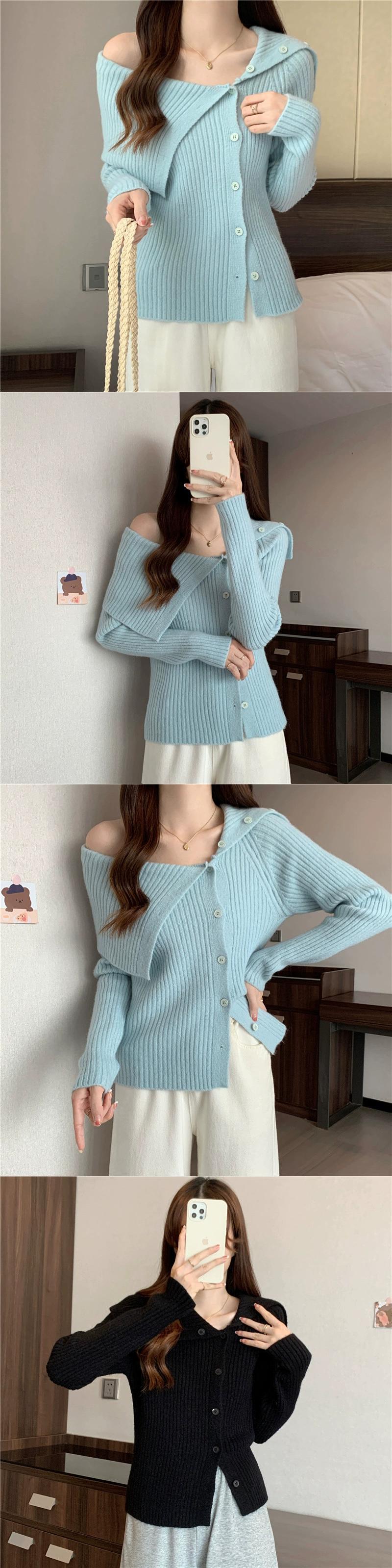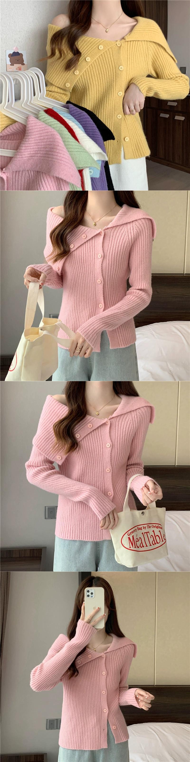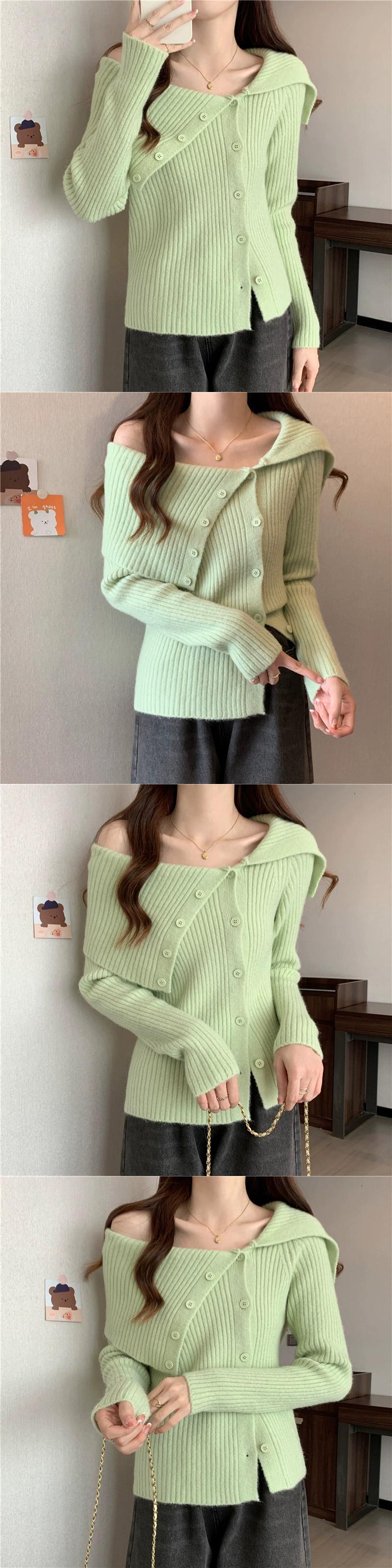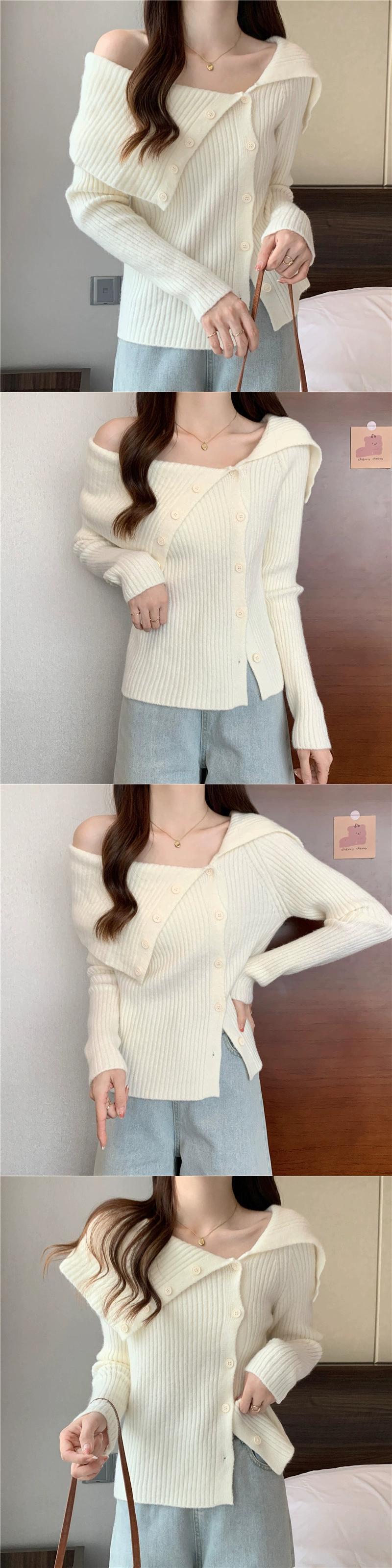 ピンクのショートオフショルダーラペルセーターカーディガン女性の秋と冬のファッショナブルでスリムフィットの長袖セーター ロング オータム 秋物 ウィンター 冬物 7460056226828290 | framboise21