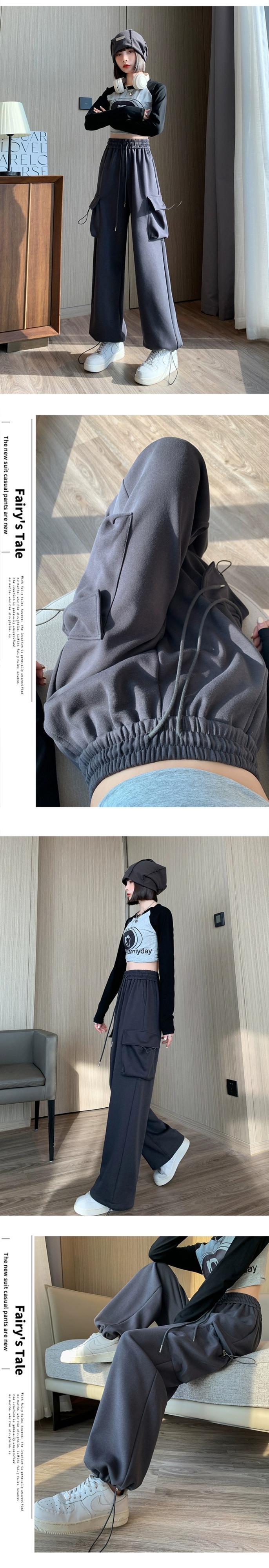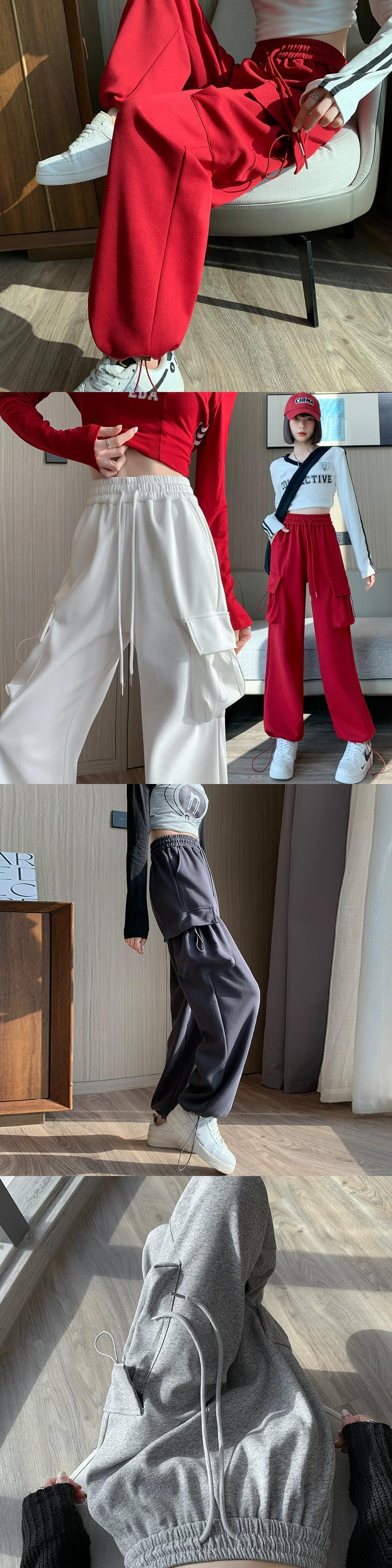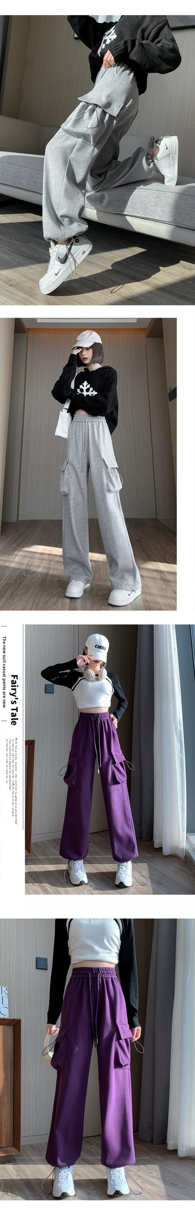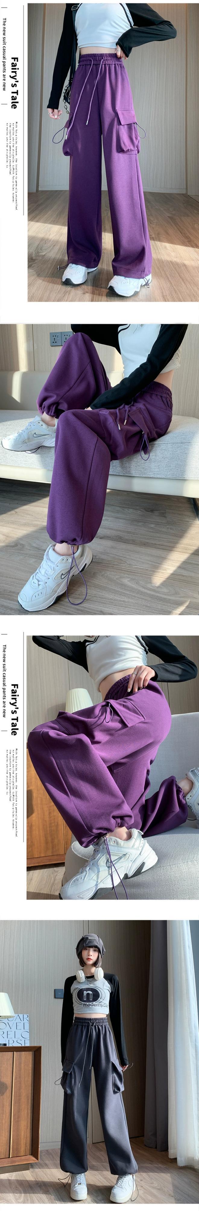 アメリカンスタイルのバーガンディレッグオーバーオールレディース、秋と冬のワイドレッグカジュアルスポーツパンツ、ルーズスリミングハイウエストストレートレッグスウェットパンツ オータム 秋物 ウィンター 冬物 7460096506540648 | framboise21