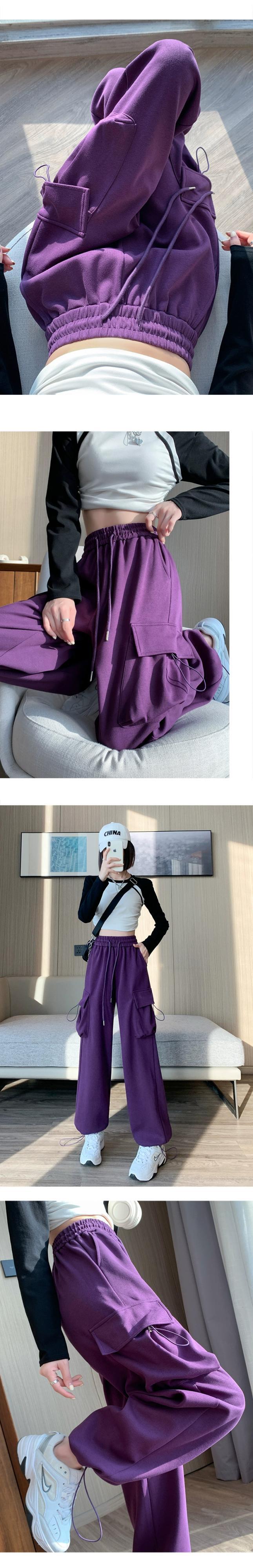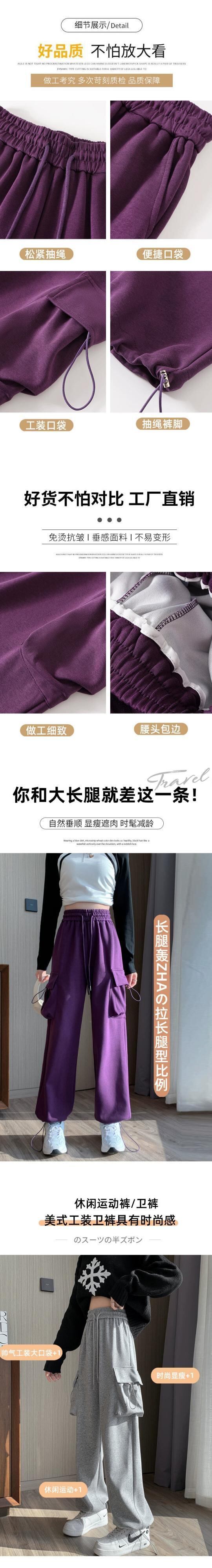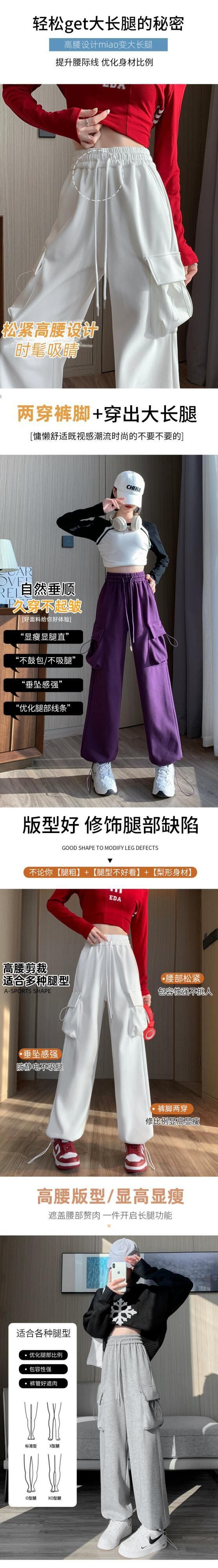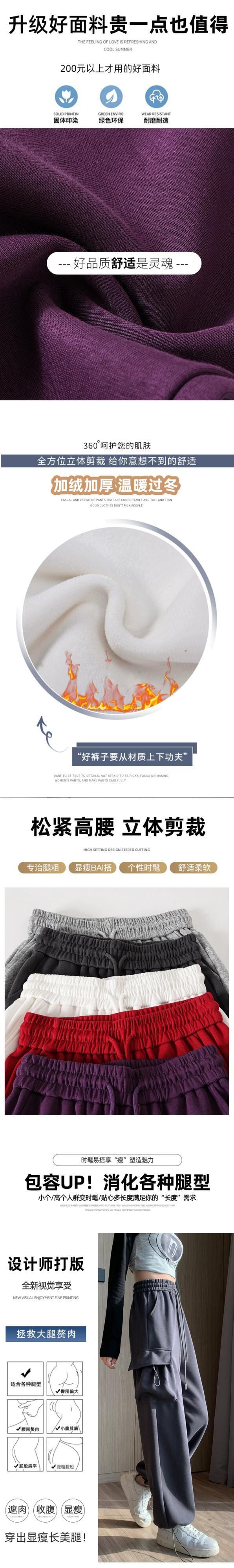 アメリカンスタイルのバーガンディレッグオーバーオールレディース、秋と冬のワイドレッグカジュアルスポーツパンツ、ルーズスリミングハイウエストストレートレッグスウェットパンツ オータム 秋物 ウィンター 冬物 7460096506540648 | framboise21