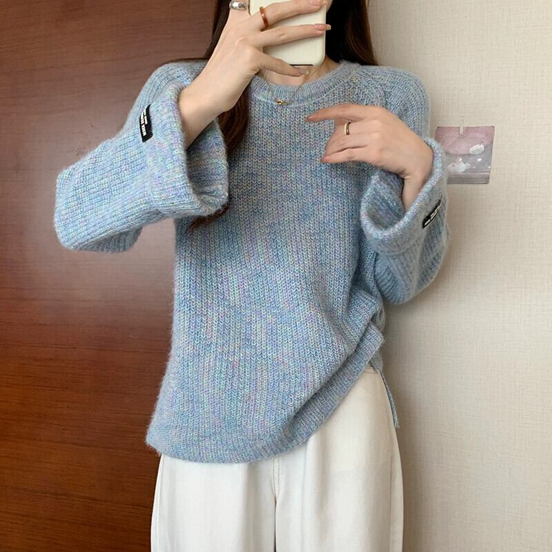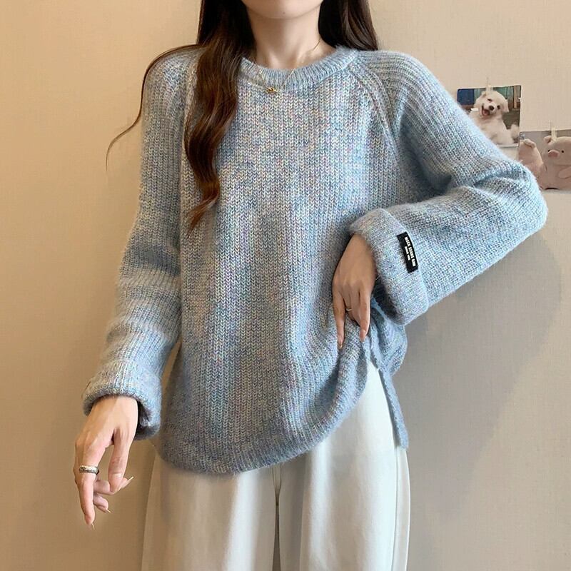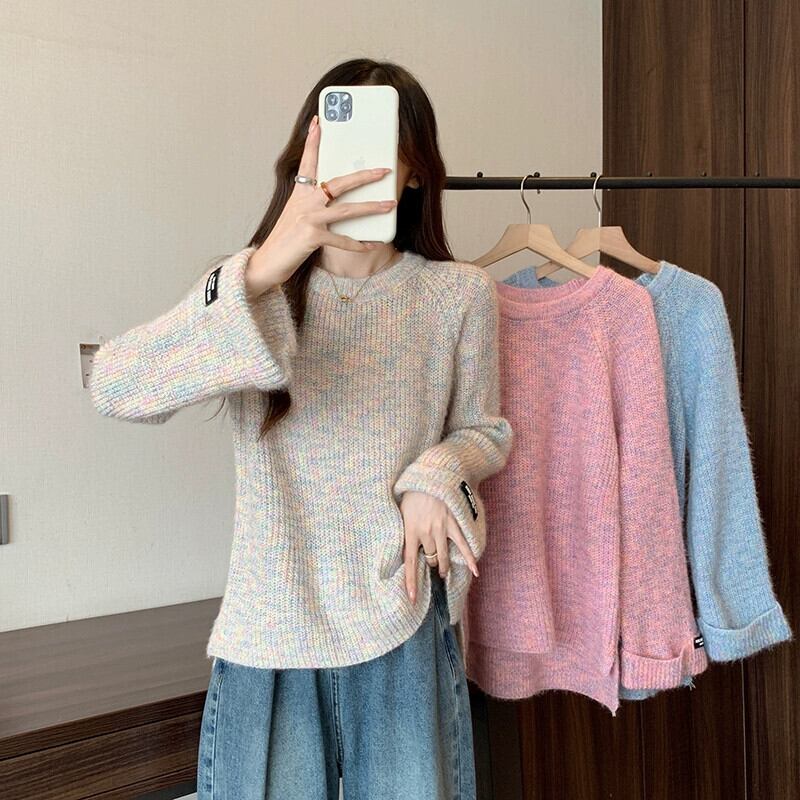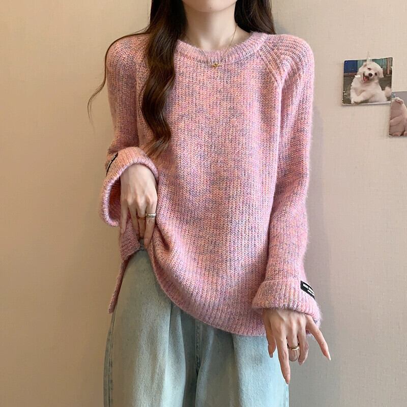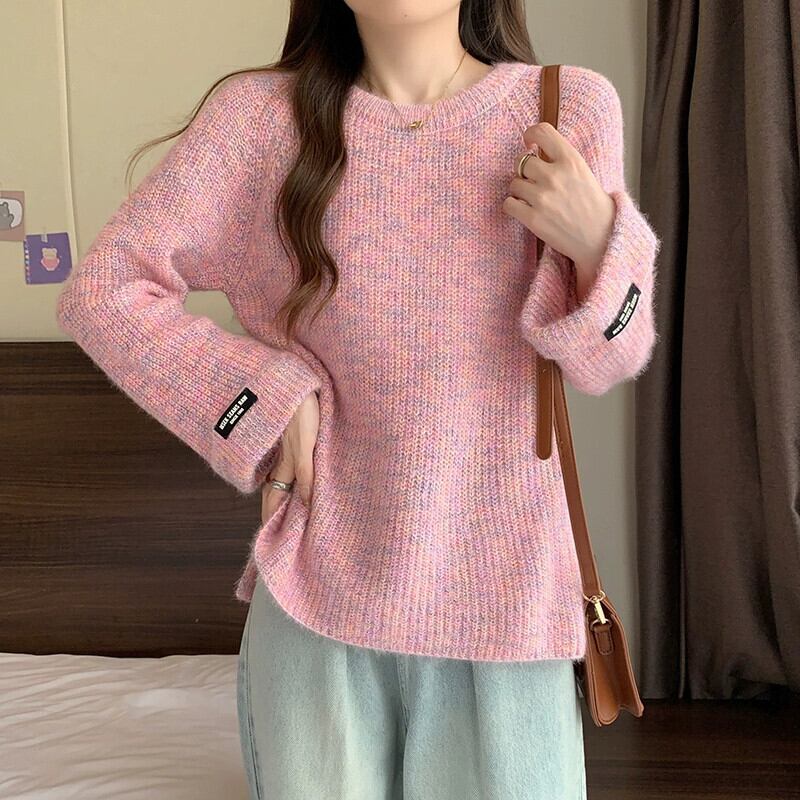 ピンクの柔らかいワックス状のスリットセーターの女性、秋と冬のルーズなアウターウェア、怠惰なスタイル、多用途のプルオーバー長袖セーター ロング オータム 秋物 ウィンター 冬物 7460061541211413 | framboise21