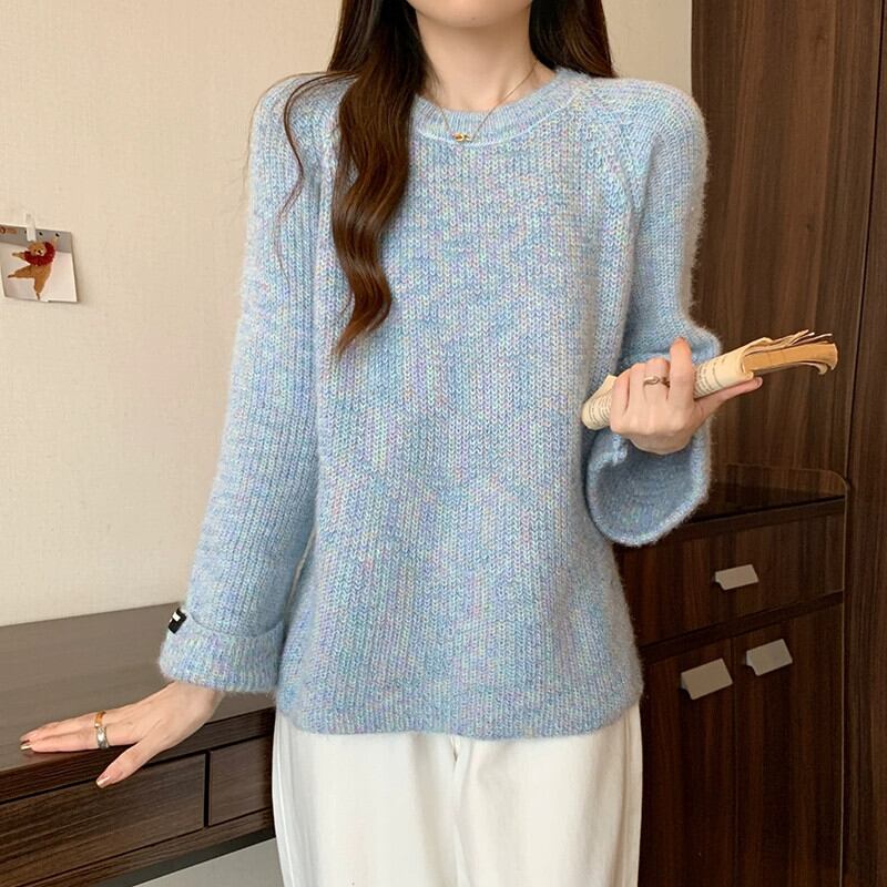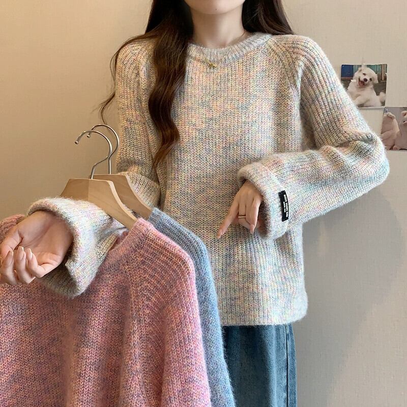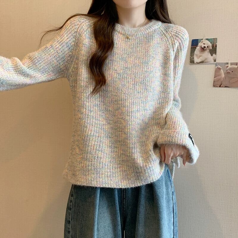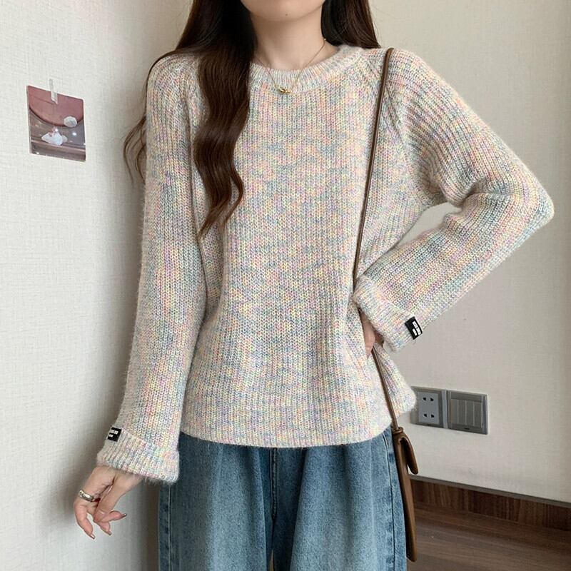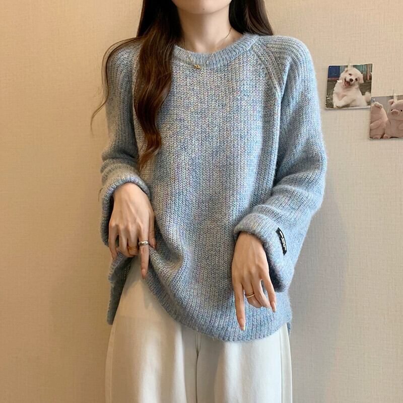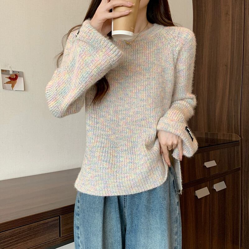 ピンクの柔らかいワックス状のスリットセーターの女性、秋と冬のルーズなアウターウェア、怠惰なスタイル、多用途のプルオーバー長袖セーター ロング オータム 秋物 ウィンター 冬物 7460061541211413 | framboise21