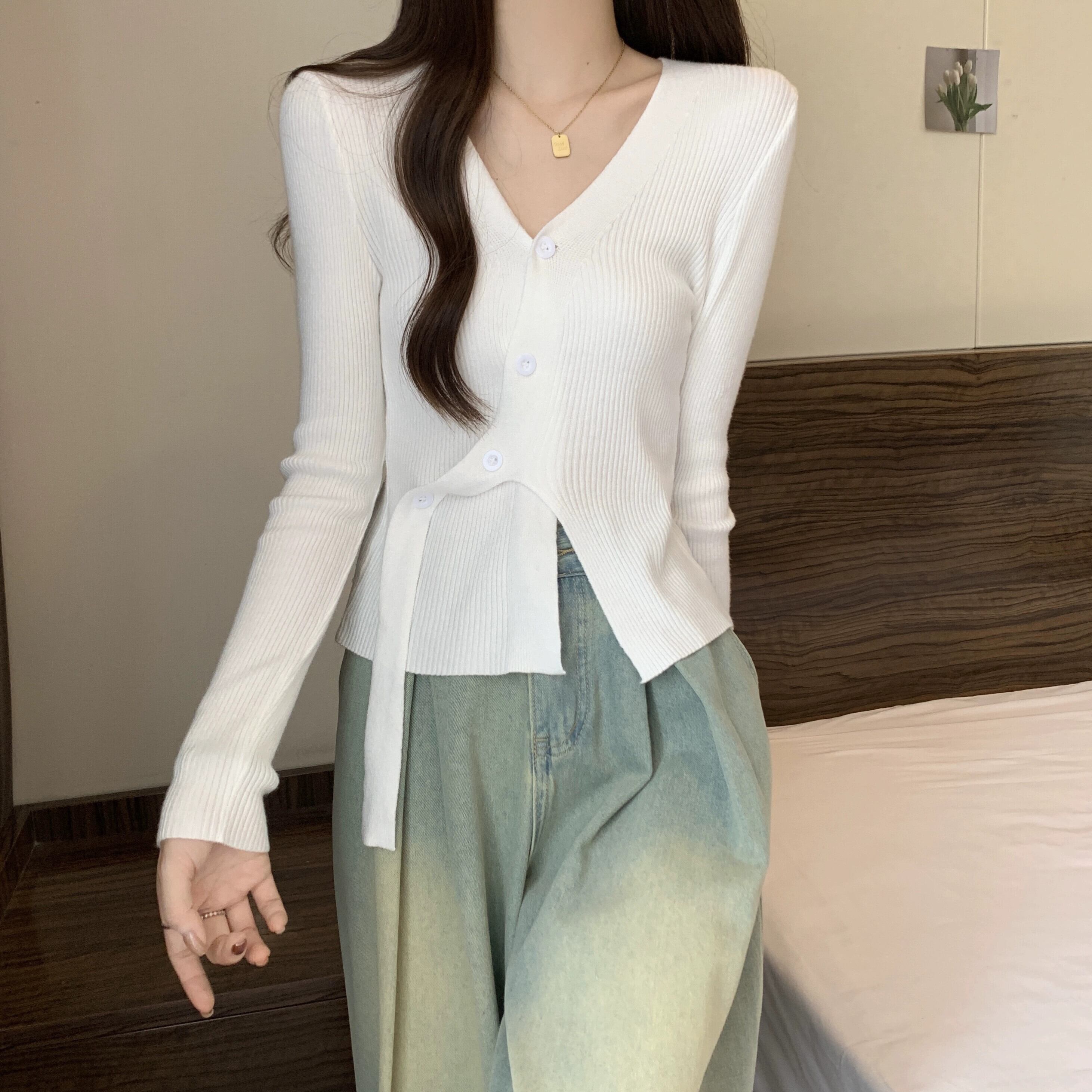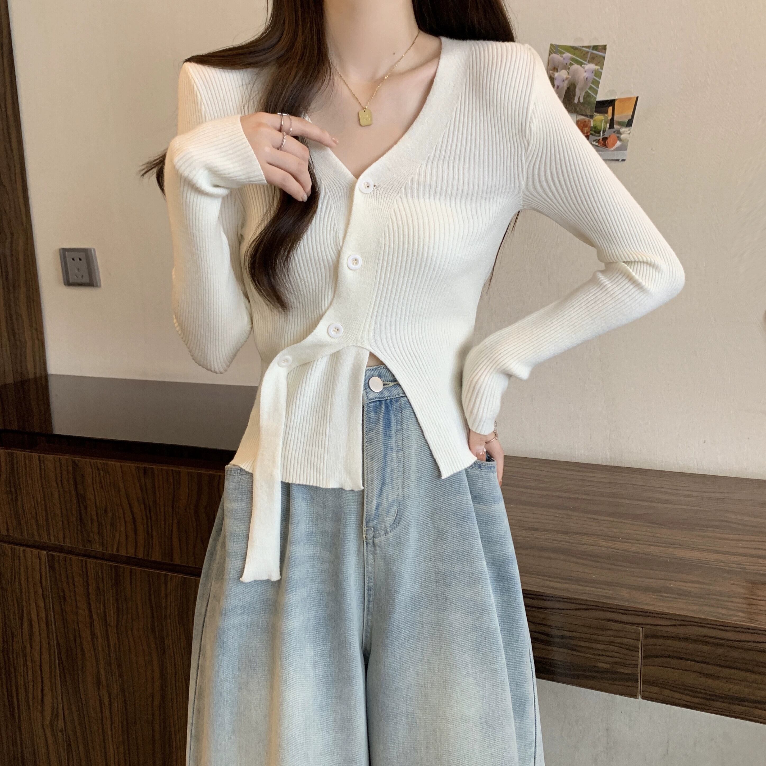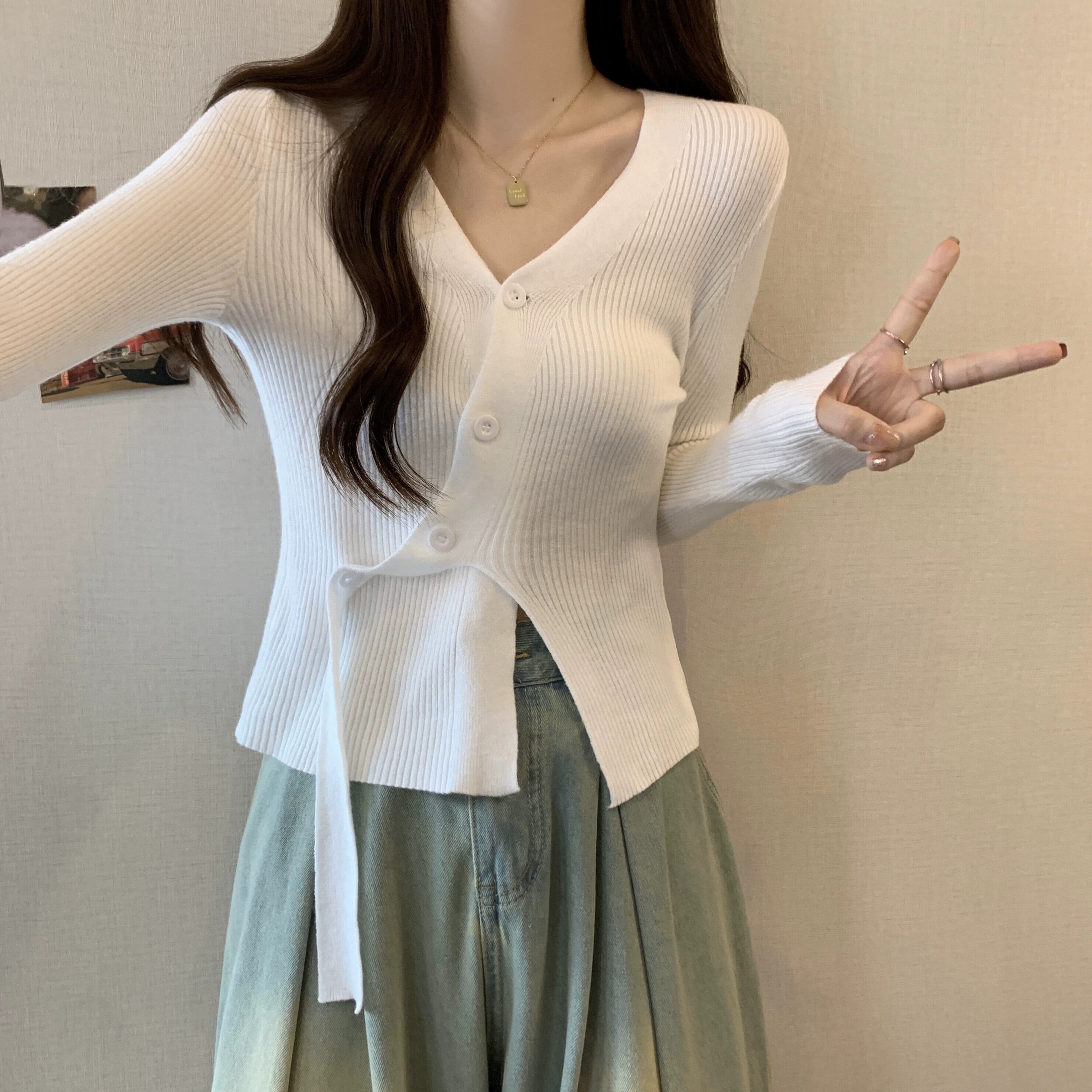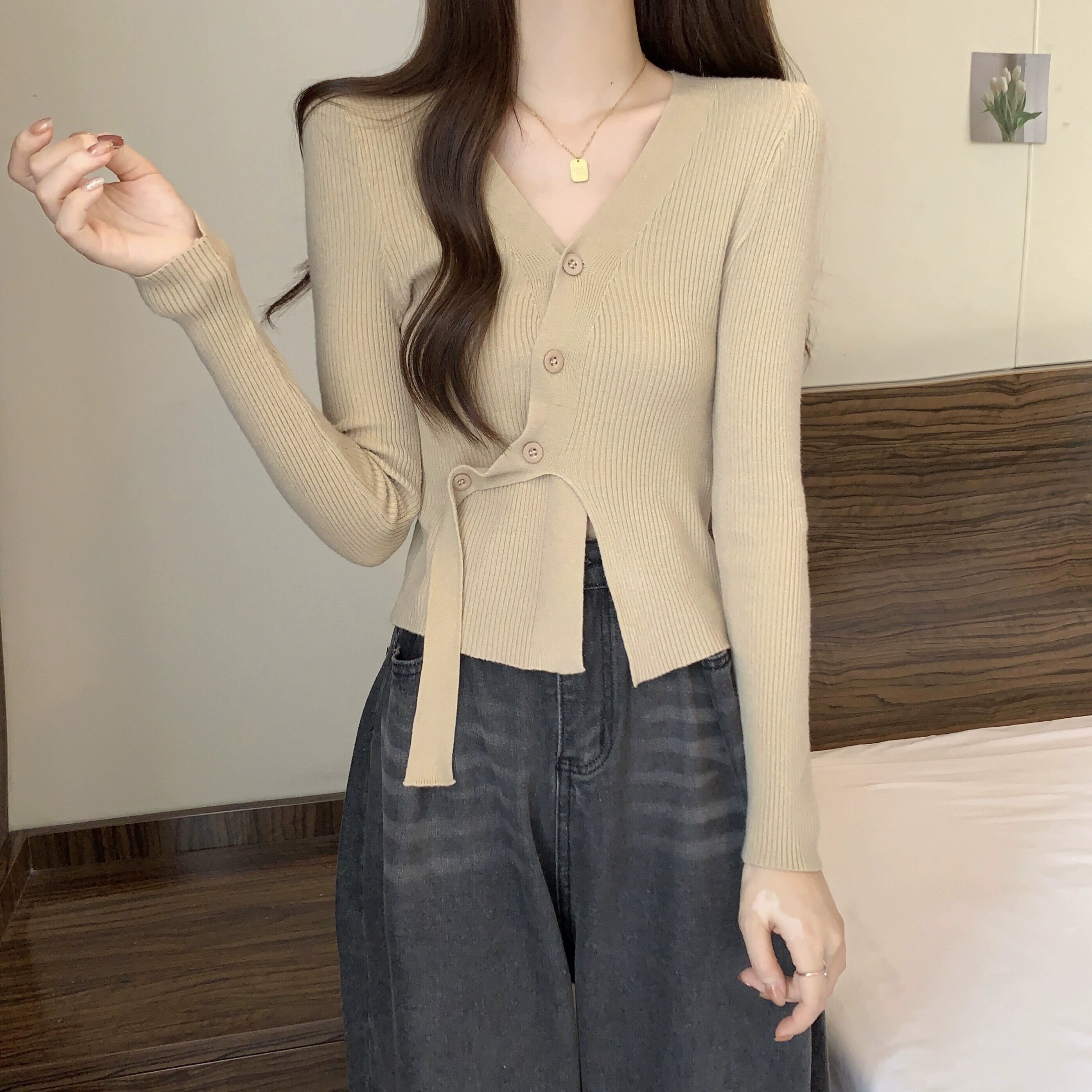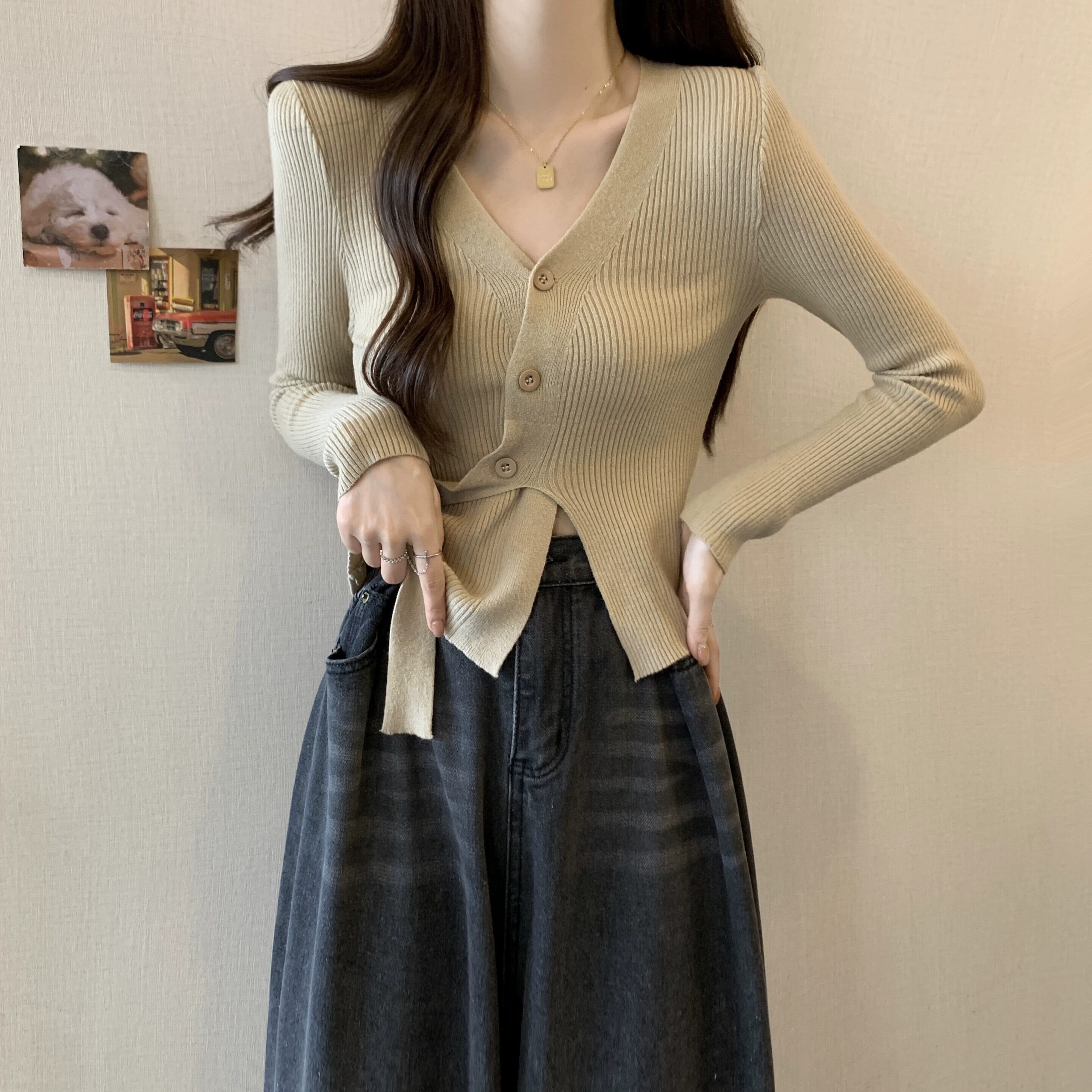 不規則なショート V ネック ニット カーディガン女性の秋と冬のファッショナブルでスリムなフィット、長袖ボトム セーター ロング オータム 秋物 ウィンター 冬物 Vネック 7460036736446791 | framboise21