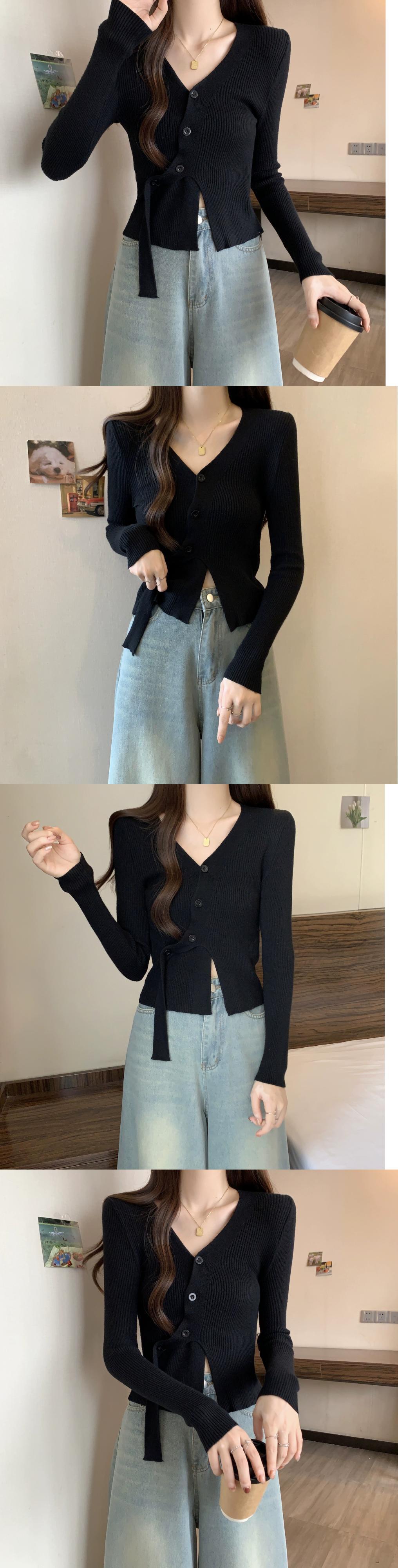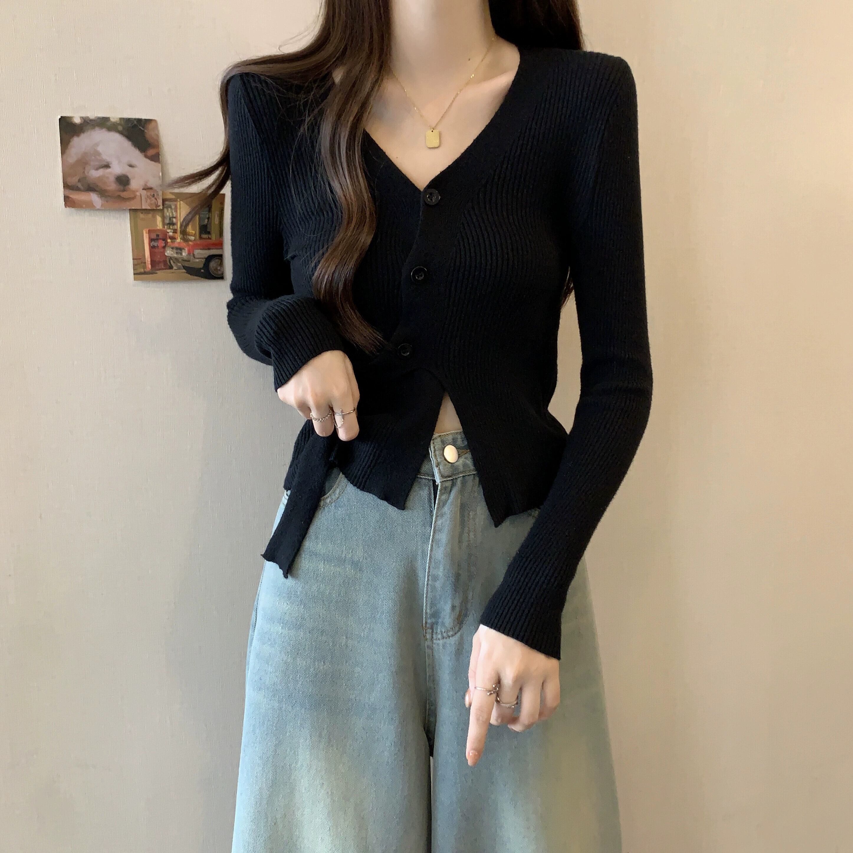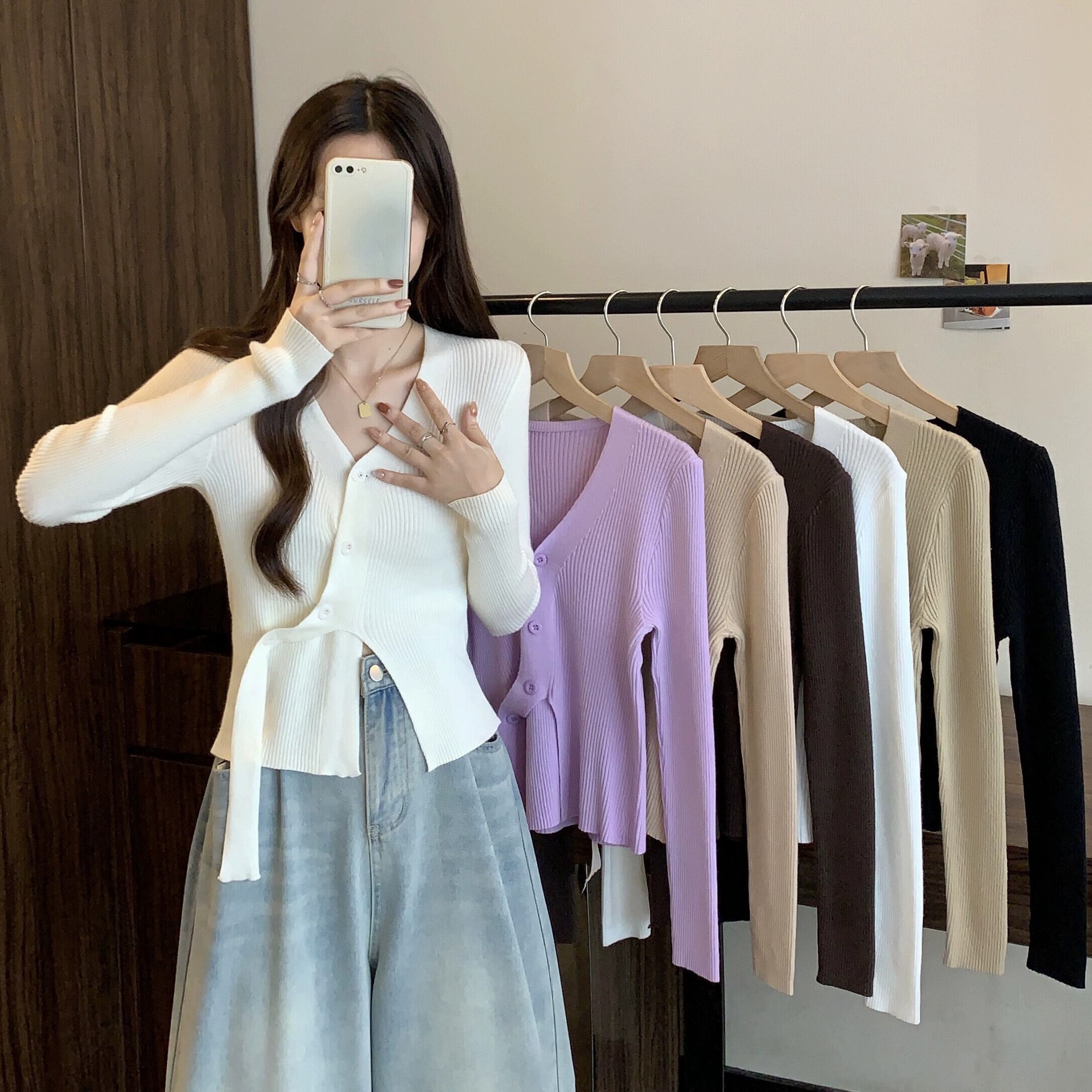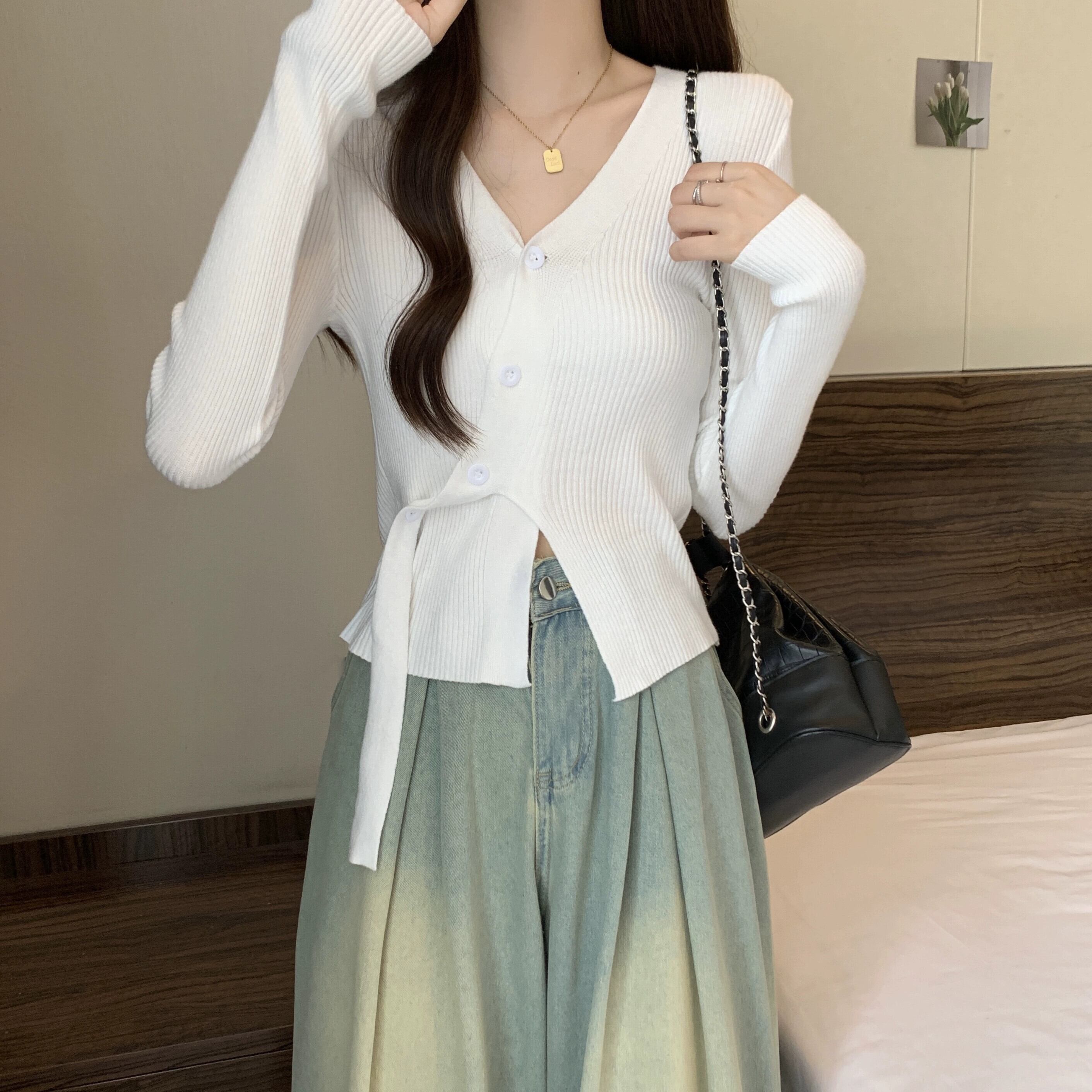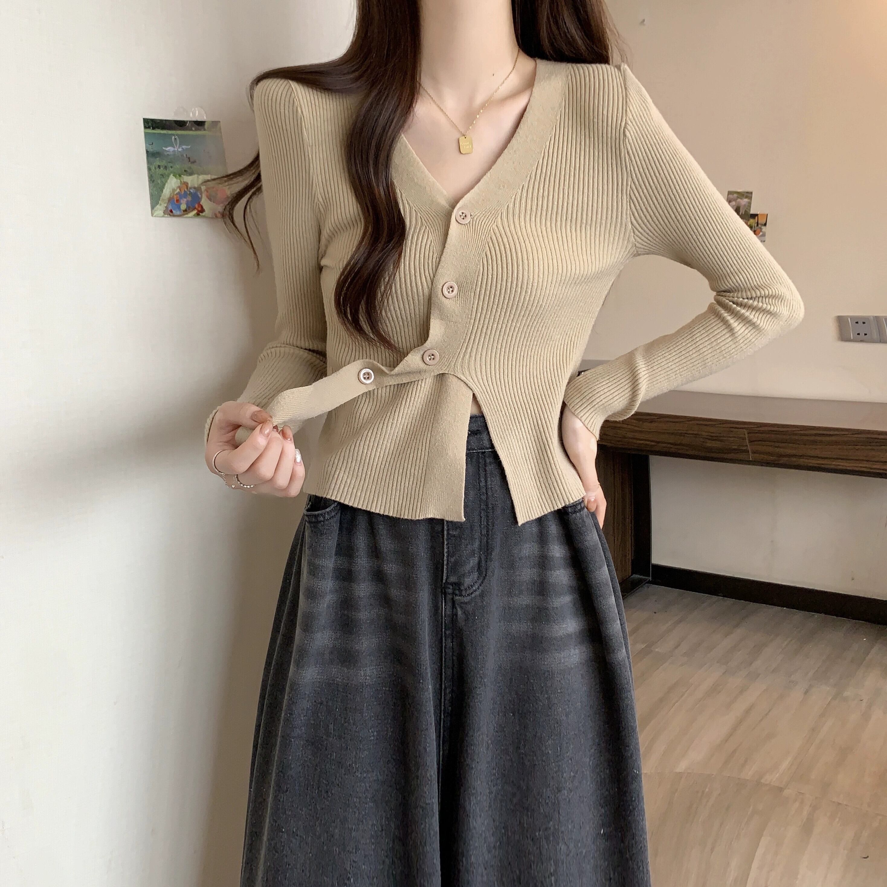 不規則なショート V ネック ニット カーディガン女性の秋と冬のファッショナブルでスリムなフィット、長袖ボトム セーター ロング オータム 秋物 ウィンター 冬物 Vネック 7460036736446791 | framboise21