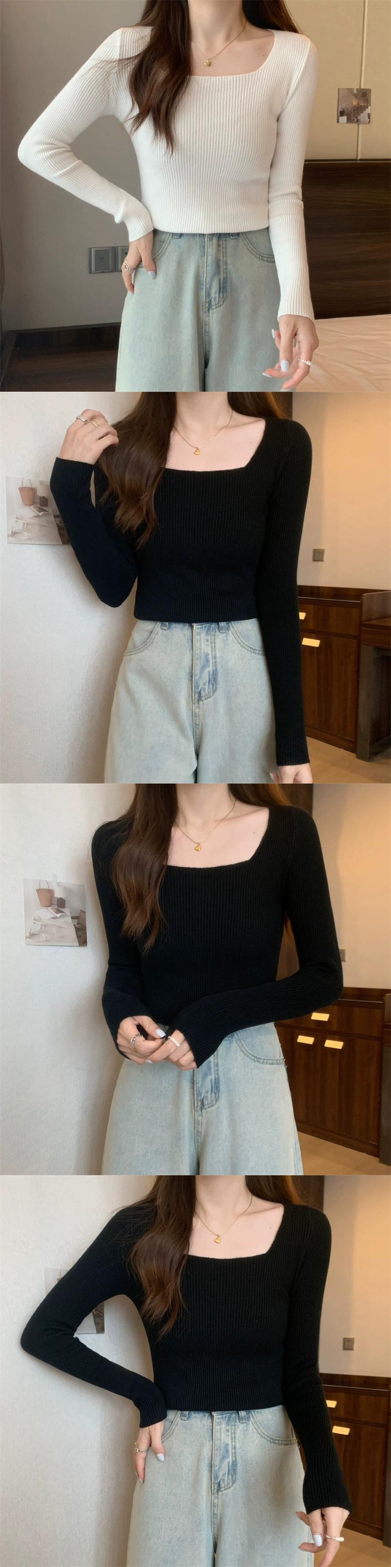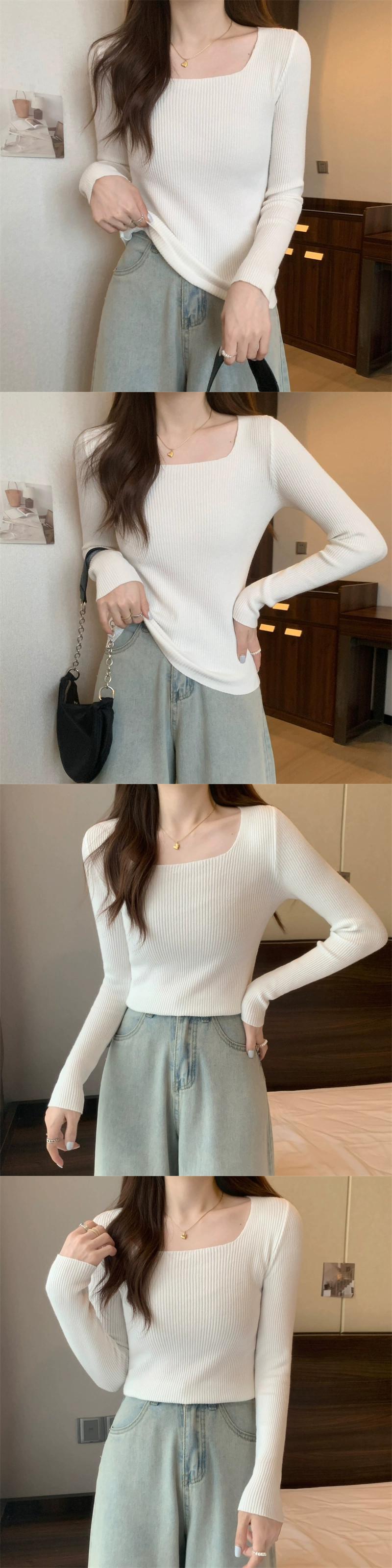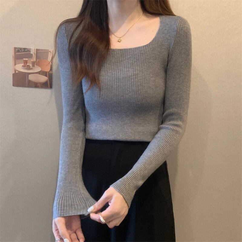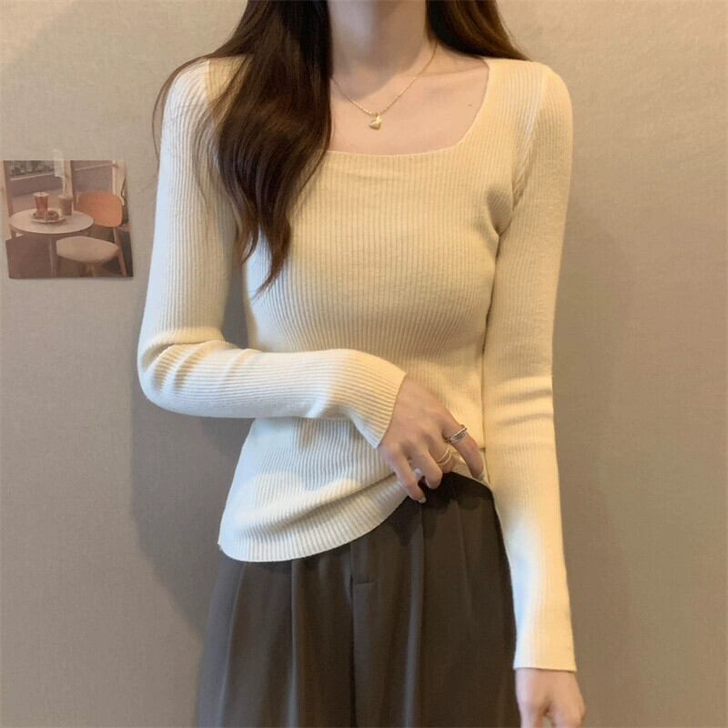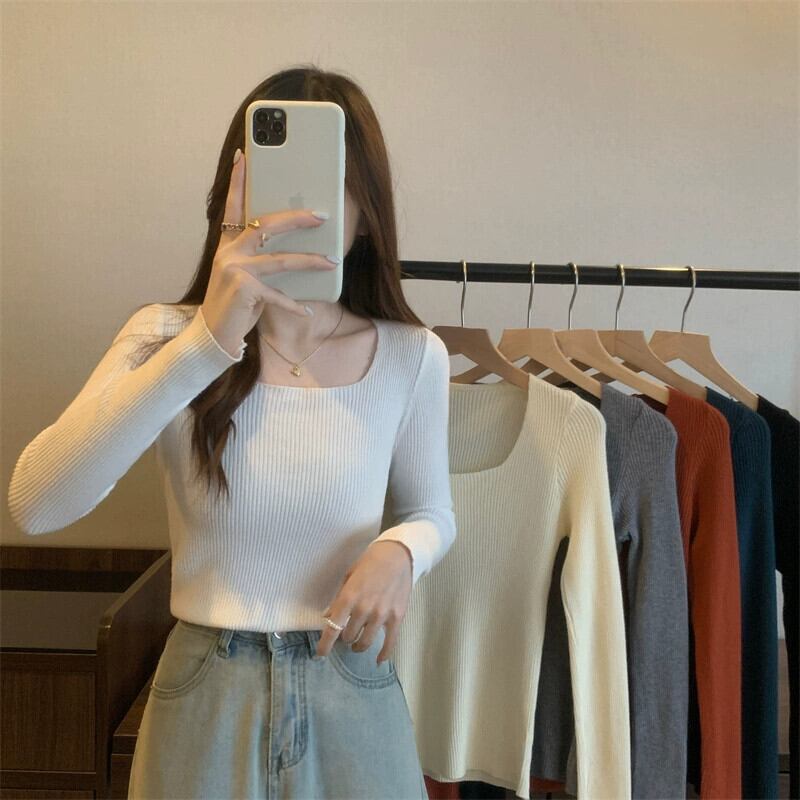 アプリコットスレッドショートボトリングシャツ 2023 新しい女性の秋と冬スリムフィットインナースクエアカラー長袖ニットセーター ロング オータム 秋物 ウィンター 冬物 スクウェア 746008152990286 | framboise21