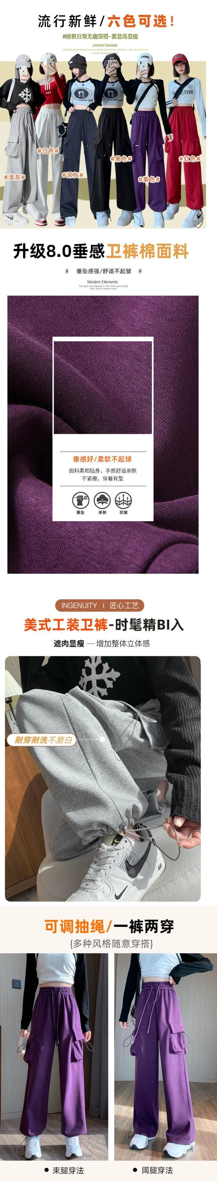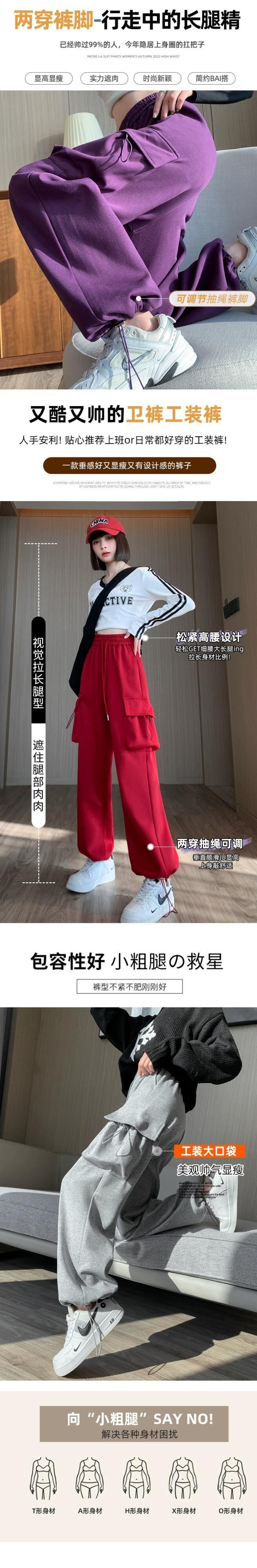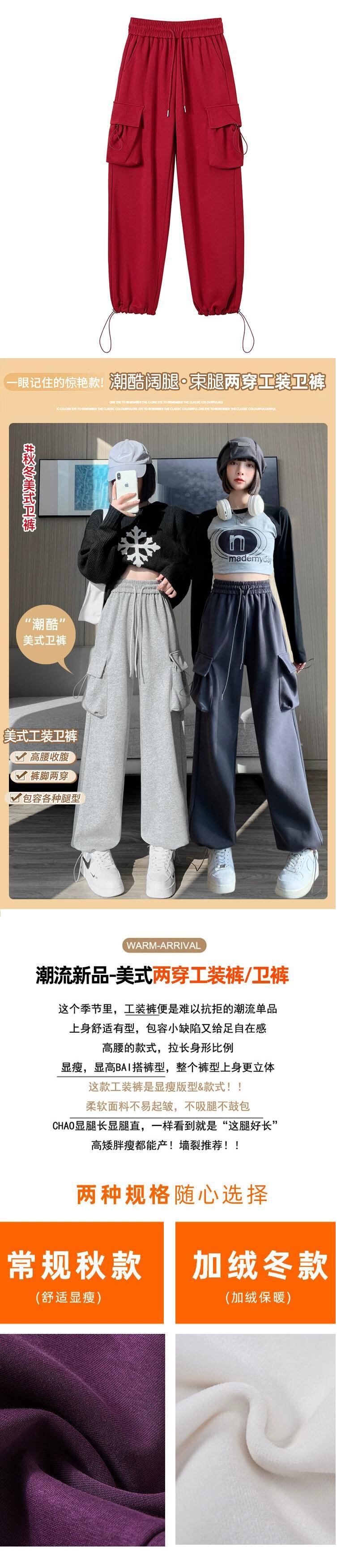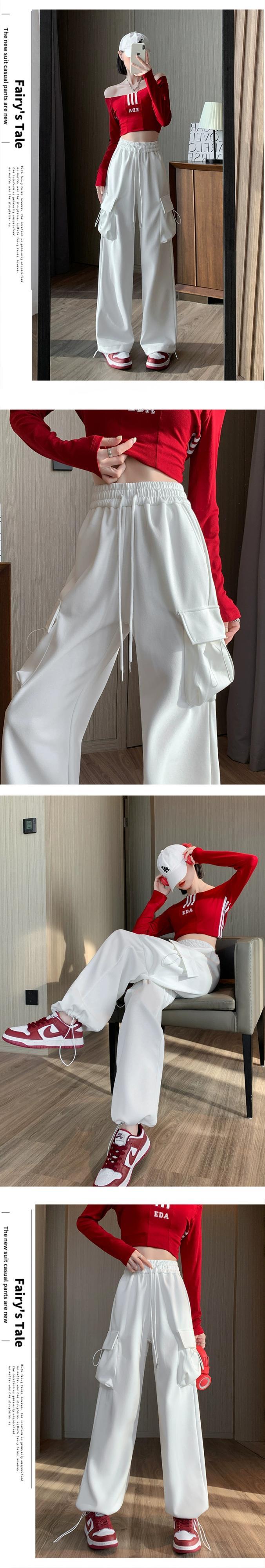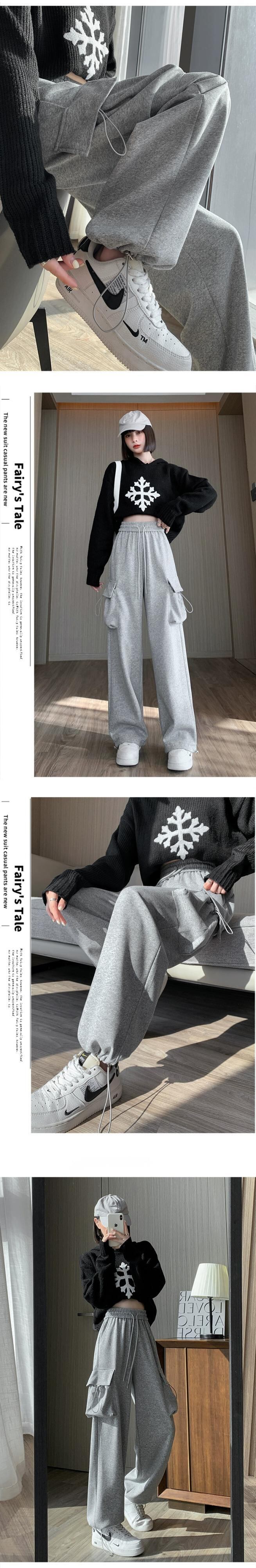 秋と冬のグレーのカジュアルスポーツパンツレディース、アメリカンストレートレッグオーバーオール、ルーズ、スリム、ハイウエスト、ドレープスウェットパンツ オータム 秋物 ウィンター 冬物 7460042127053760 | framboise21