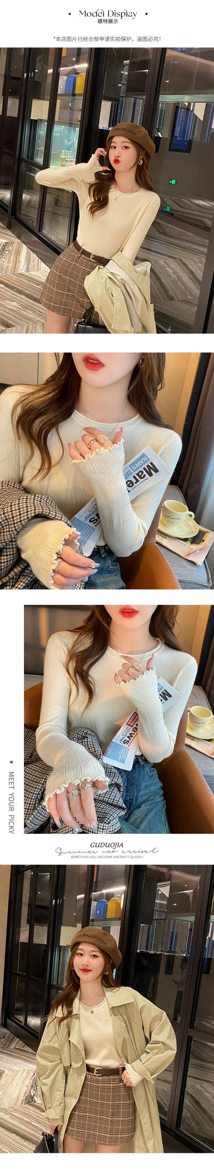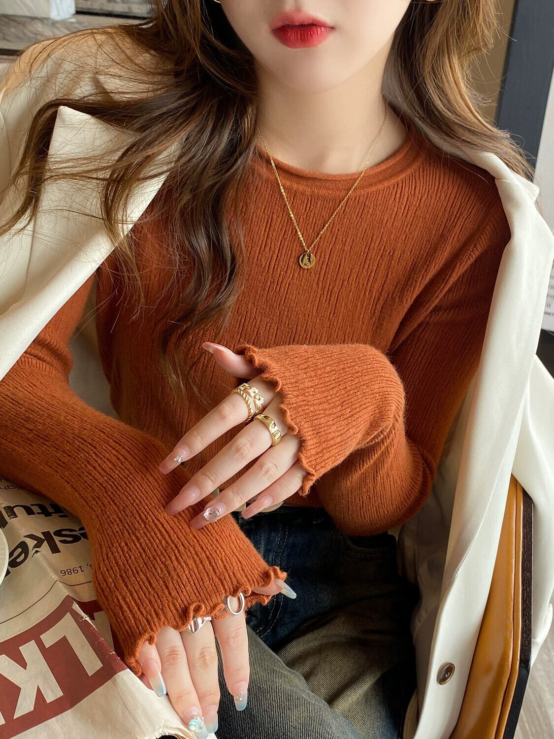 真菌エッジニットボトミングシャツ 2023 新しい女性の秋と冬のデザインファッショナブルで西洋スタイルのスリムフィットインナー長袖セーター ロング オータム 秋物 ウィンター 冬物 7460076612773790 | framboise21