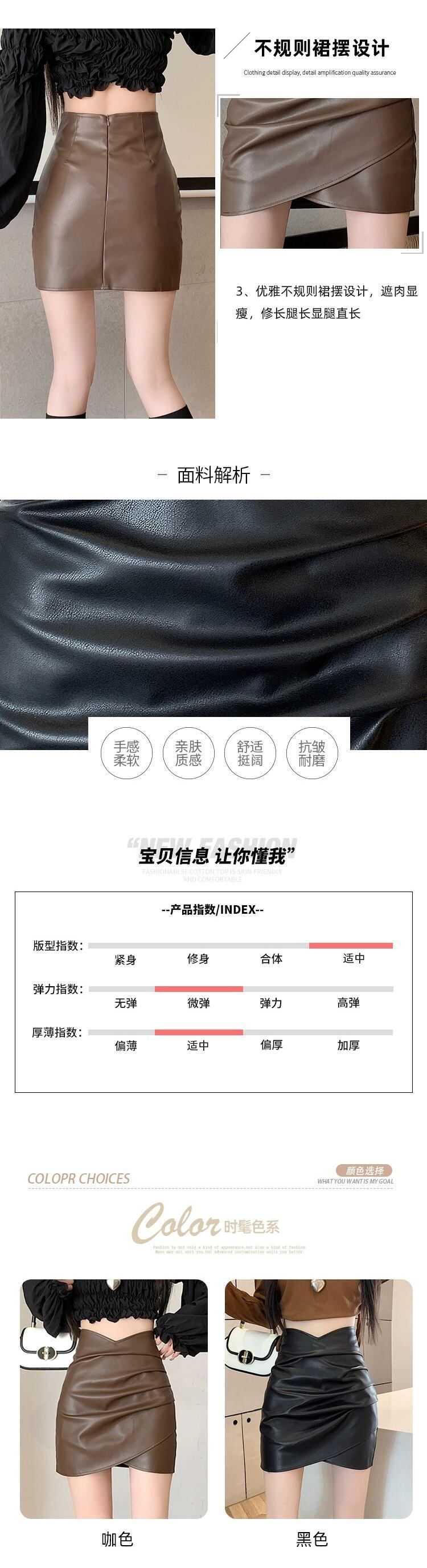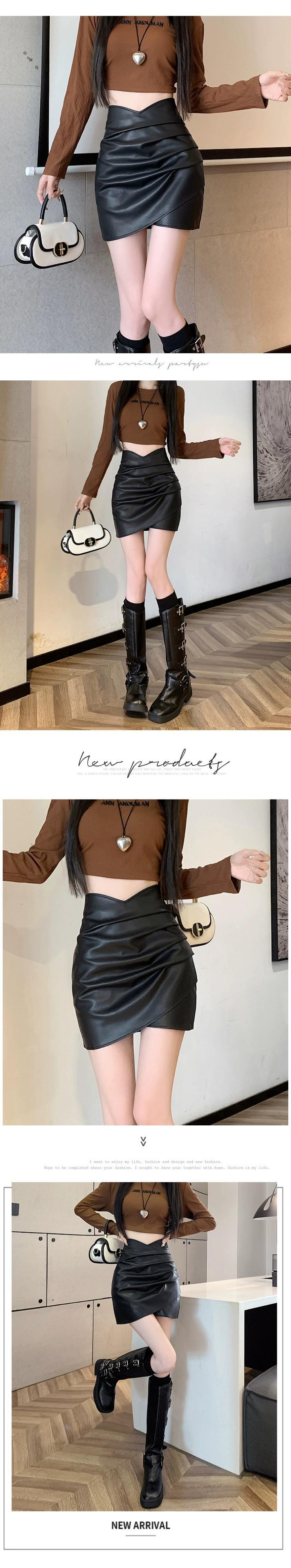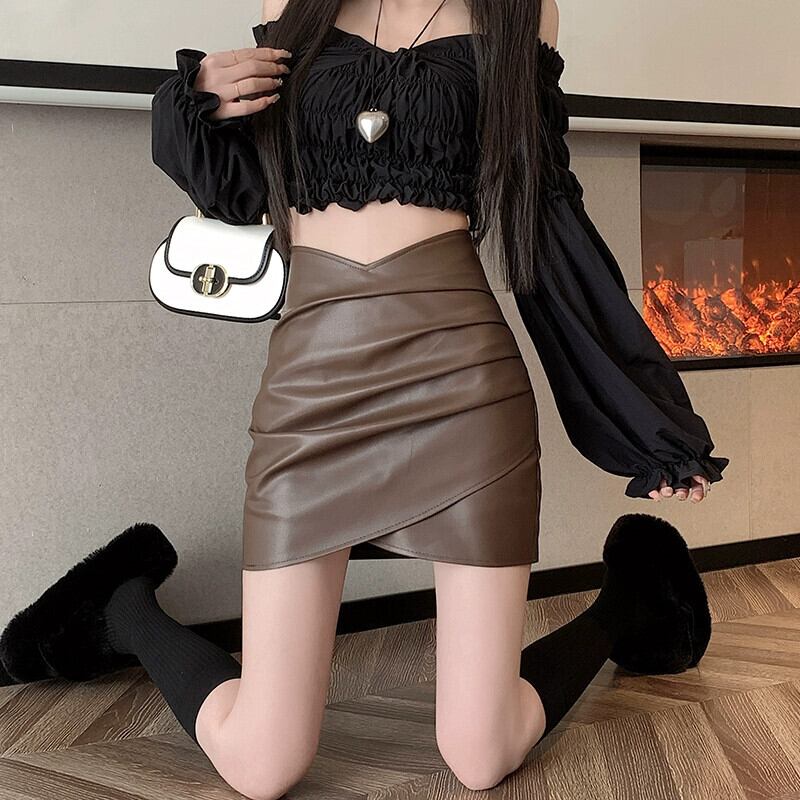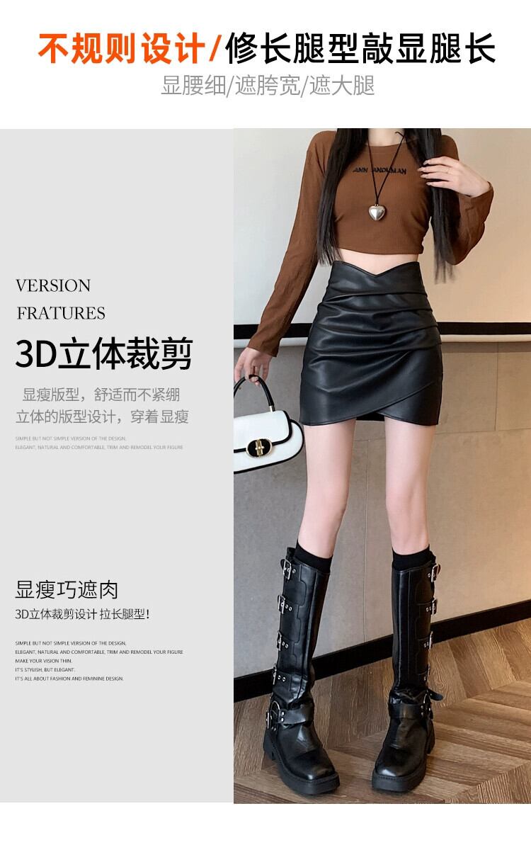 Pu レザーヒップスカート女性の秋と冬の 2023 新しいレザースカートセクシーな不規則なハイウエスト a ラインショートスカート ハイウェスト オータム 秋物 ウィンター 冬物 Aライン 7460043395705342 | framboise21