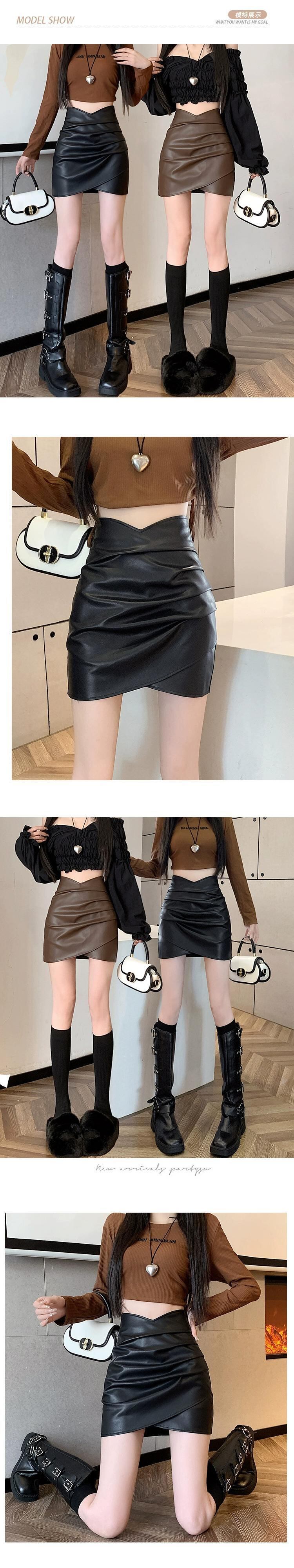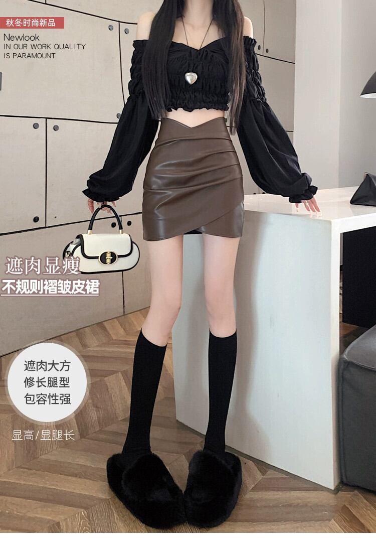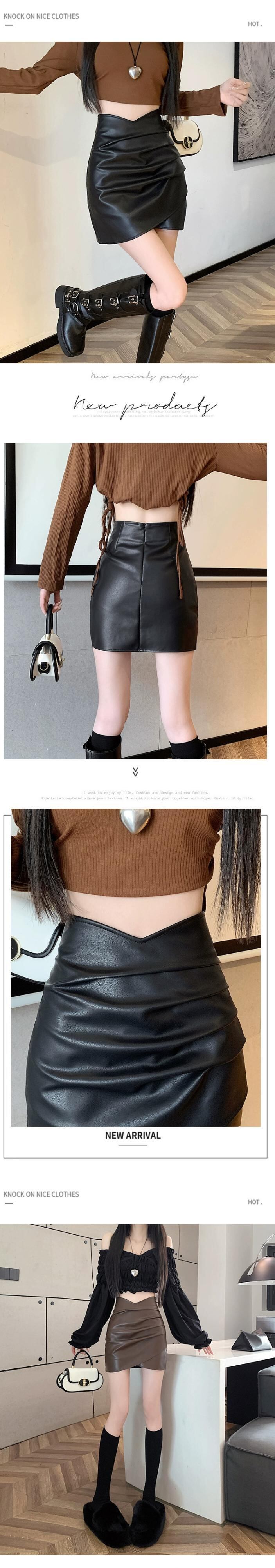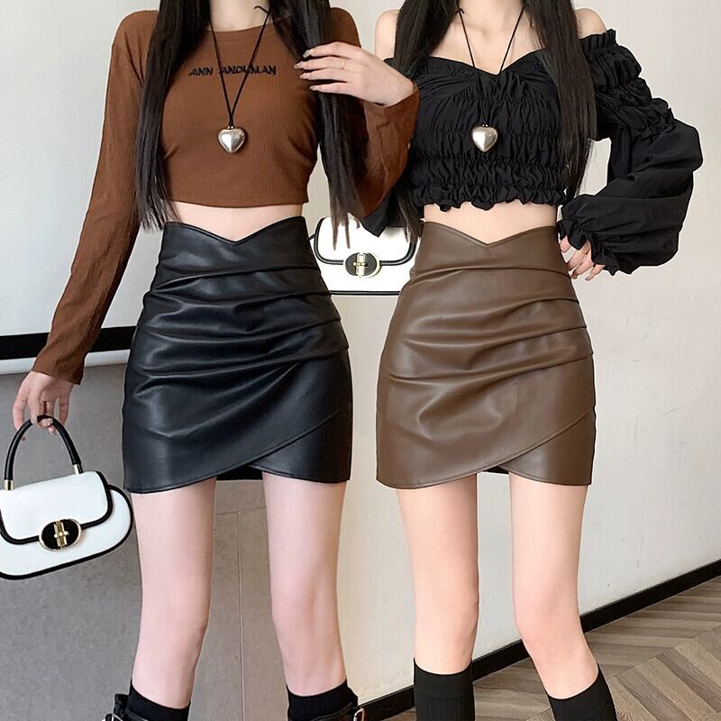 Pu レザーヒップスカート女性の秋と冬の 2023 新しいレザースカートセクシーな不規則なハイウエスト a ラインショートスカート ハイウェスト オータム 秋物 ウィンター 冬物 Aライン 7460043395705342 | framboise21