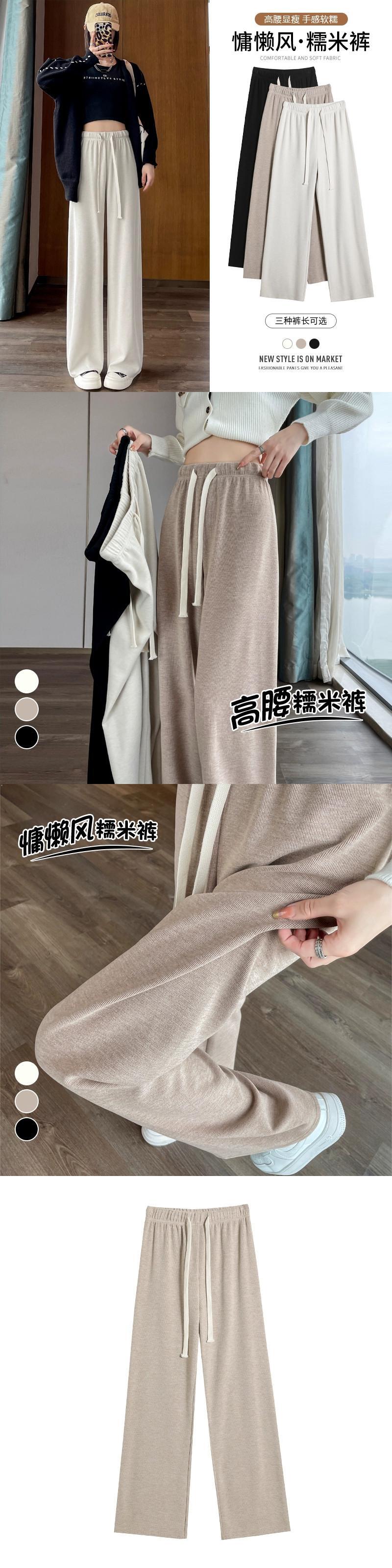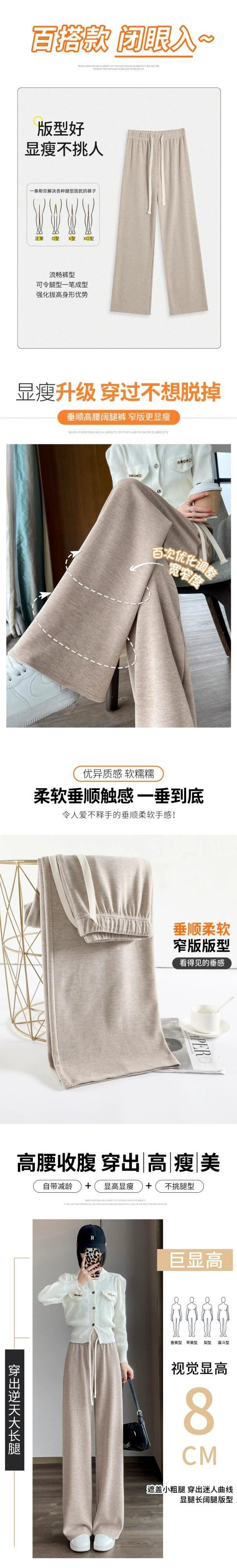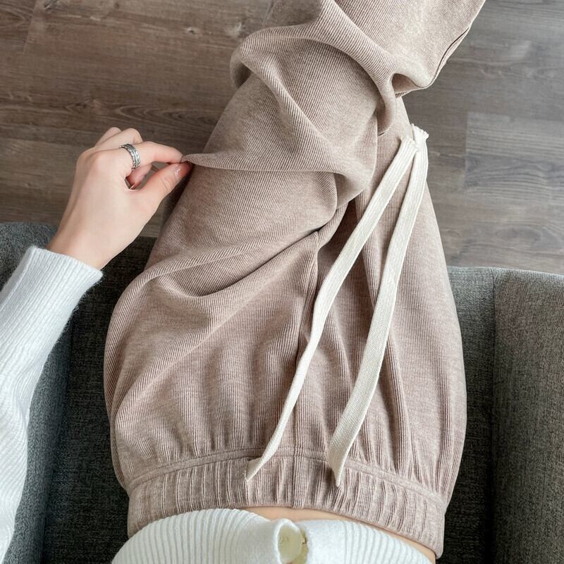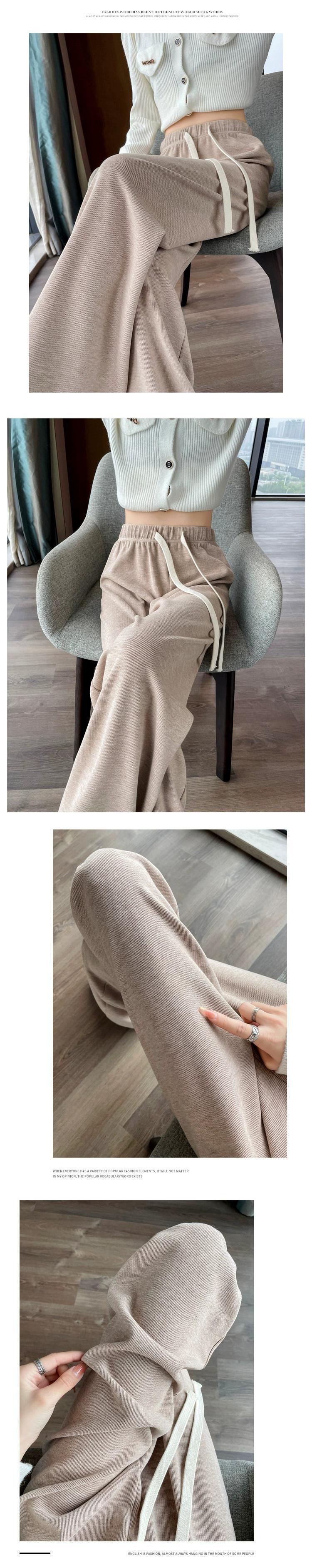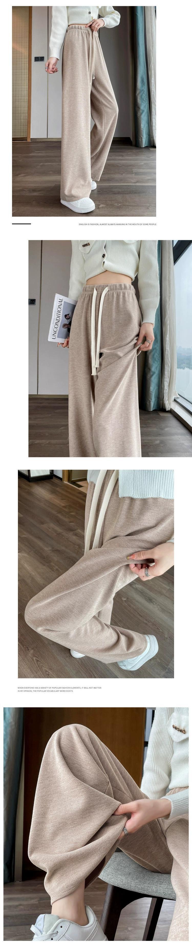 秋と冬の細いニットワイドレッグパンツの女性、ハイウエストのドレープタオルパンツ、レイジースタイル、ルーズストレートレッグカジュアルフロアモップパンツ オータム 秋物 ウィンター 冬物 7460046010136043 | framboise21