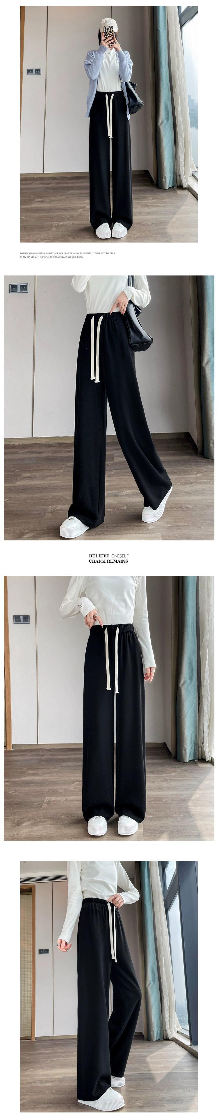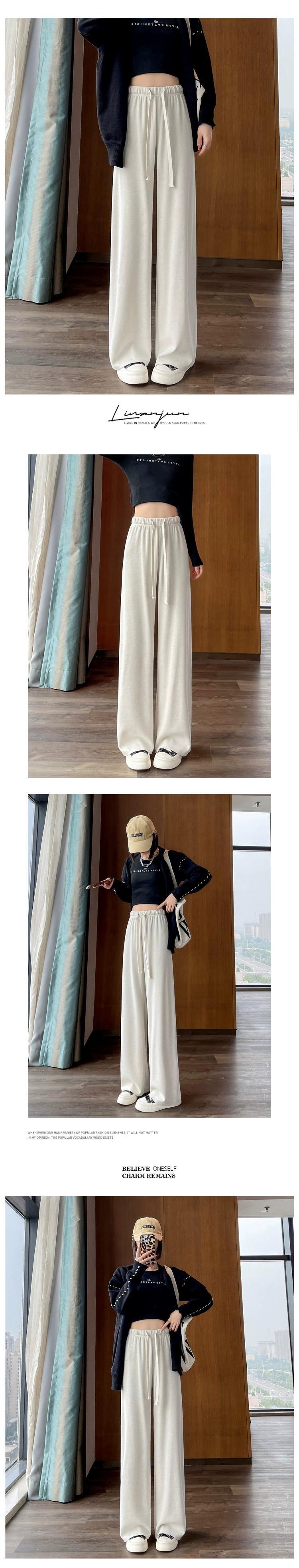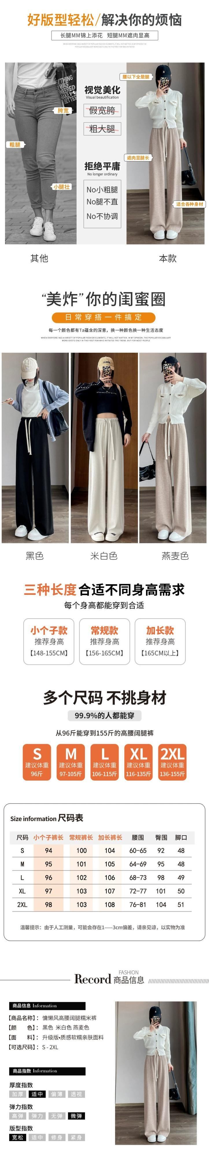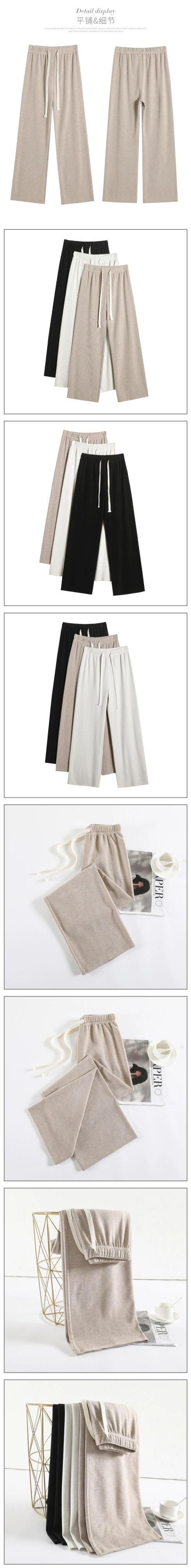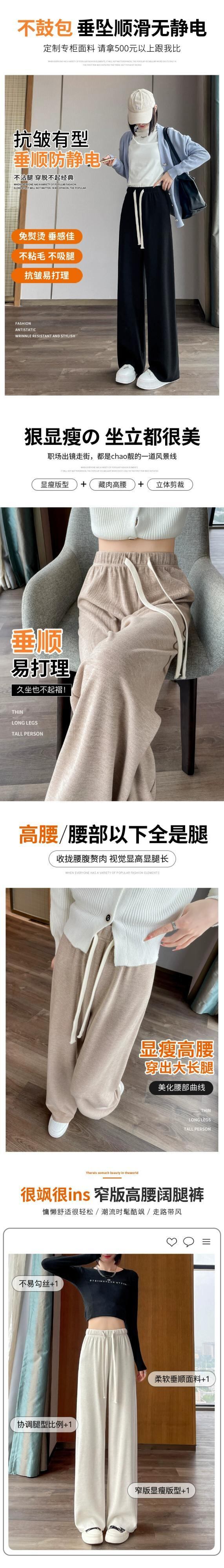 秋と冬の細いニットワイドレッグパンツの女性、ハイウエストのドレープタオルパンツ、レイジースタイル、ルーズストレートレッグカジュアルフロアモップパンツ オータム 秋物 ウィンター 冬物 7460046010136043 | framboise21