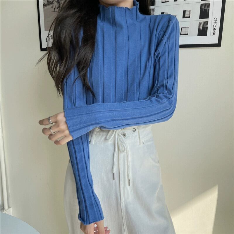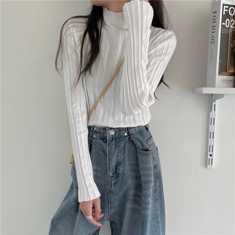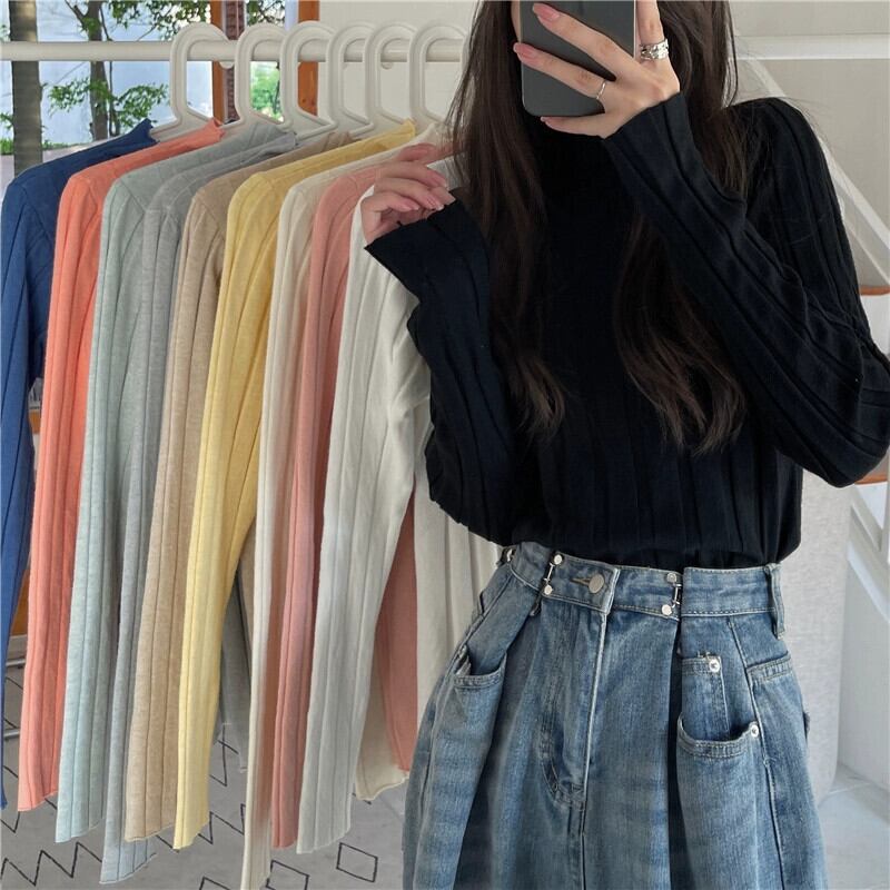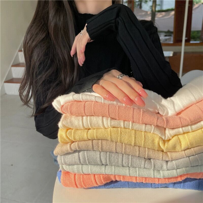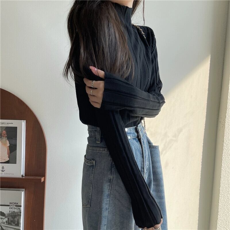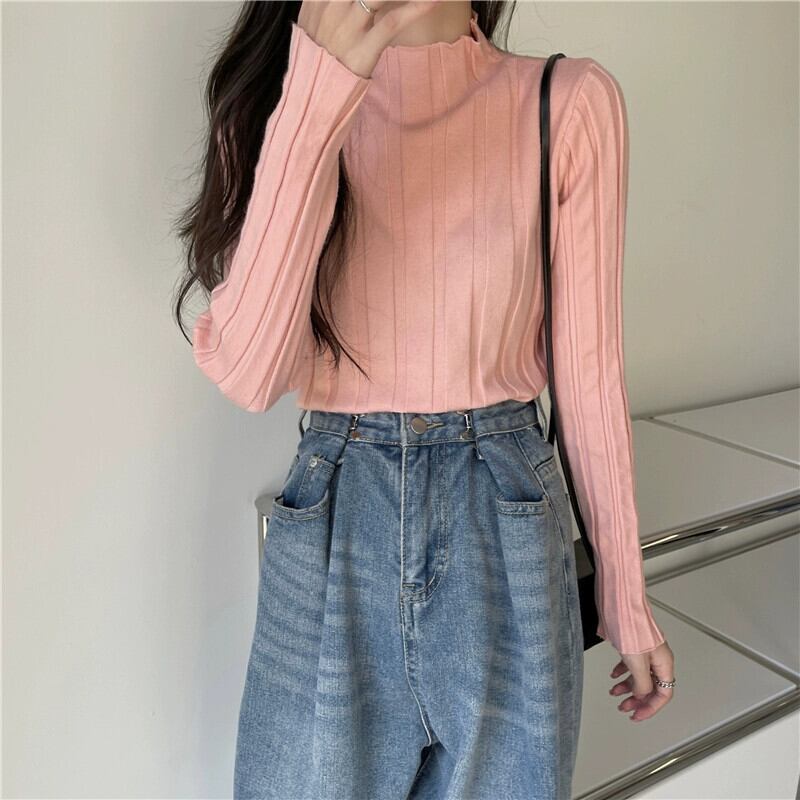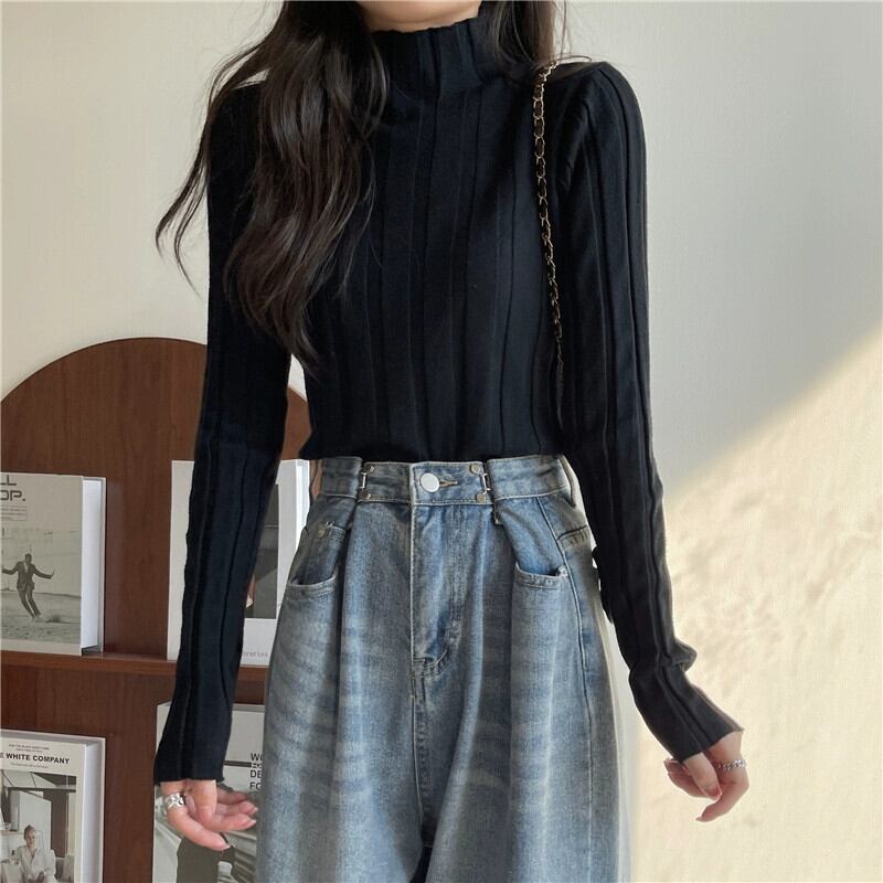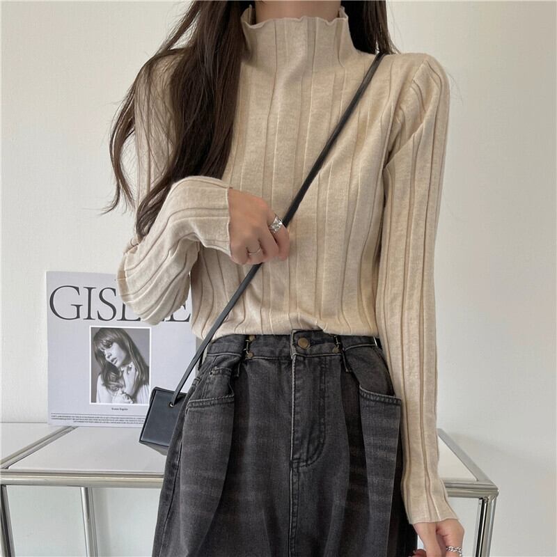 ハーフタートルネックニットボトリングシャツ 2023 新しい女性の秋と冬のインナーウェアミッドカラーセータースリムフィット多用途長袖トップ ロング オータム 秋物 ウィンター 冬物 7460023330984774 | framboise21