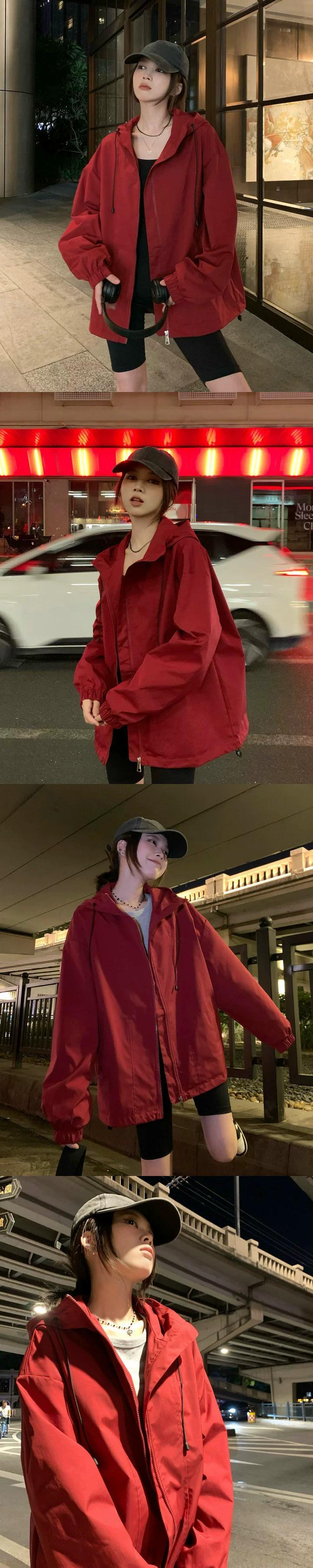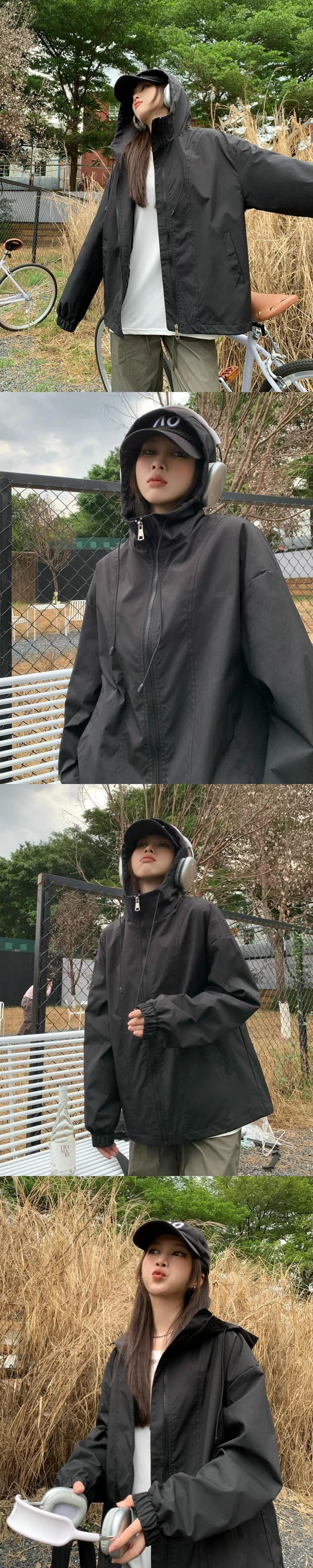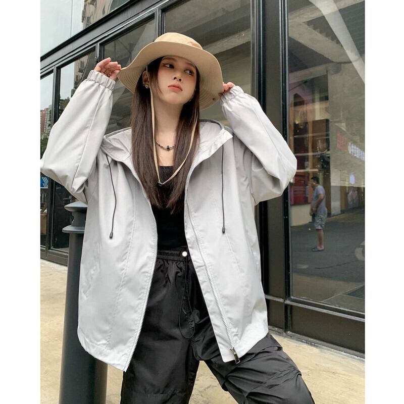 ミドル丈フード付きジャケット女性 2023 秋冬新作アメカジ防風ジッパージャケットカーディガングレー カジュアル オータム 秋物 ウィンター 冬物 7460020338598747 | framboise21