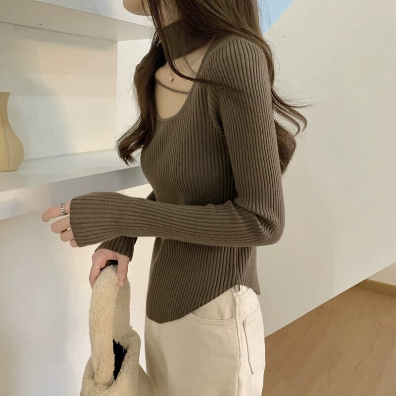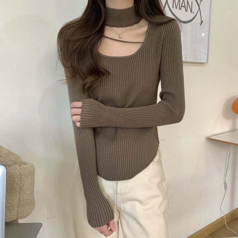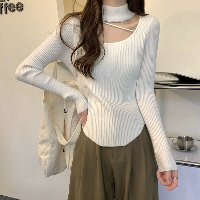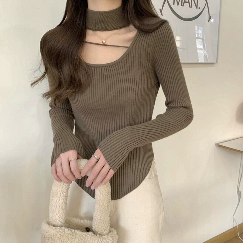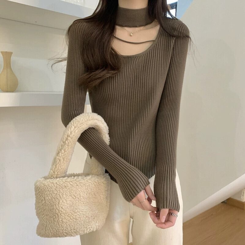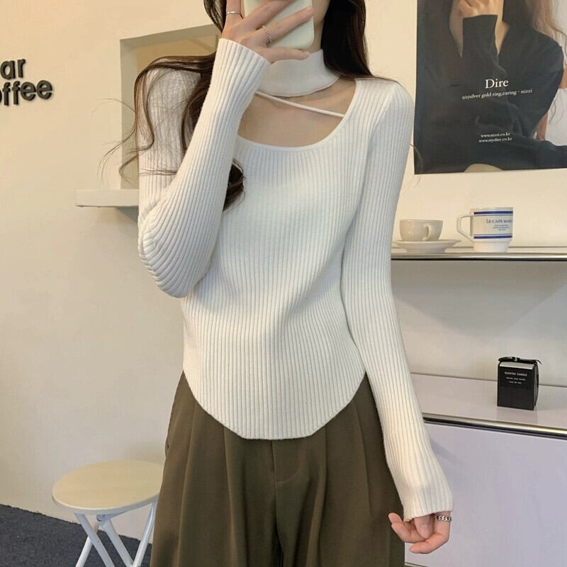 秋冬の中空ハーフタートルネックニットボトムシャツレディース。スリムフィットで、eign スタイルの不規則なホルターネックセーターと組み合わせてください。 レッド オータム 秋物 ウィンター 冬物 7460098496671465 | framboise21