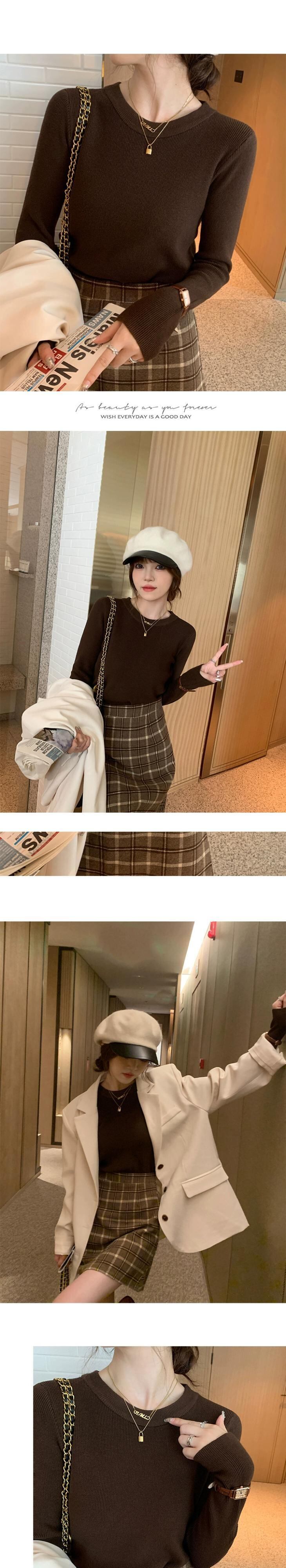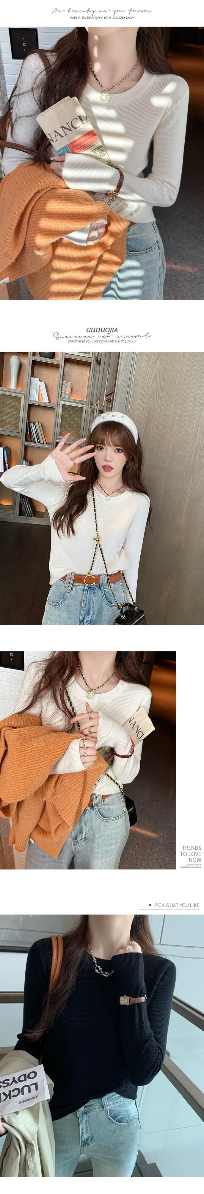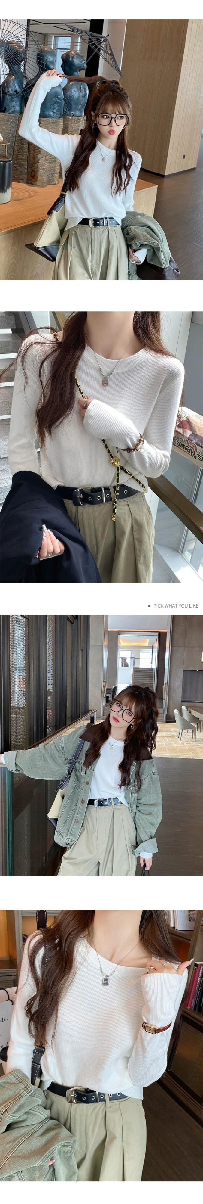 秋冬のオートミールカラーのニットボトムシャツレディース、高級インナーセーター、ファッショナブルでスリムで万能な長袖トップ ロング オータム 秋物 ウィンター 冬物 7460037100208092 | framboise21