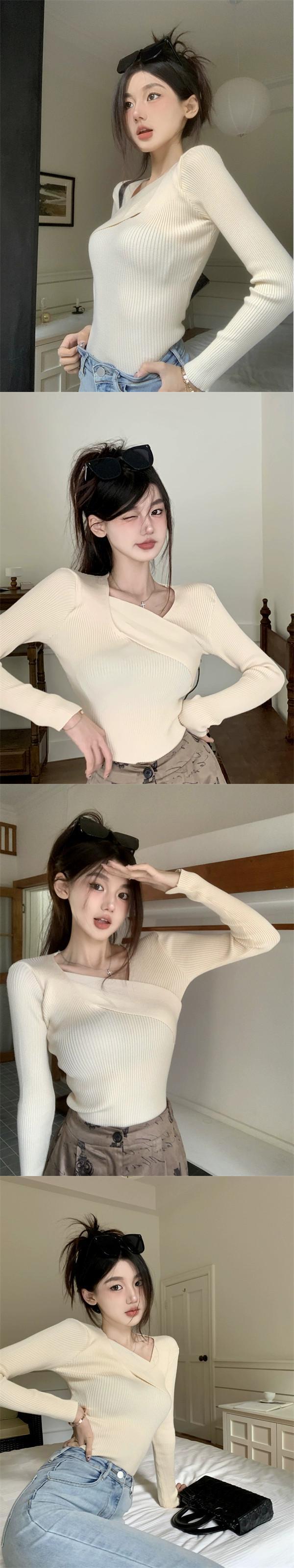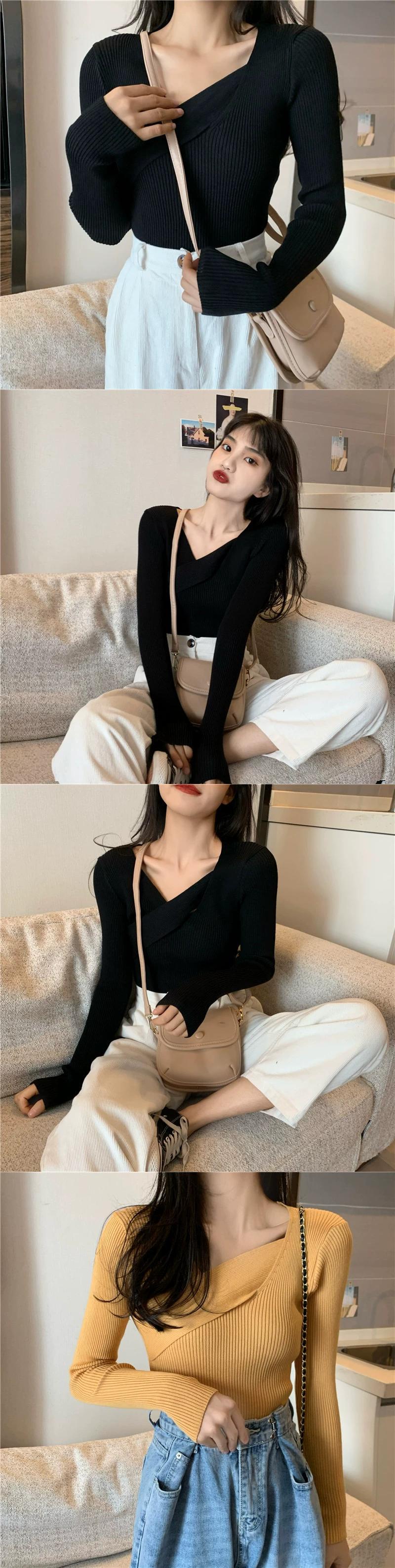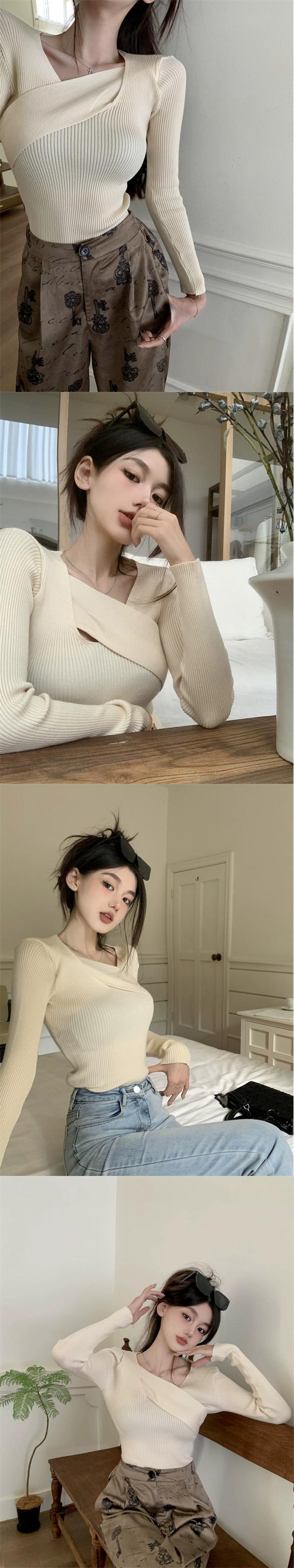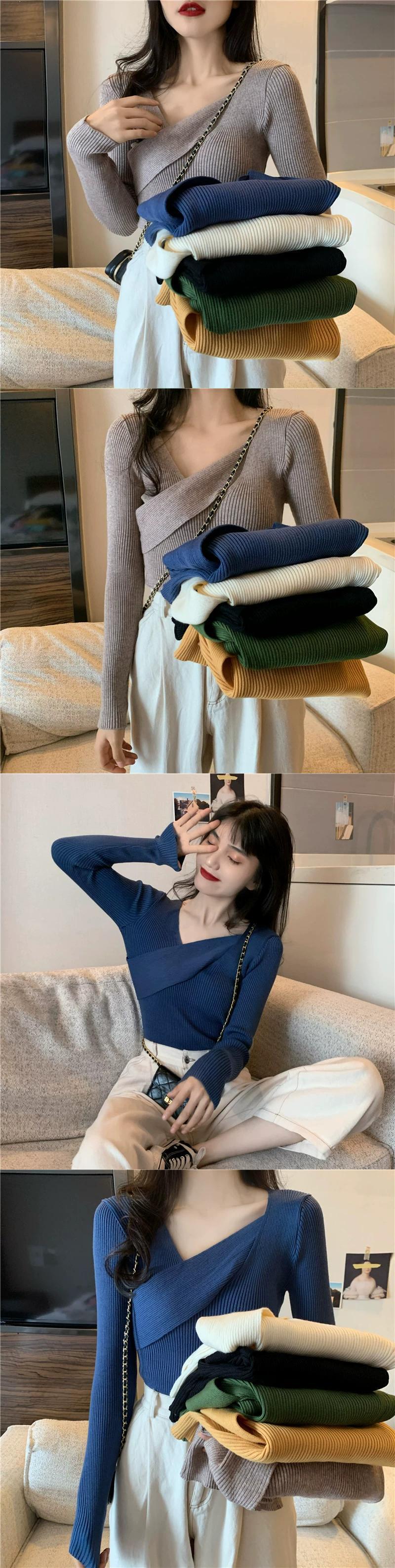 長袖ニットボトムシャツ内側 2023 新作レディース秋冬スリムスリムでスタイリッシュな多目的クロスネックセーター ロング オータム 秋物 ウィンター 冬物 7460075597568242 | framboise21