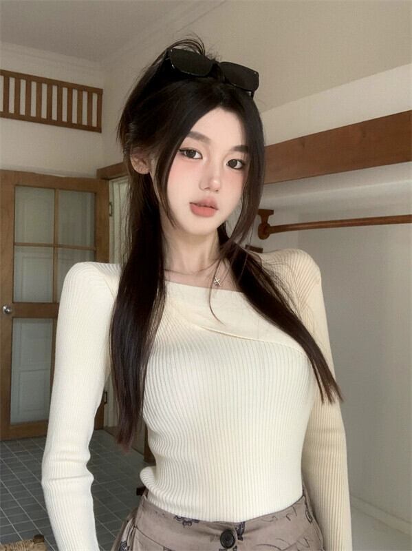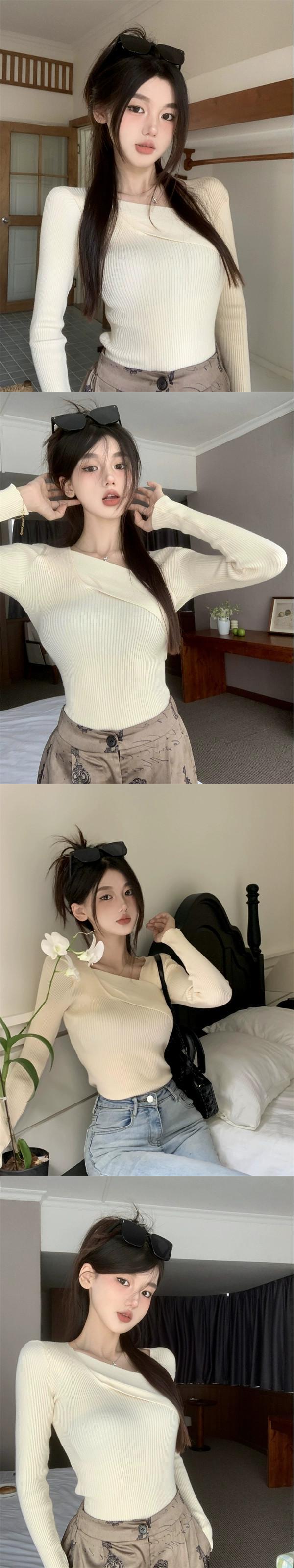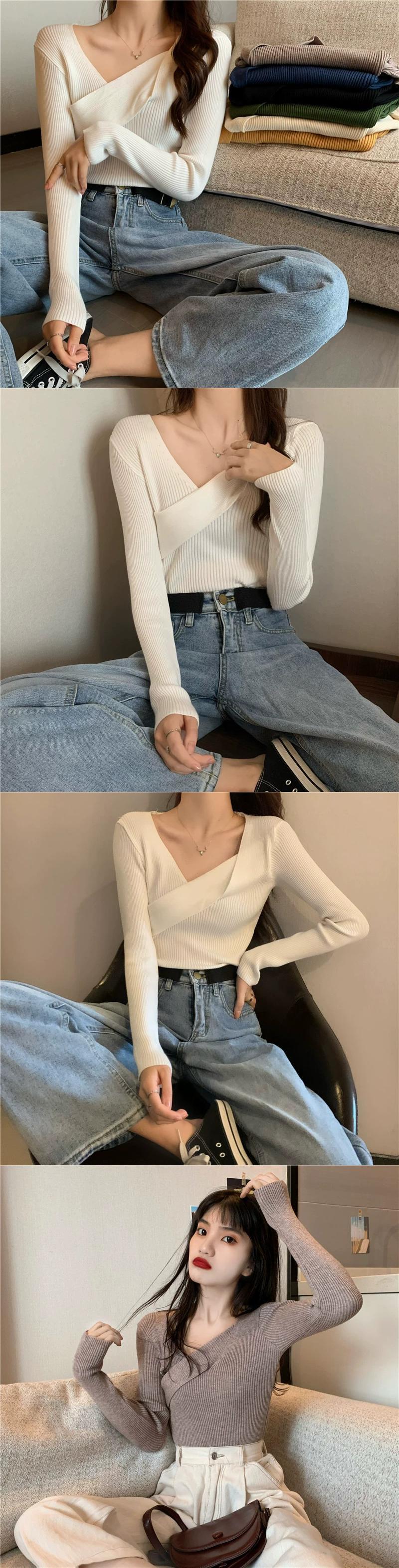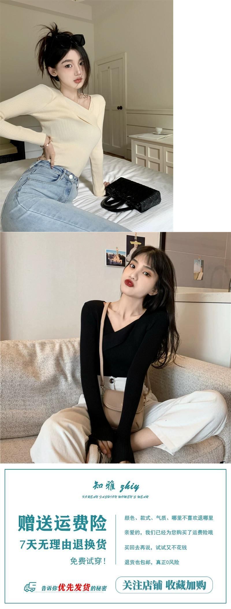 長袖ニットボトムシャツ内側 2023 新作レディース秋冬スリムスリムでスタイリッシュな多目的クロスネックセーター ロング オータム 秋物 ウィンター 冬物 7460075597568242 | framboise21