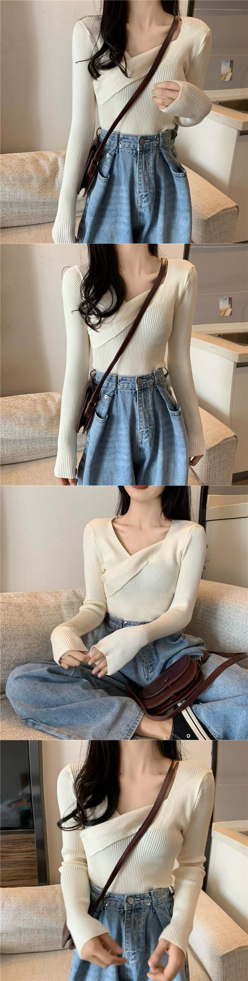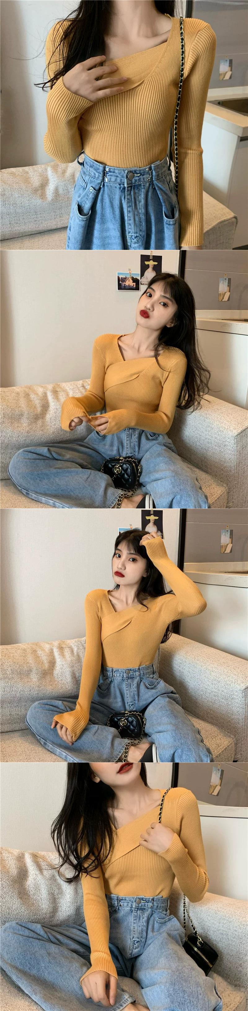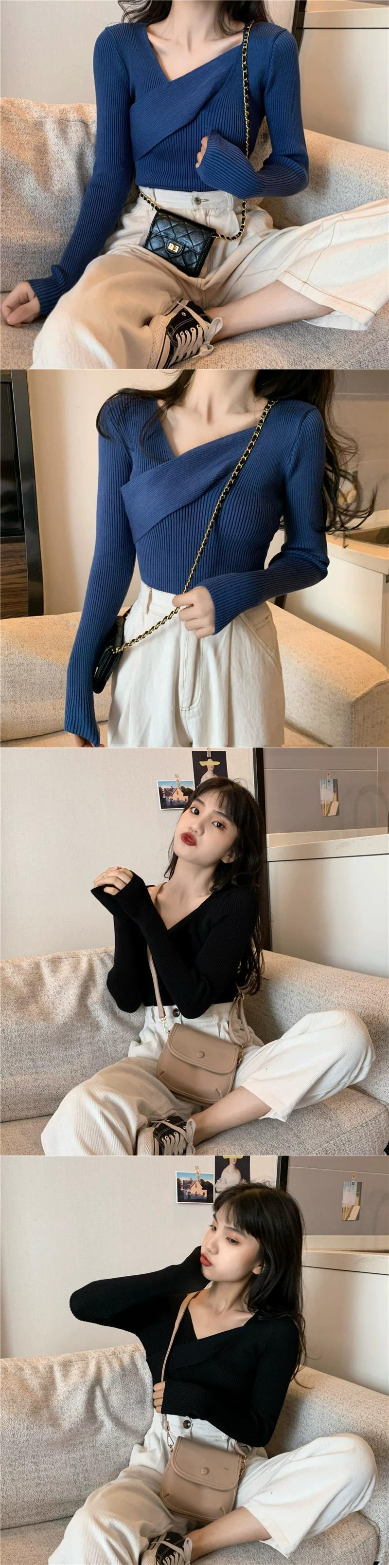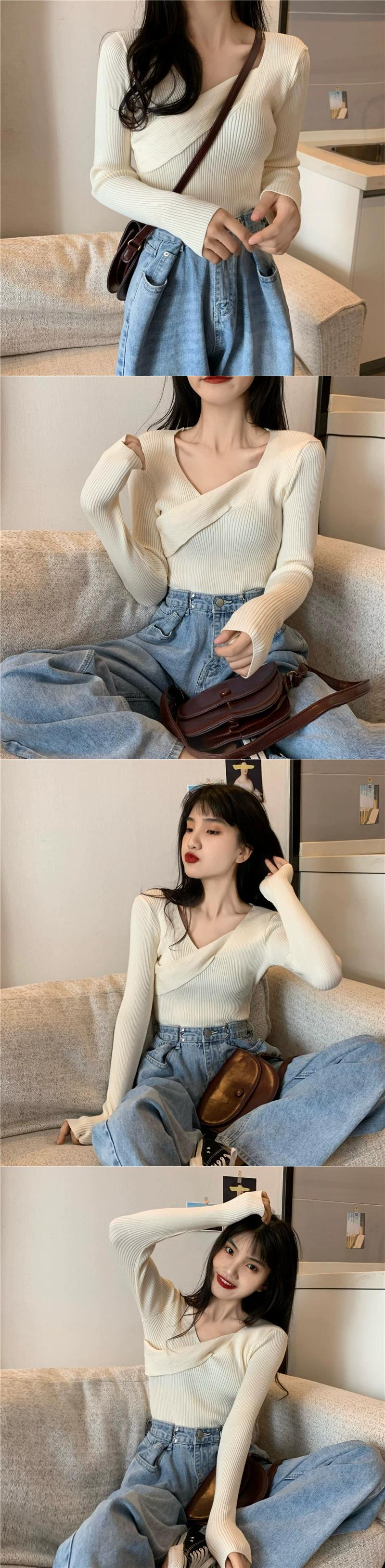 長袖ニットボトムシャツ内側 2023 新作レディース秋冬スリムスリムでスタイリッシュな多目的クロスネックセーター ロング オータム 秋物 ウィンター 冬物 7460075597568242 | framboise21