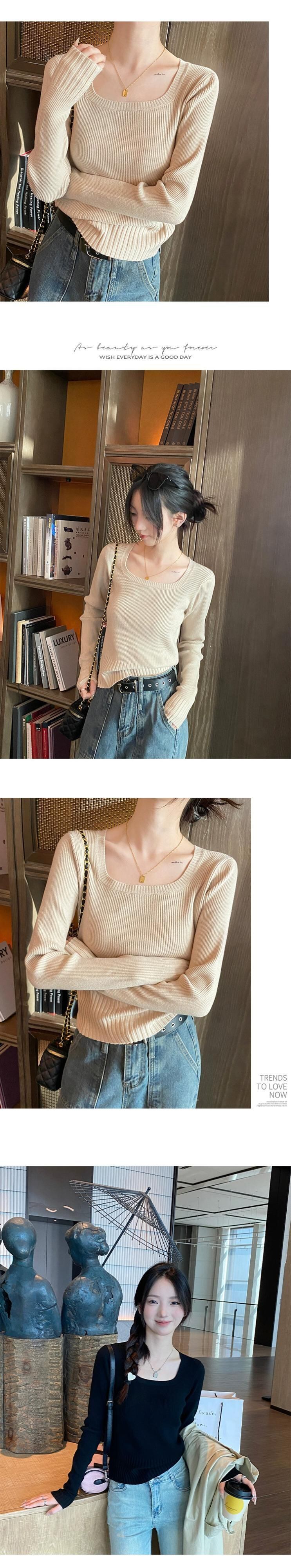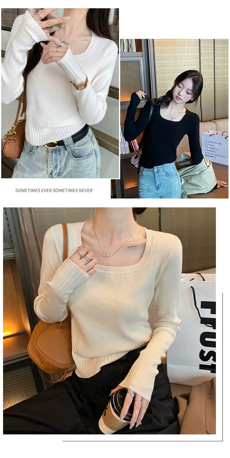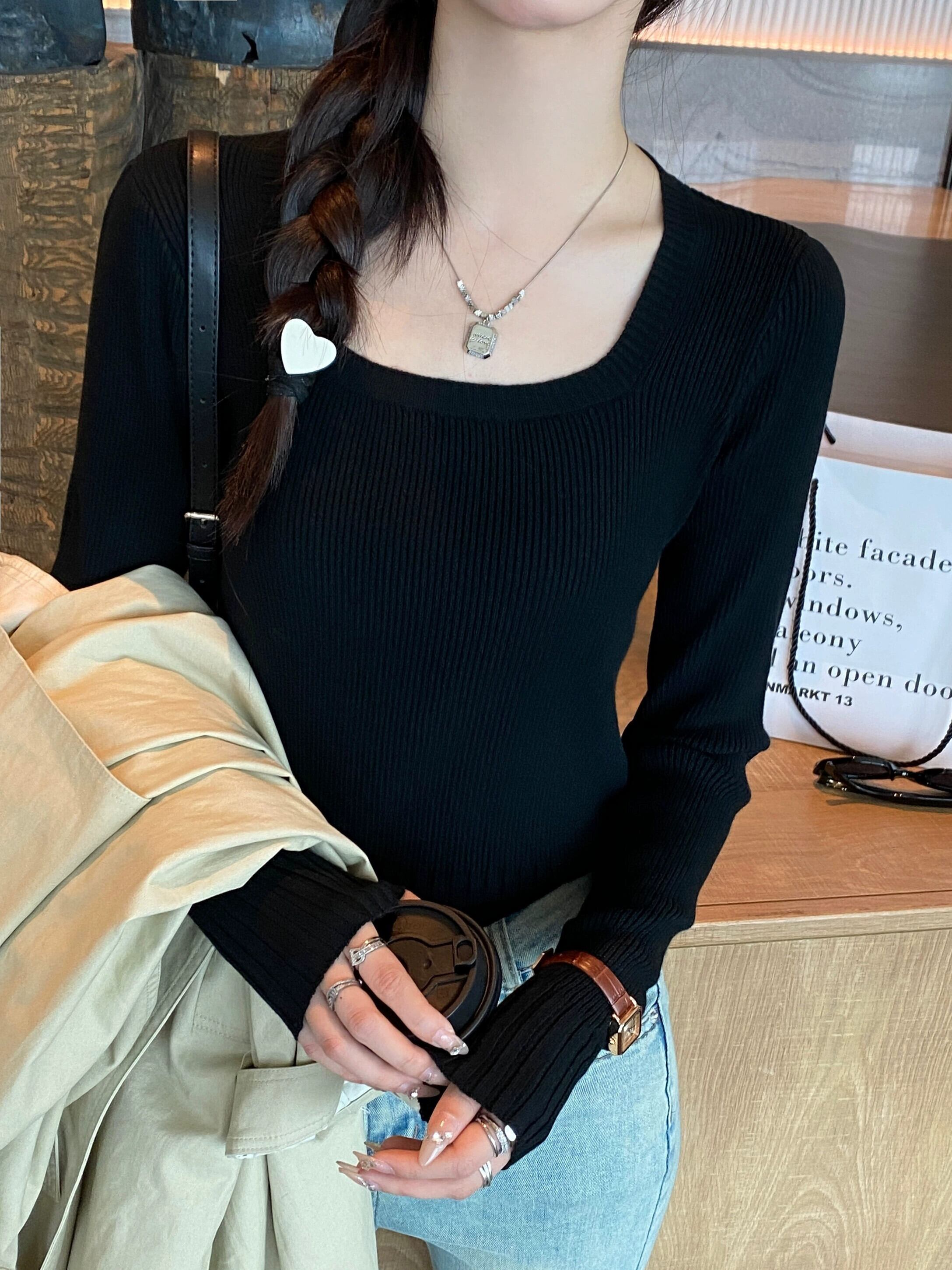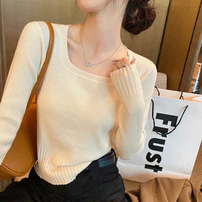 女性の秋冬のハイエンド、ウエスタンスタイル、スリムで汎用性の高い半袖スクエアネックセーター、スーツの内側にニットボトムシャツが付いています オータム 秋物 ウィンター 冬物 スクウェア 7460030045289730 | framboise21
