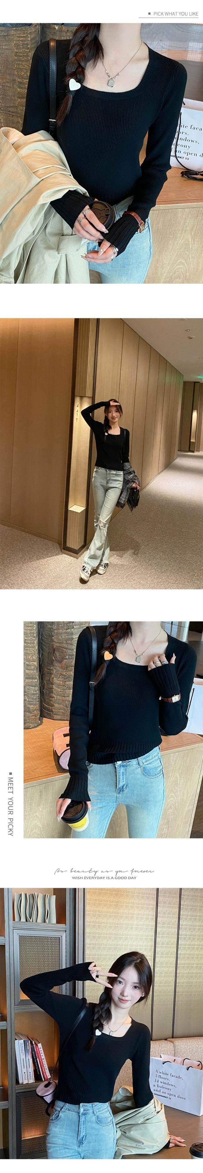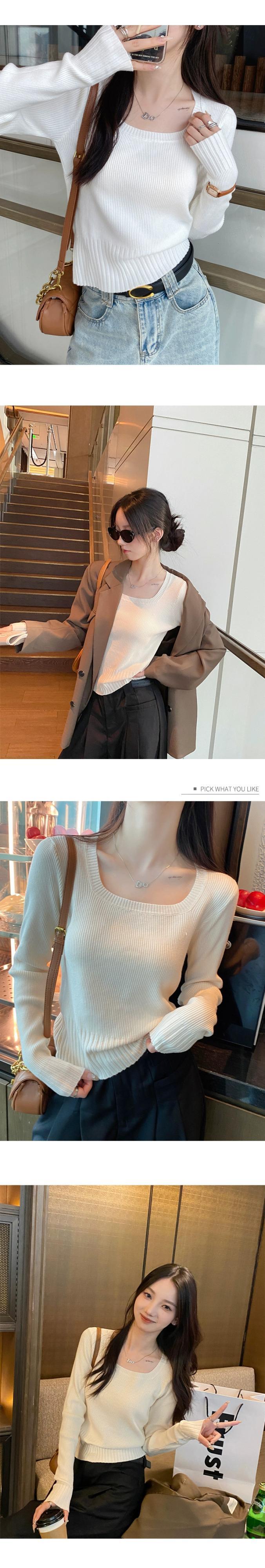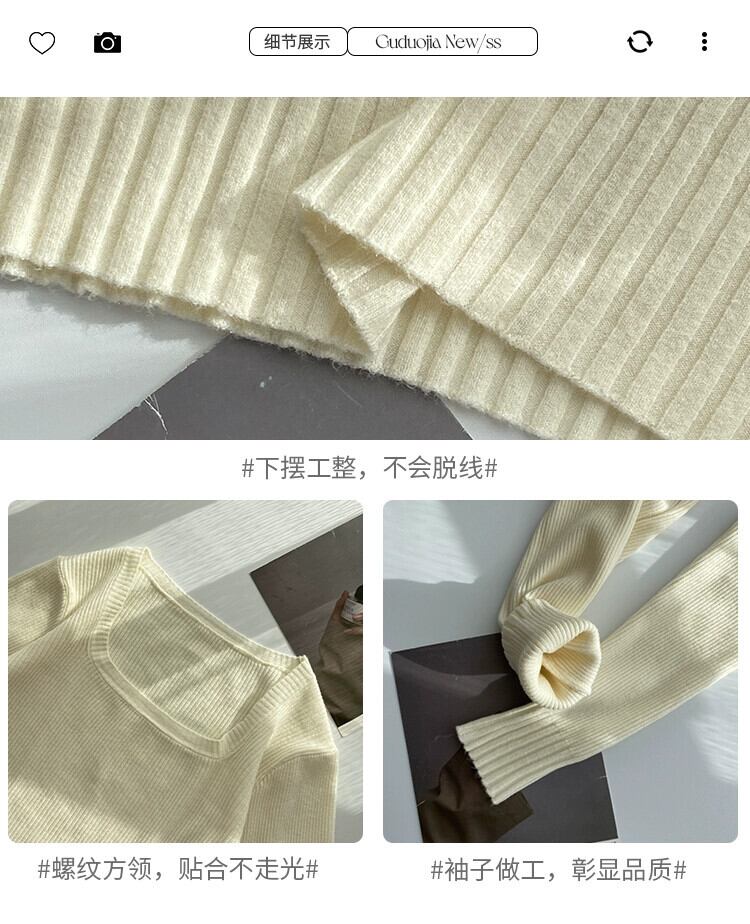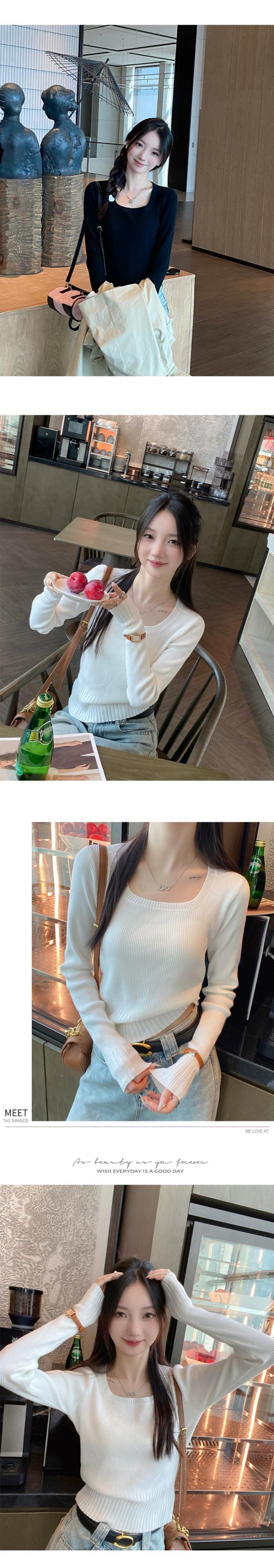女性の秋冬のハイエンド、ウエスタンスタイル、スリムで汎用性の高い半袖スクエアネックセーター、スーツの内側にニットボトムシャツが付いています オータム 秋物 ウィンター 冬物 スクウェア 7460030045289730 | framboise21