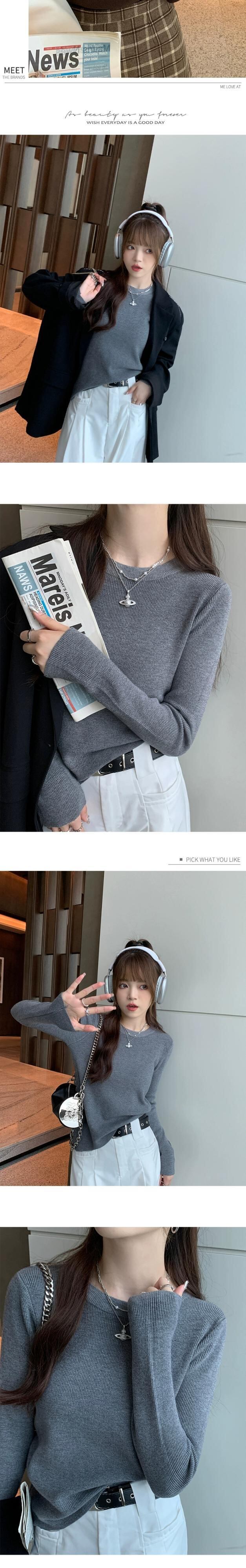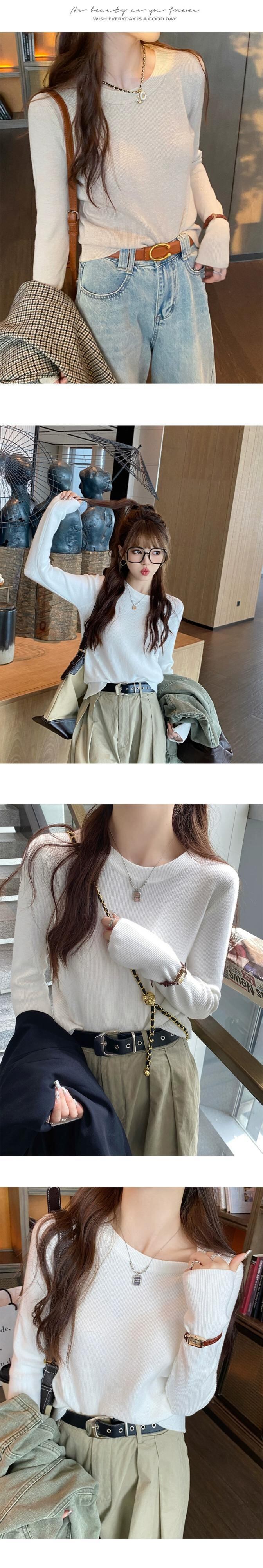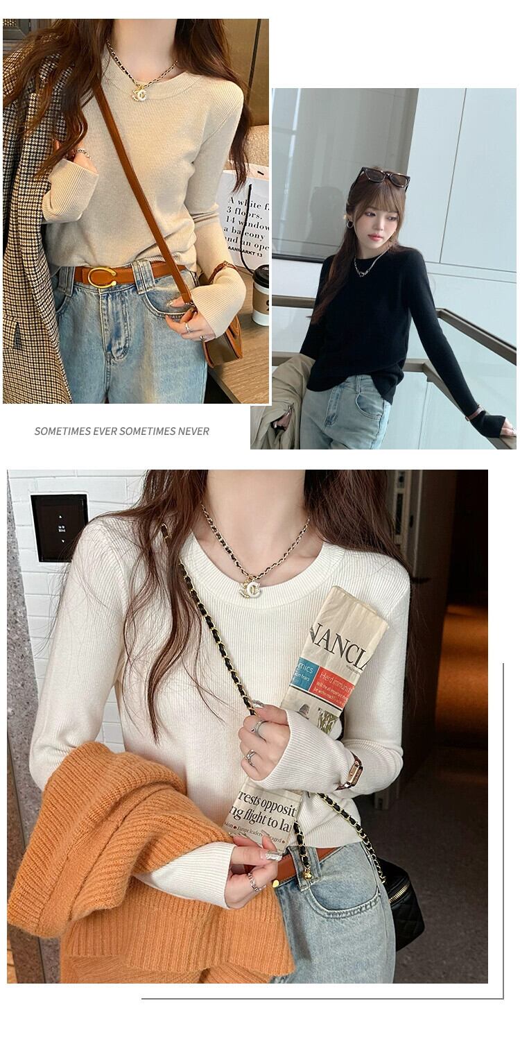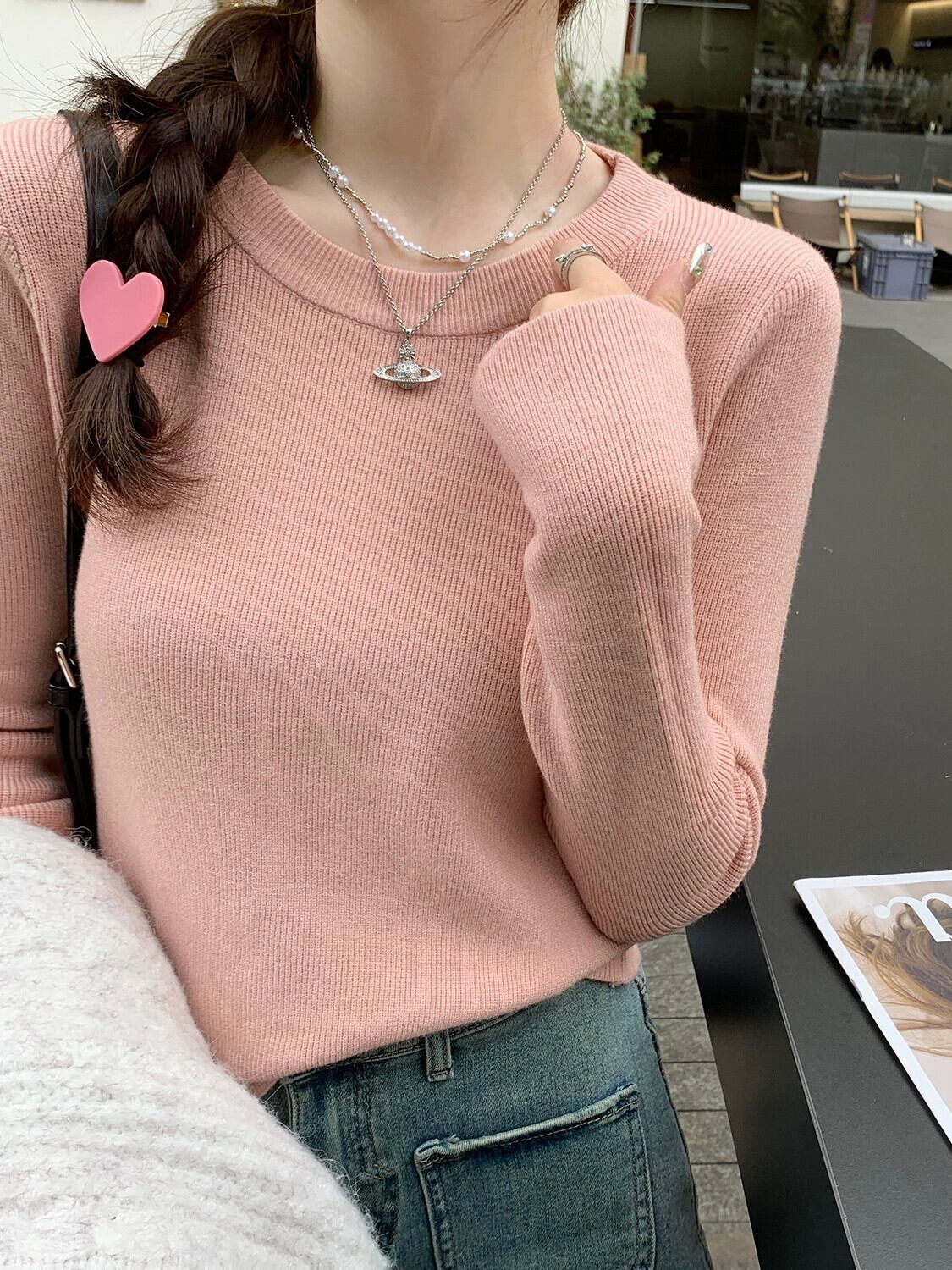 秋と冬の長袖ニットボトムシャツ女性、ファッショナブルでファッショナブル、柔らかいワックスのようなラウンドネックセーターを備えたルーズでスリムなスーツ ロング オータム 秋物 ウィンター 冬物 Oネック 7460092185087455 | framboise21