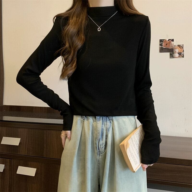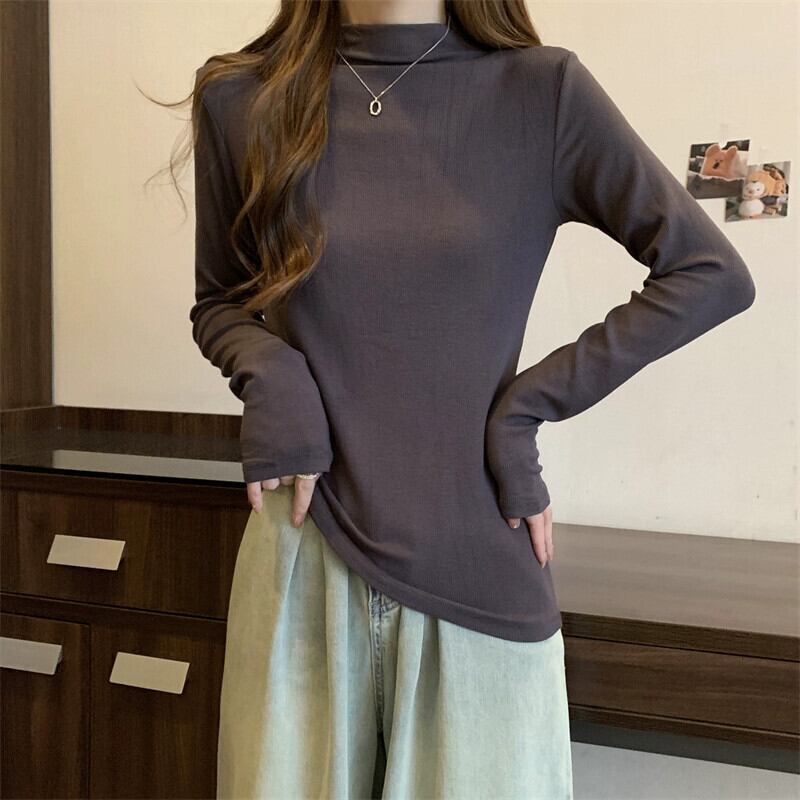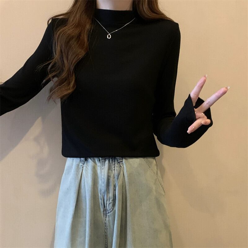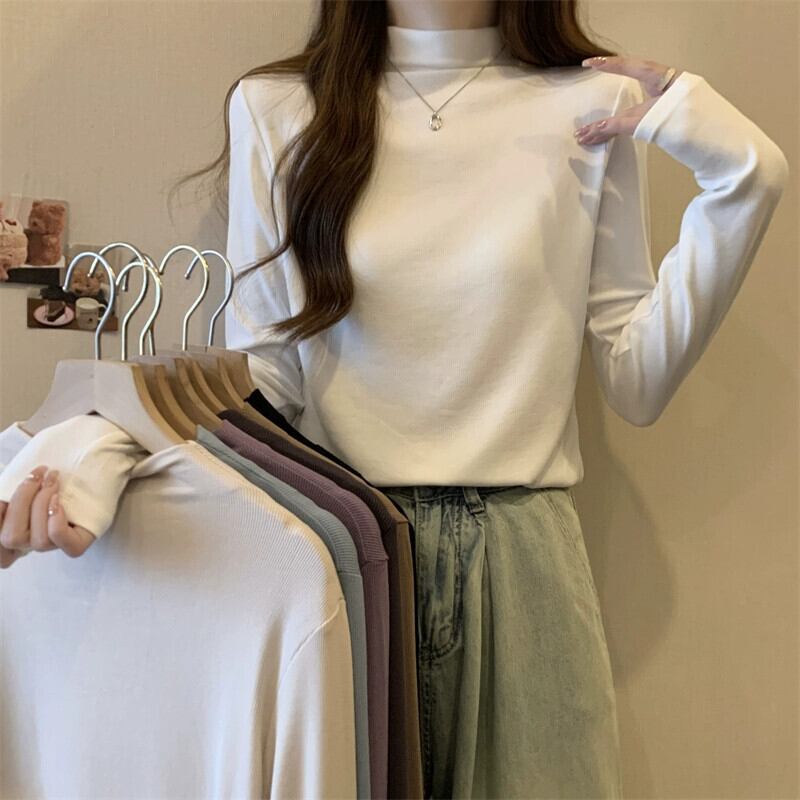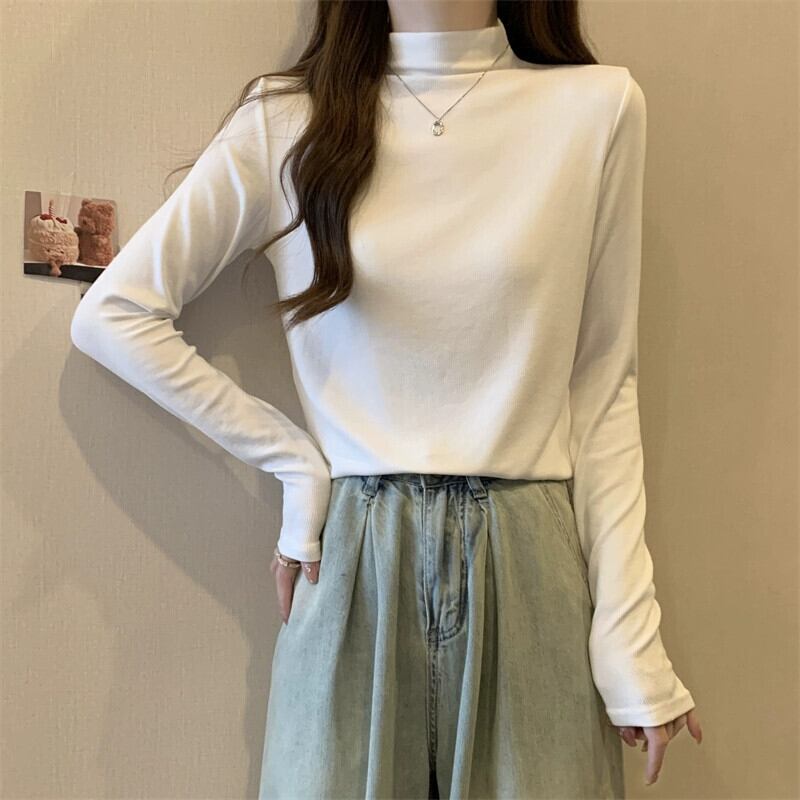 秋冬のドイツ製ベルベットハーフタートルネックボトリングシャツ女性、スーツの下にファッショナブルでスリムフィット、ミッドカラー長袖Tシャツホワイト ロング オータム 秋物 ウィンター 冬物 7460071751788188 | framboise21