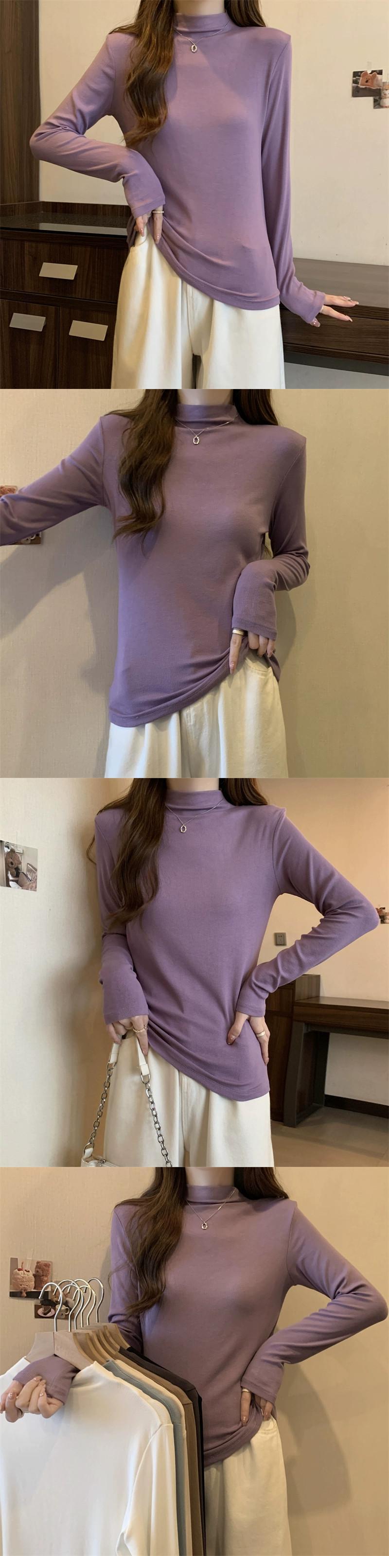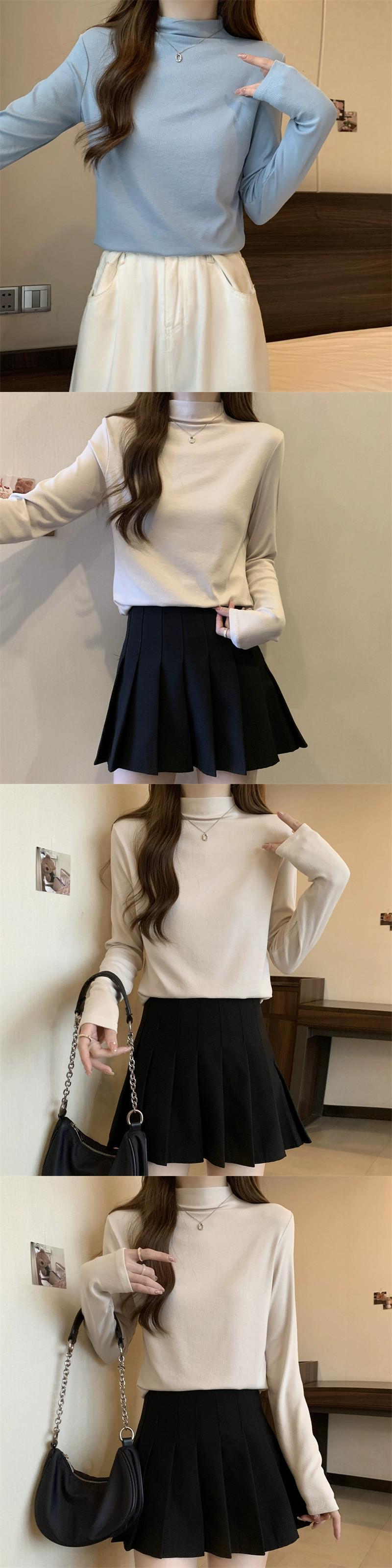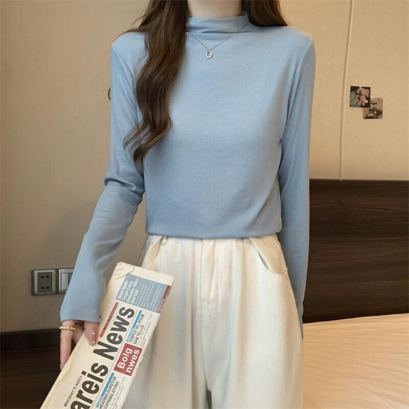 秋冬のドイツ製ベルベットハーフタートルネックボトリングシャツ女性、スーツの下にファッショナブルでスリムフィット、ミッドカラー長袖Tシャツホワイト ロング オータム 秋物 ウィンター 冬物 7460071751788188 | framboise21