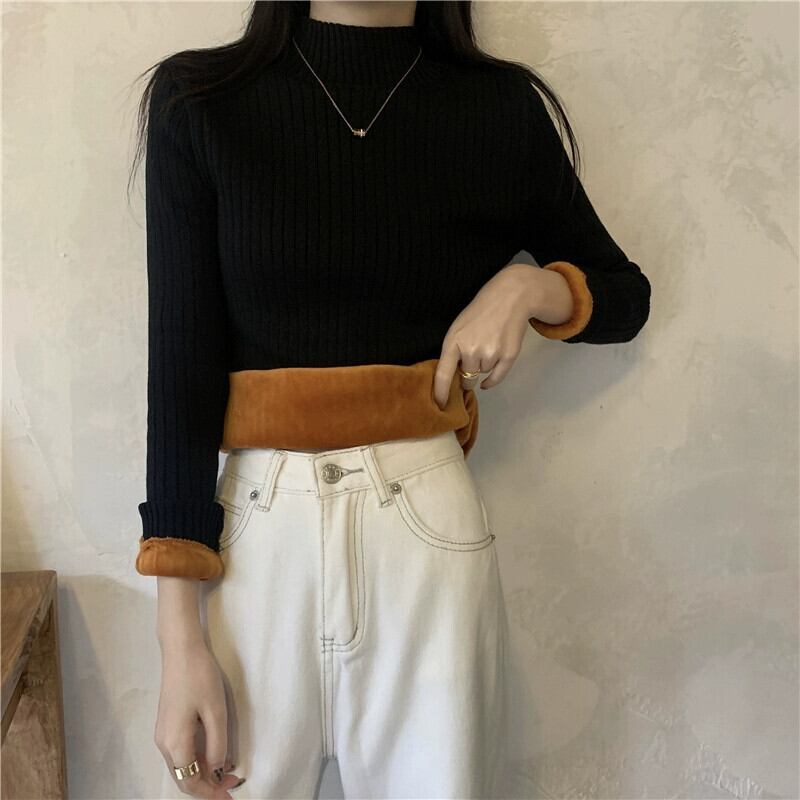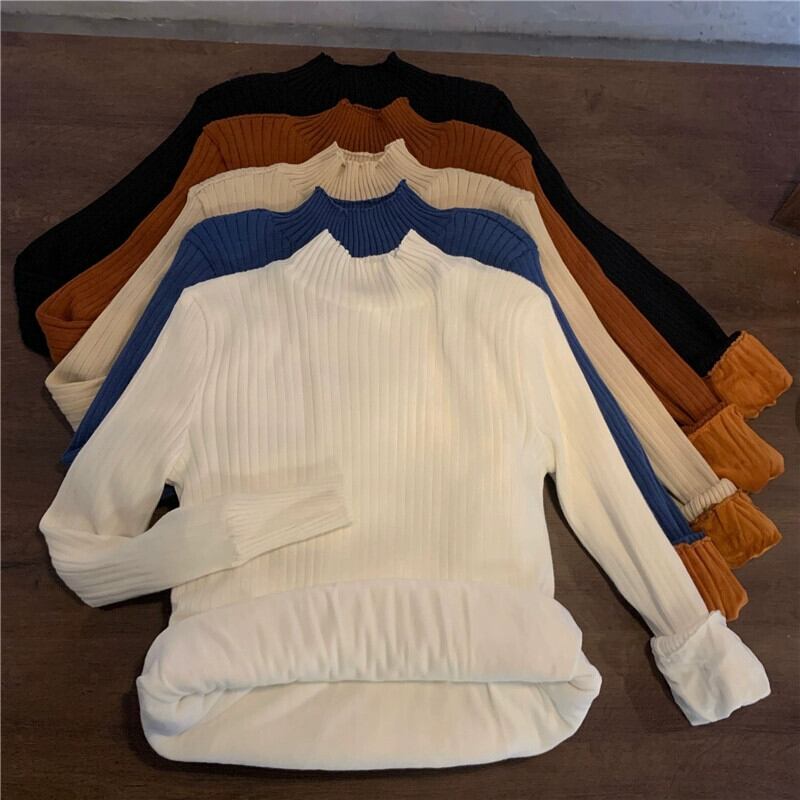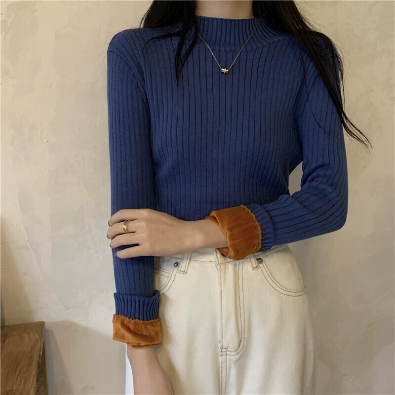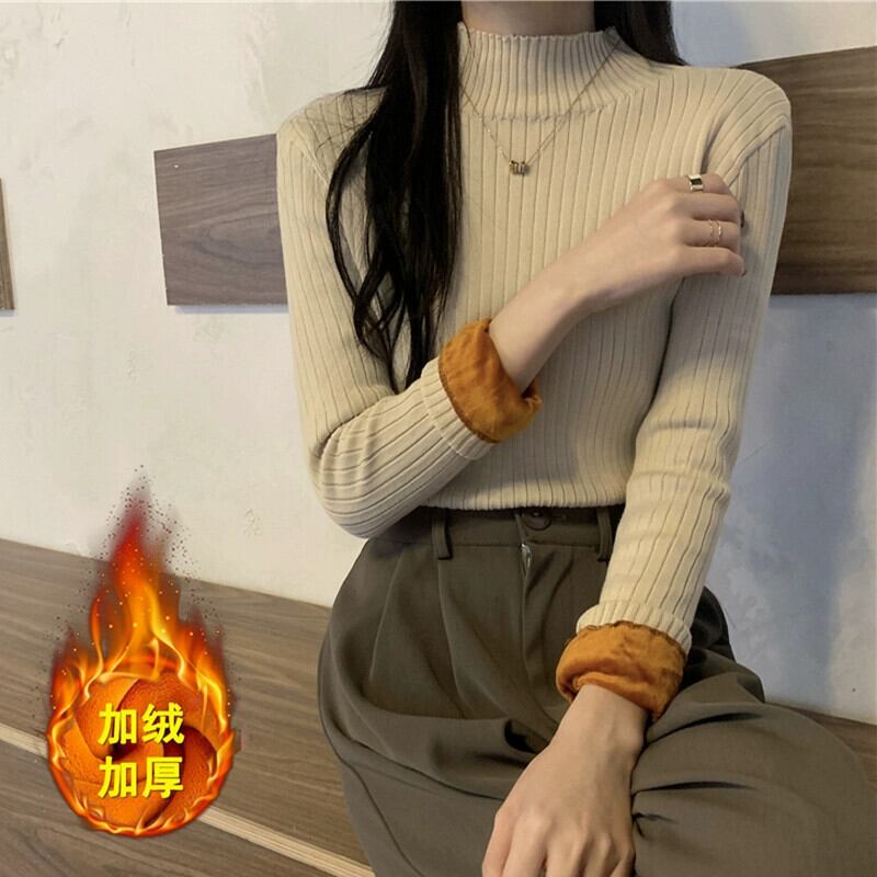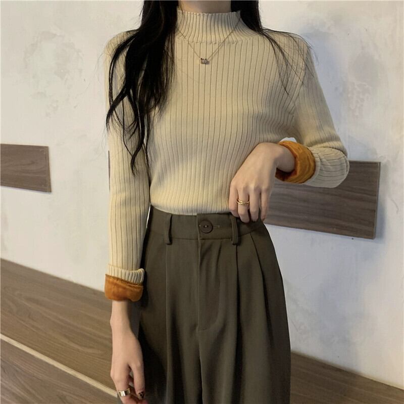厚いベルベットハーフタートルネックボトリングシャツ女性の秋と冬のファッショナブルでスリムフィットの暖かいニットミッドカラーセーター オータム 秋物 ウィンター 冬物 7460044939396867 | framboise21