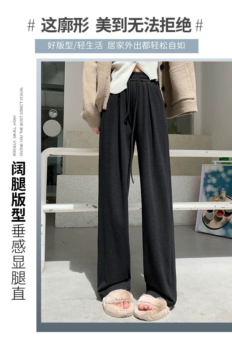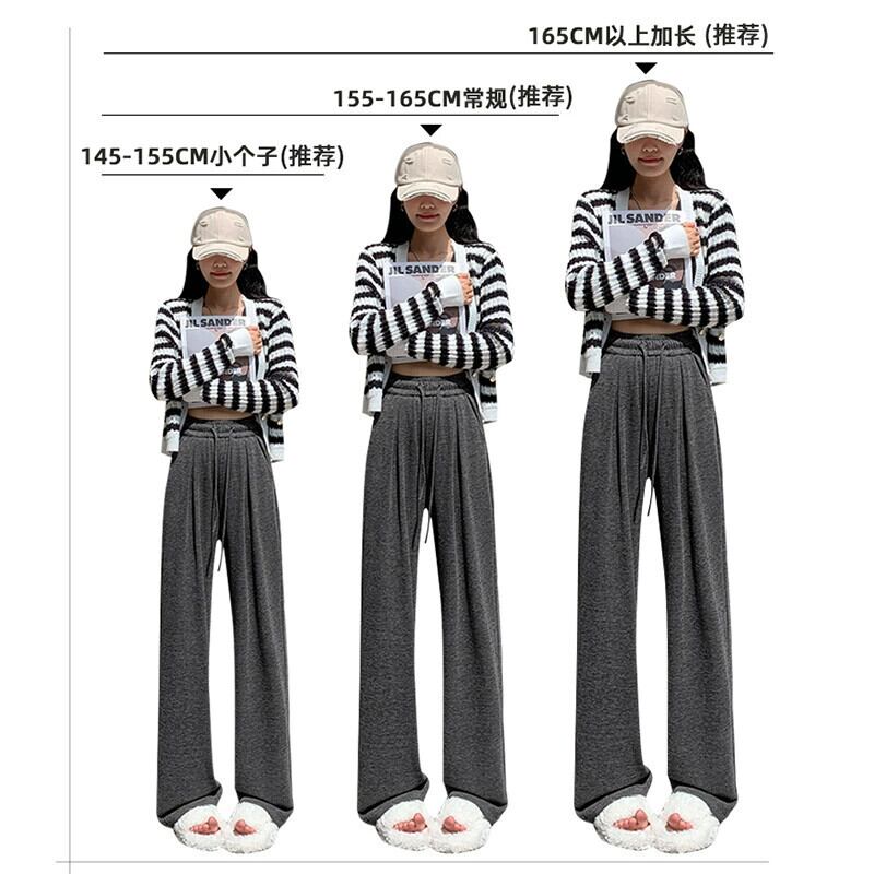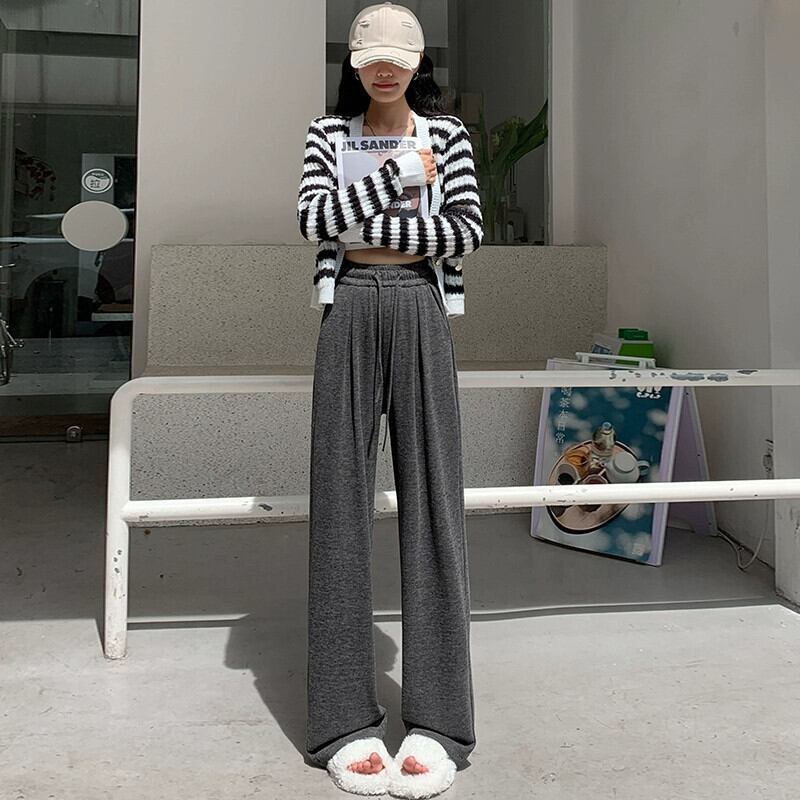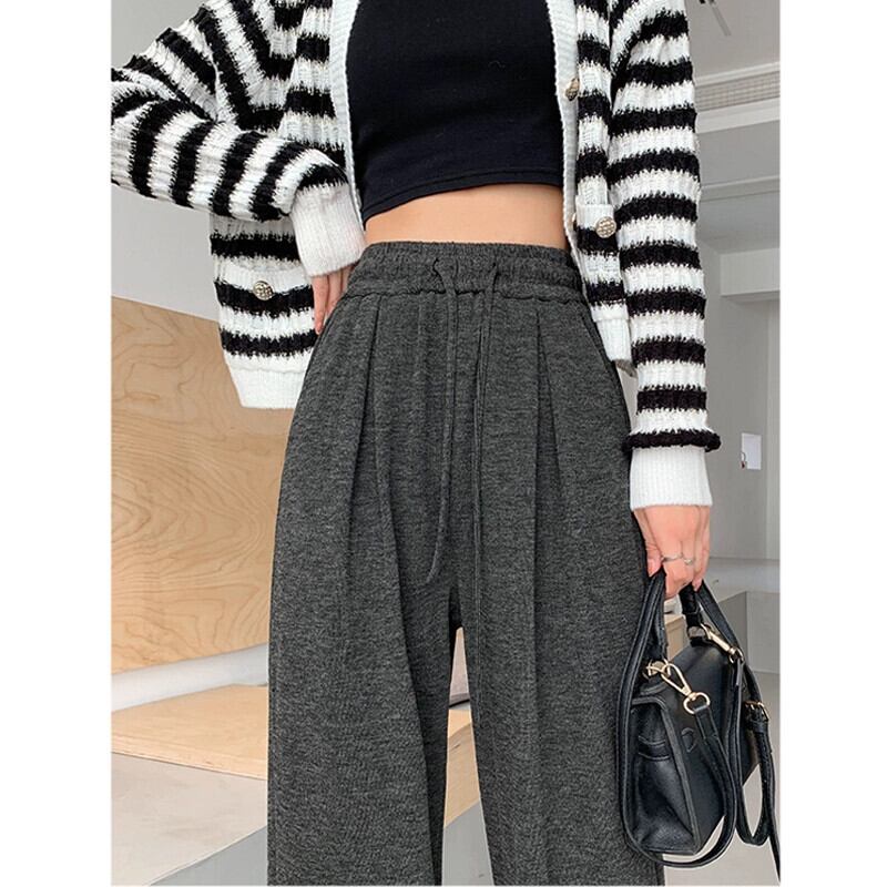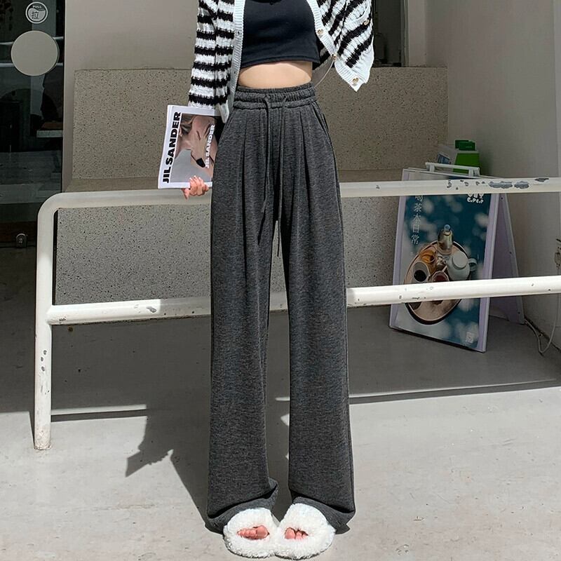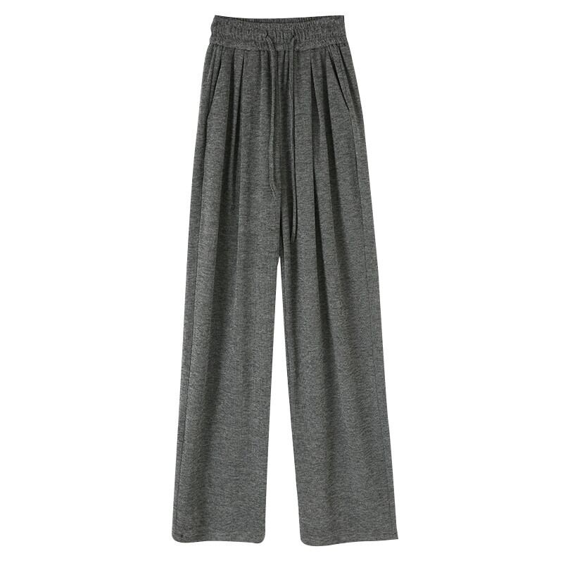 グレーの狭いニットワイドレッグパンツ女性春と秋 2023 新スタイル怠惰なウォーキングパンツ小人フロアレングスストレートパンツ スプリング 春物 オータム 秋物 7460020310391849 | framboise21