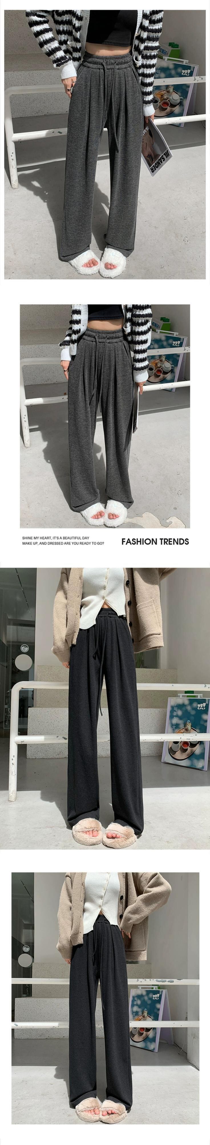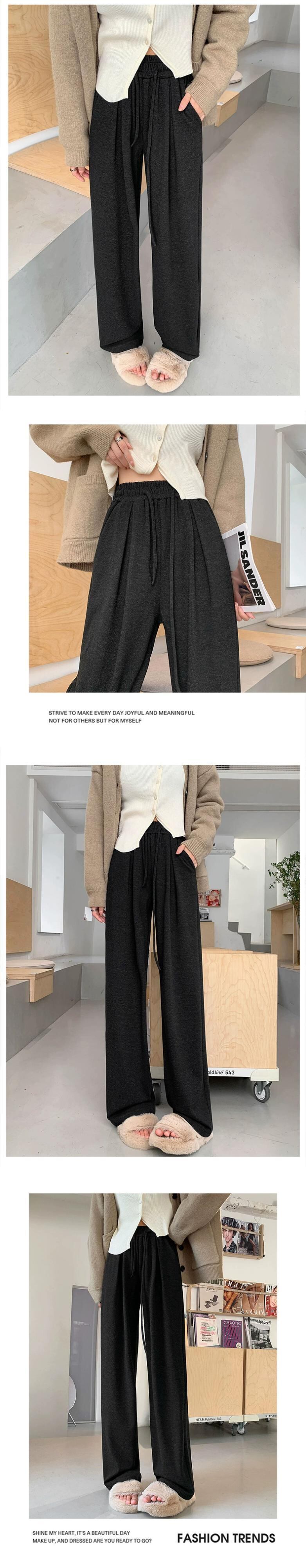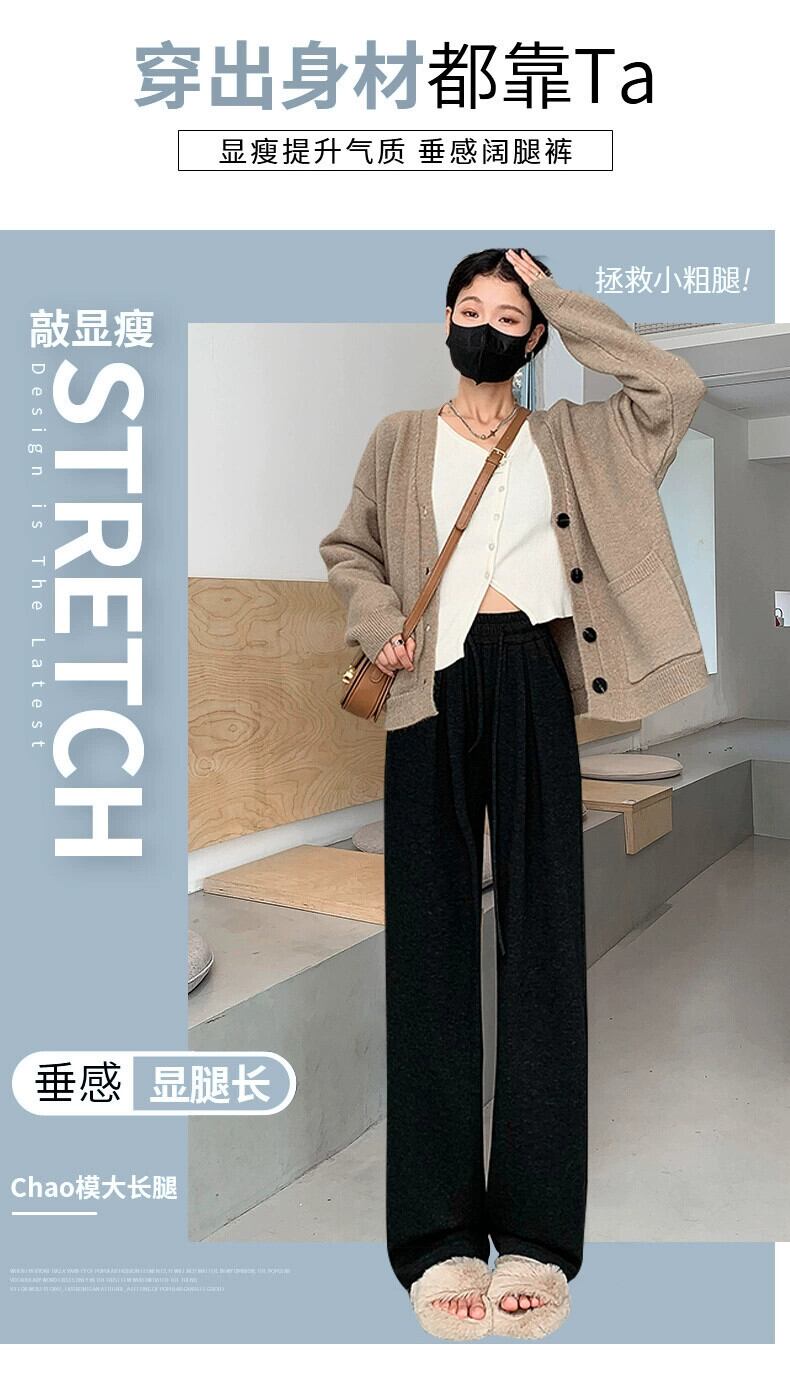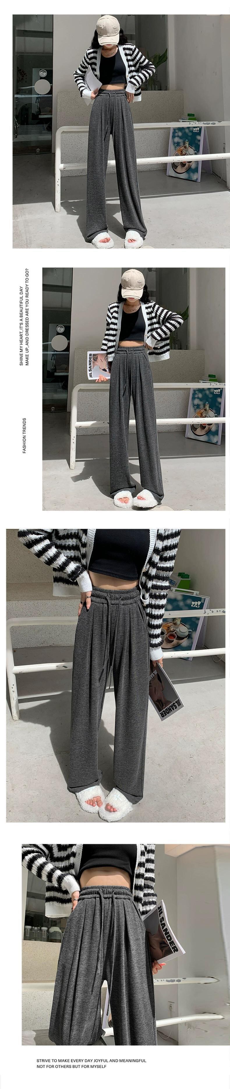 グレーの狭いニットワイドレッグパンツ女性春と秋 2023 新スタイル怠惰なウォーキングパンツ小人フロアレングスストレートパンツ スプリング 春物 オータム 秋物 7460020310391849 | framboise21