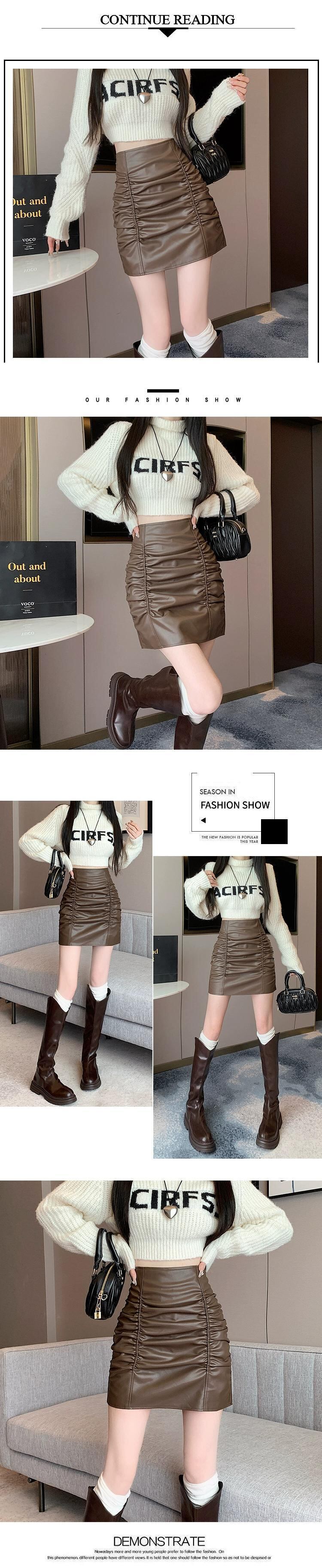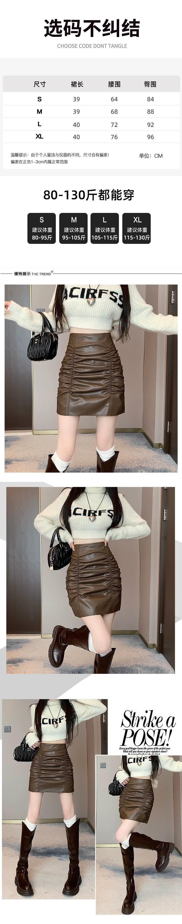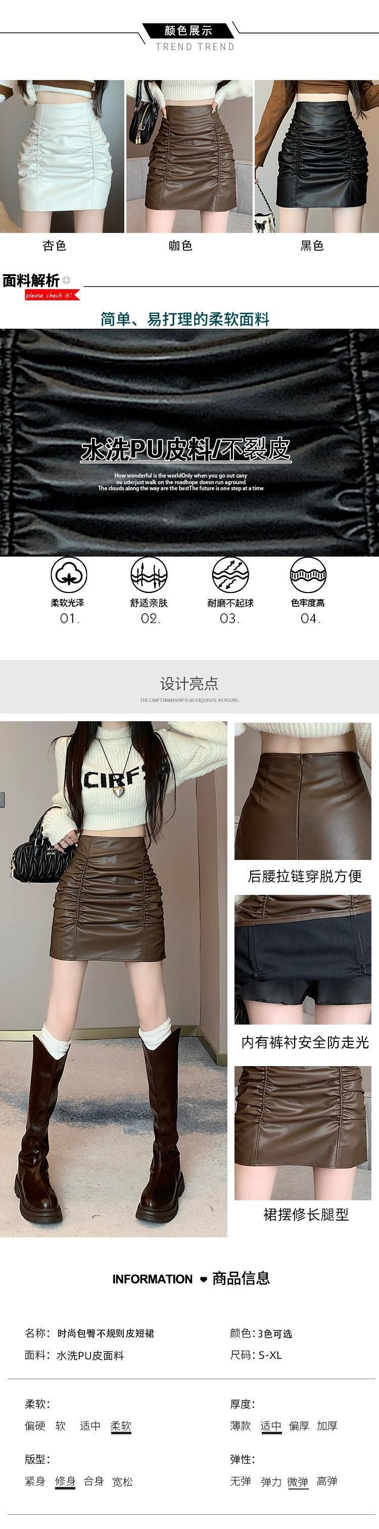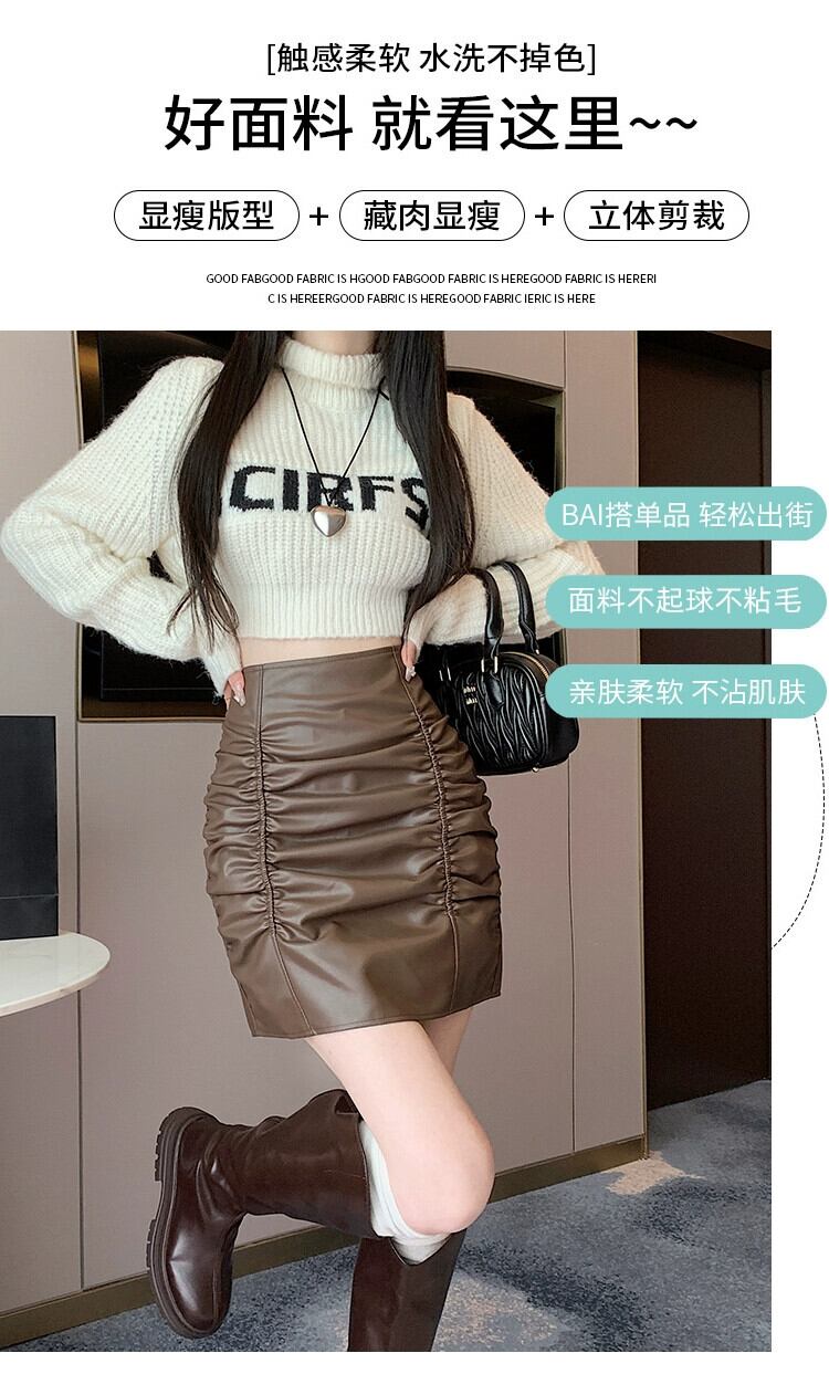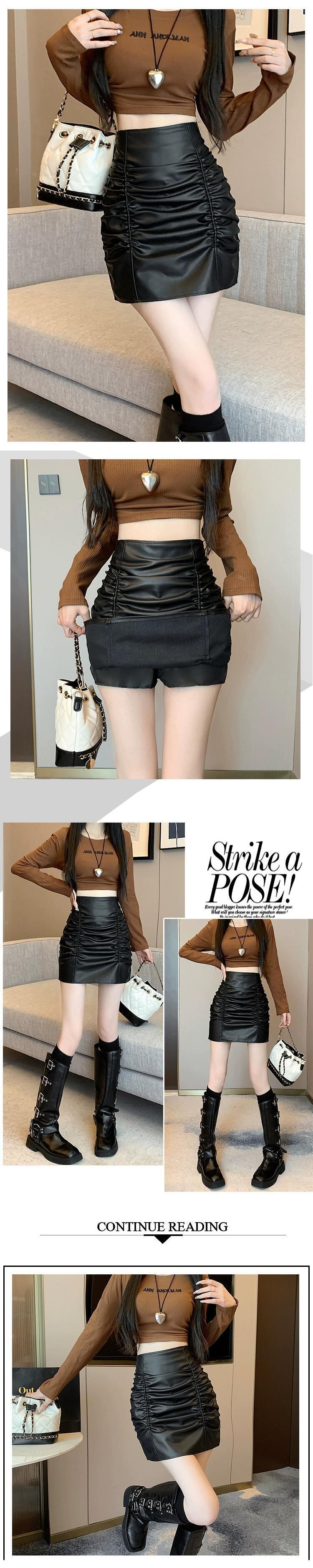 プリーツヒップカバースカート女性 2023 秋と冬の新ブラックレザースカートハイウエスト A ライン痩身多用途 Pu レザースカート オータム 秋物 ウィンター 冬物 Aライン 7460086889618687 | framboise21