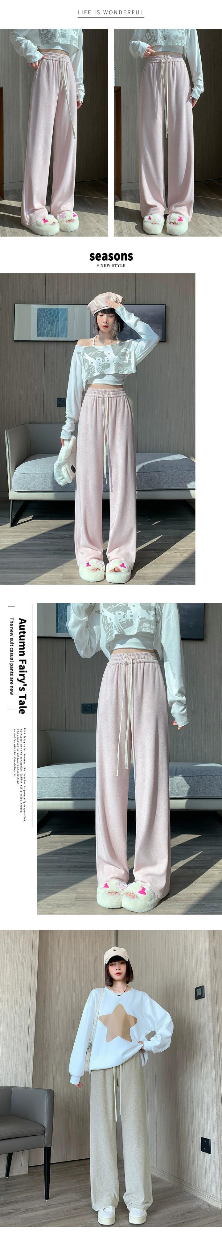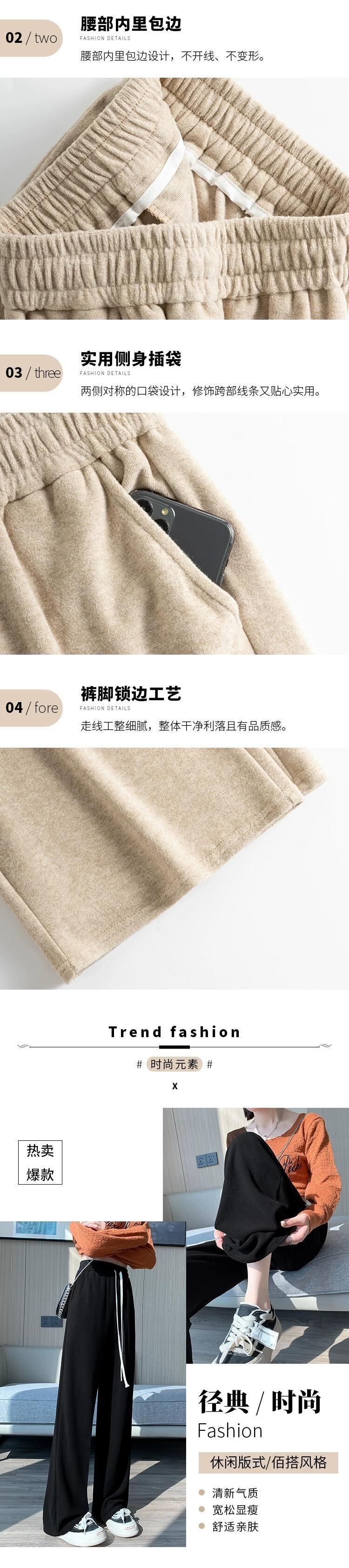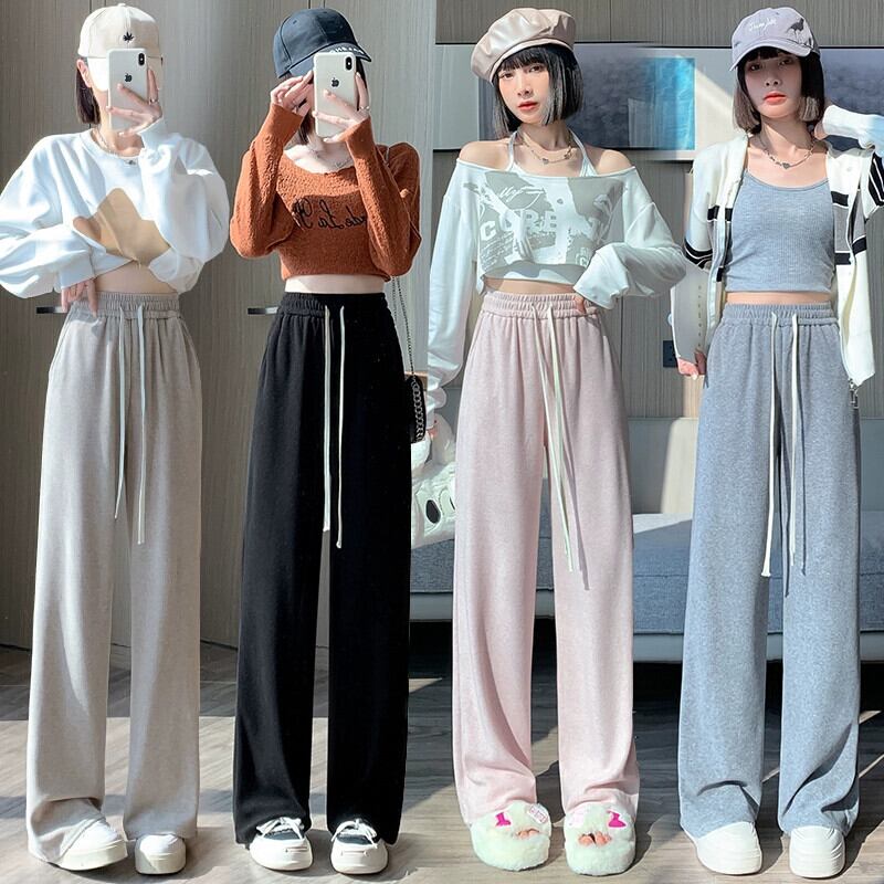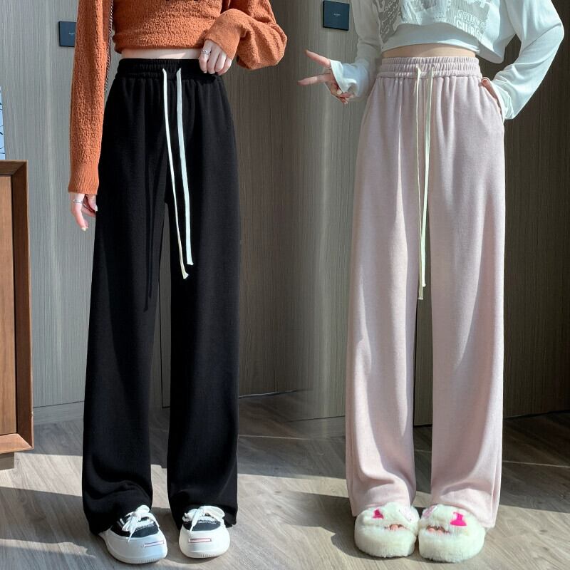 ソフトワックスタオルワイドレッグパンツ女性秋冬 2023 新しいルーズストレートスリムハイウエストフロアレングスカジュアルパンツ オータム 秋物 ウィンター 冬物 746009622939283 | framboise21