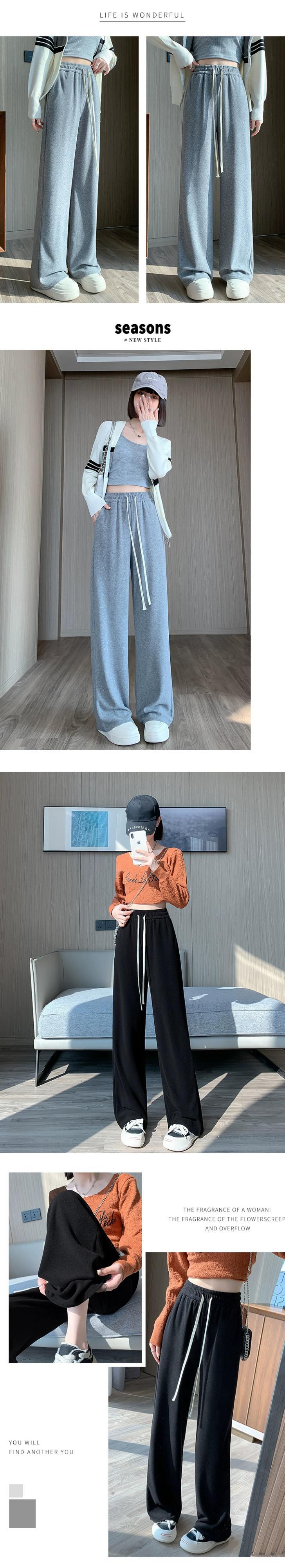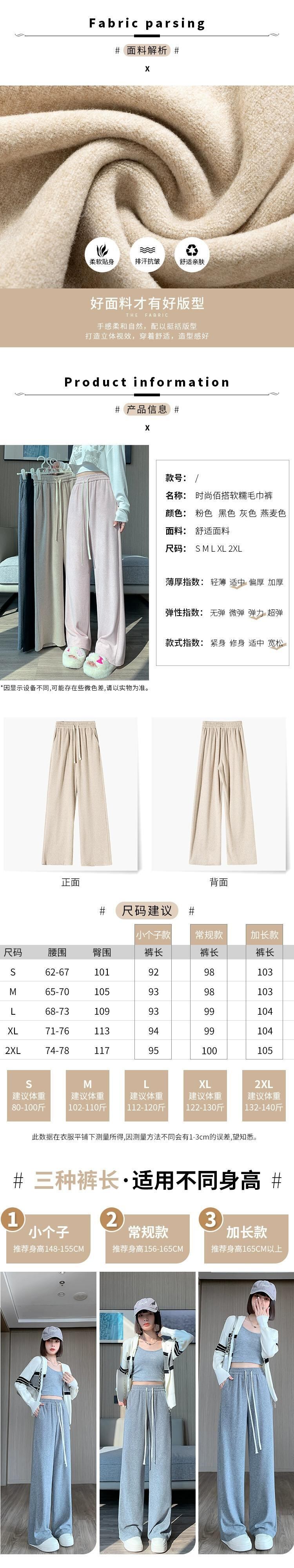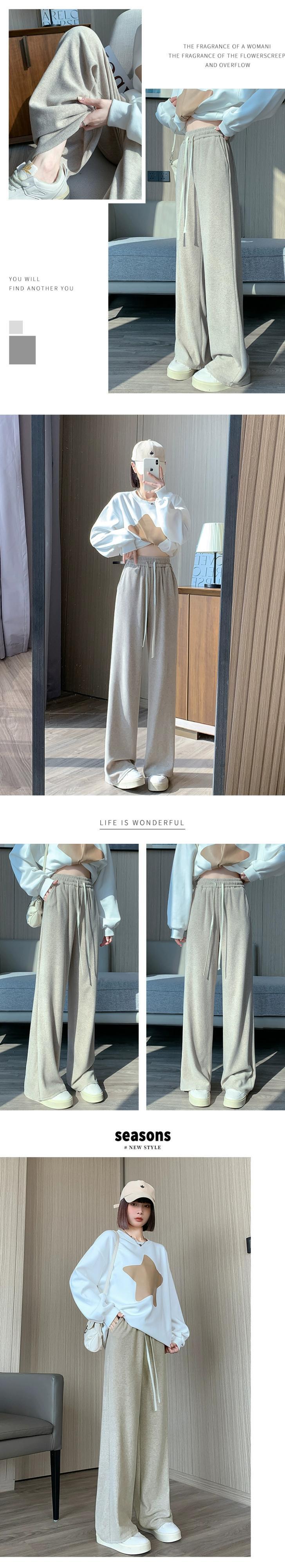 ソフトワックスタオルワイドレッグパンツ女性秋冬 2023 新しいルーズストレートスリムハイウエストフロアレングスカジュアルパンツ オータム 秋物 ウィンター 冬物 746009622939283 | framboise21