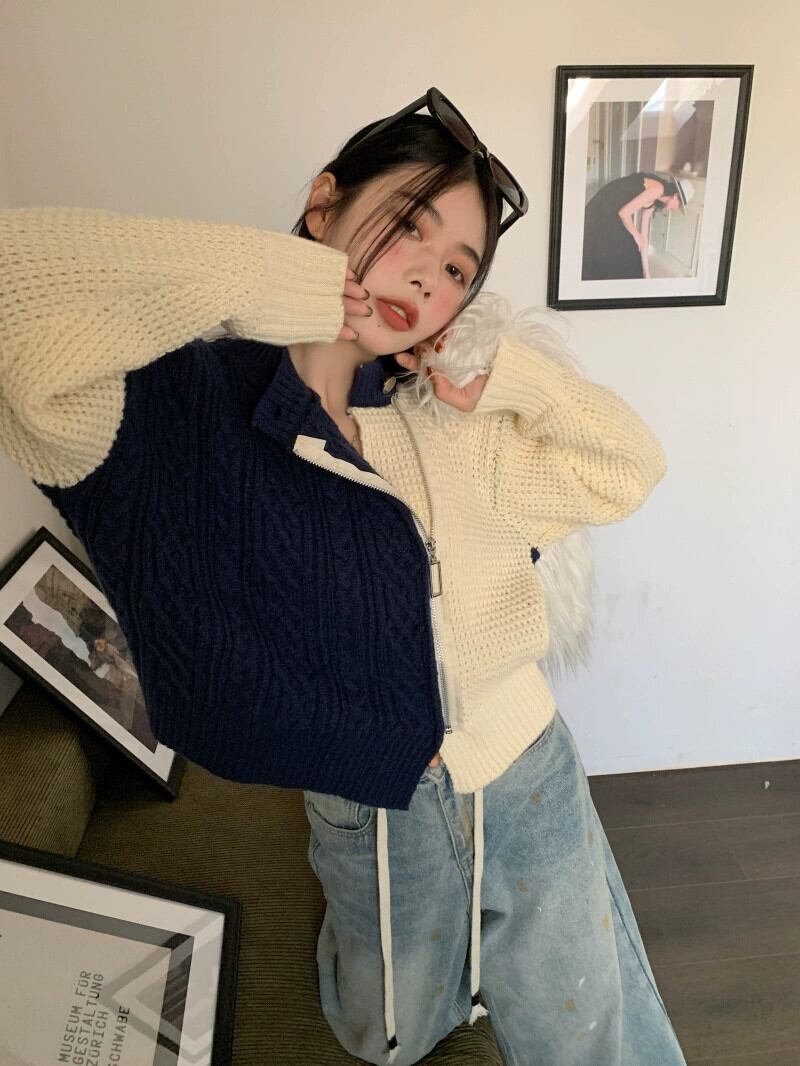 太い糸ツイストカーディガンセータージャケット女性秋と冬ルーズアウター怠惰なスタイルレトロ多目的長袖セーター ロング オータム 秋物 ウィンター 冬物 7460086583436535 | framboise21