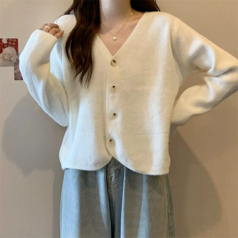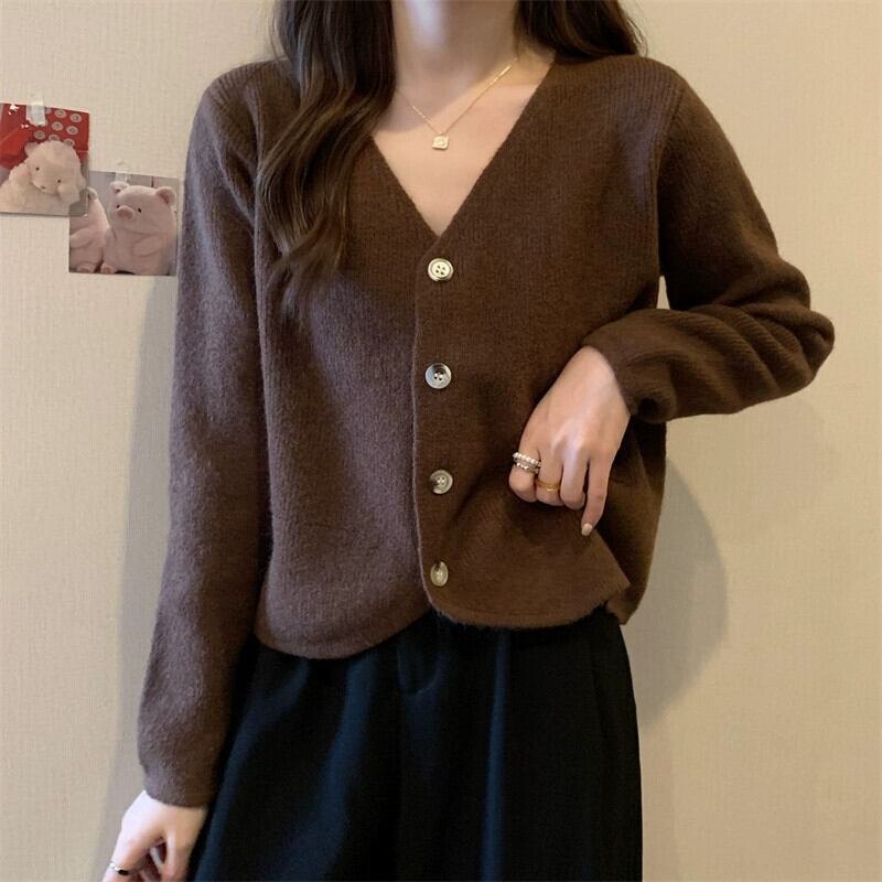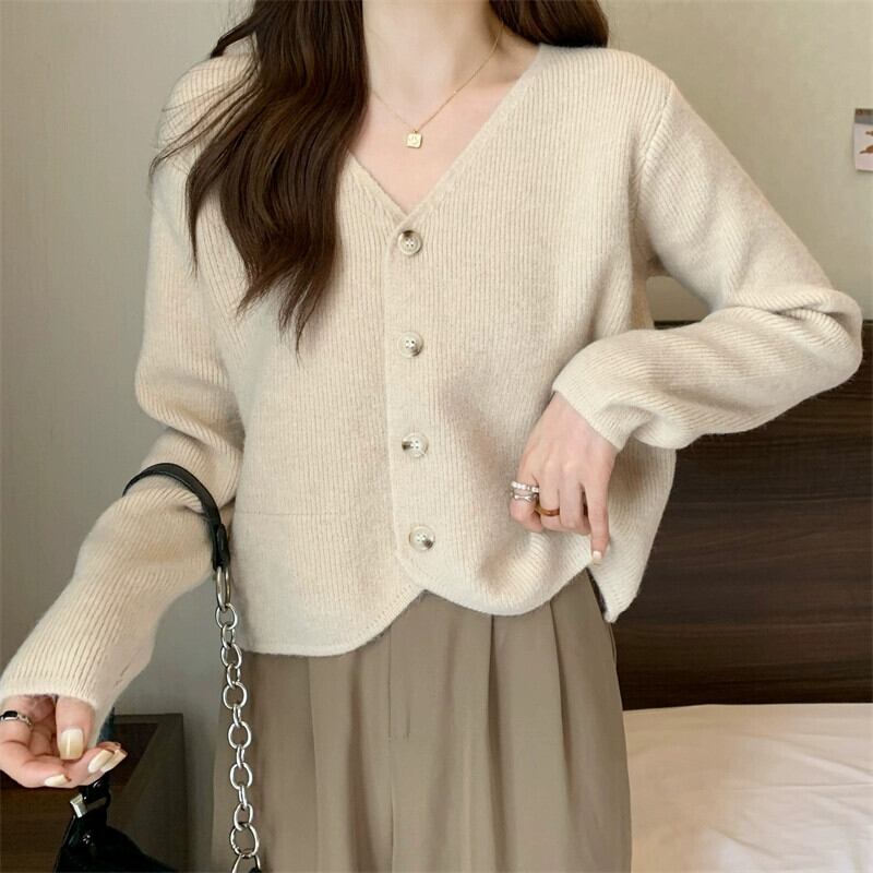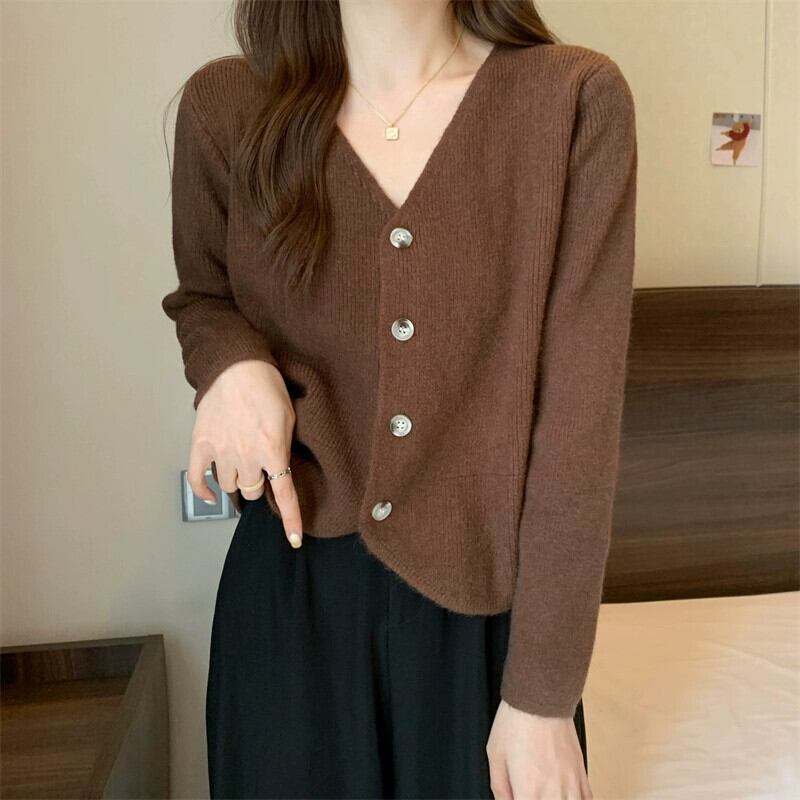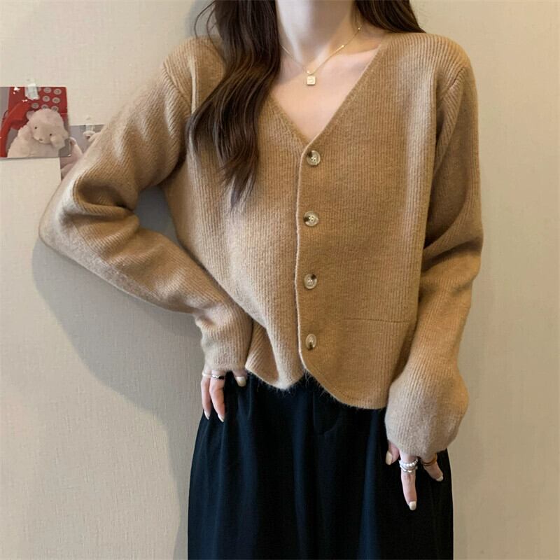不規則なショートカーディガンセータージャケット女性の秋と冬のレトロなルーズアウターウェア怠惰な V ネック長袖セーター ロング オータム 秋物 ウィンター 冬物 Vネック 7460046954269677 | framboise21