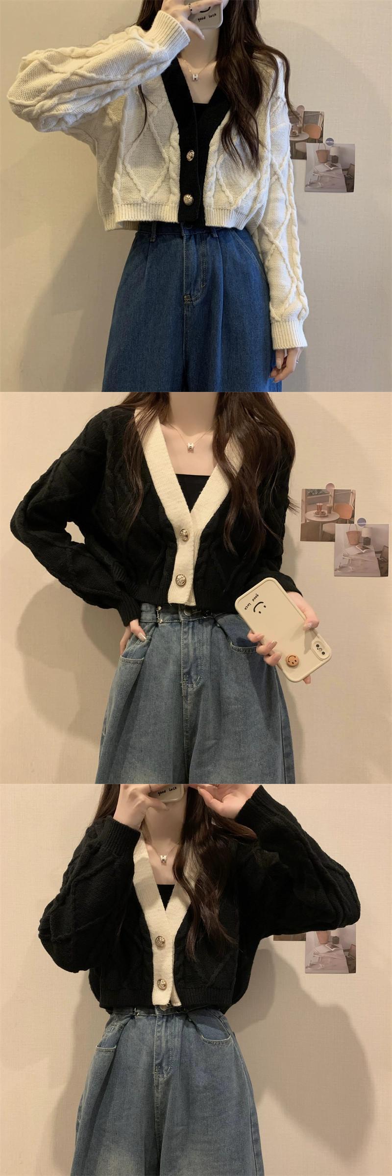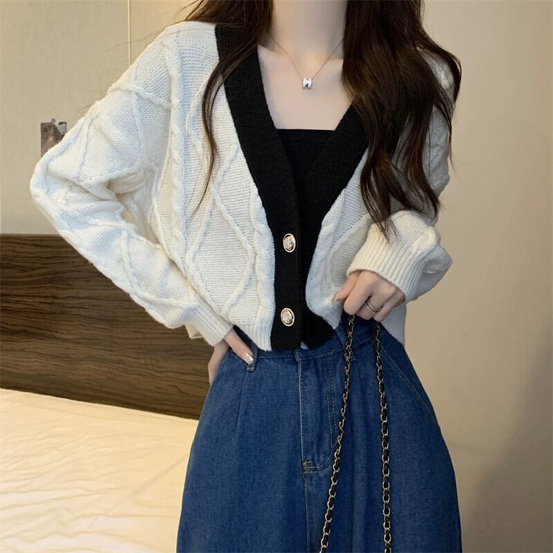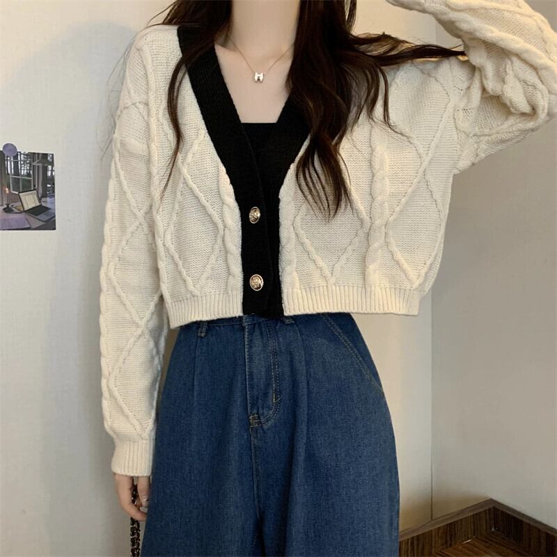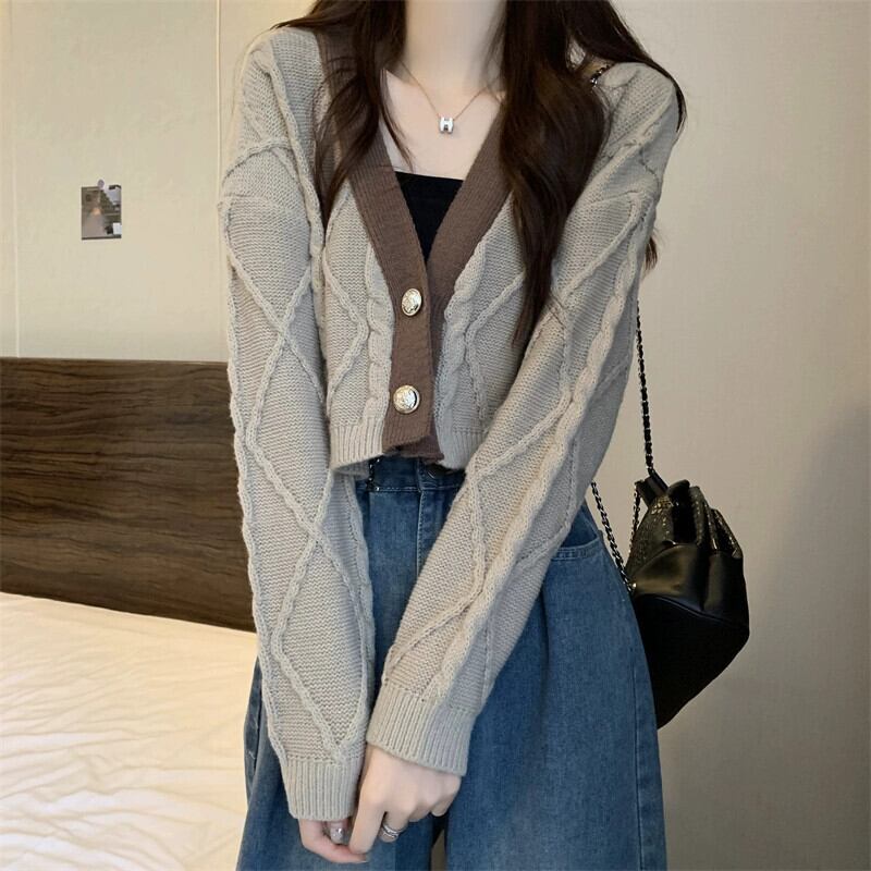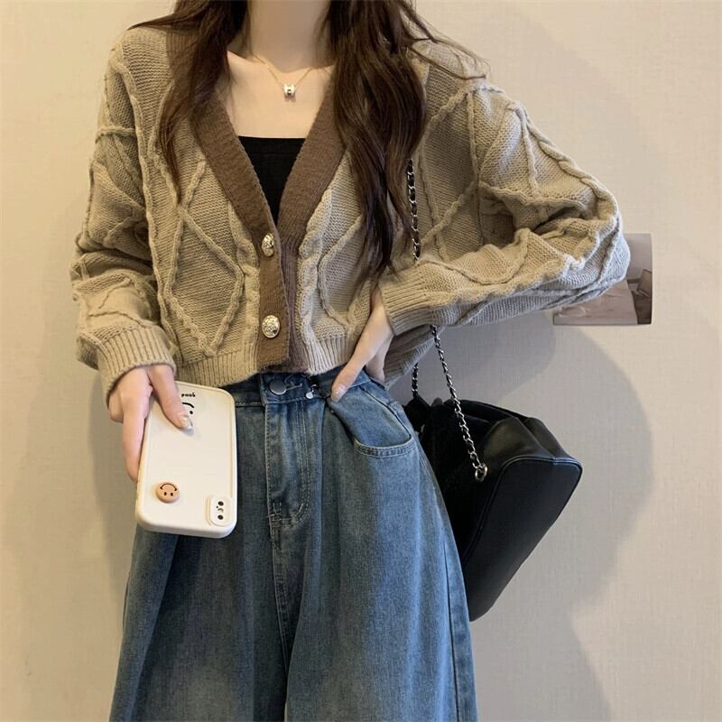 小さなハイウエストショートツイストセータージャケット女性の秋と冬のレトロなルーズアウターウェア怠惰なVネックニットカーディガン オータム 秋物 ウィンター 冬物 7460062416577291 | framboise21