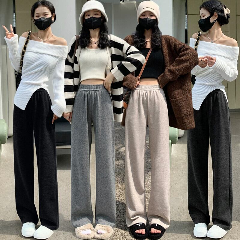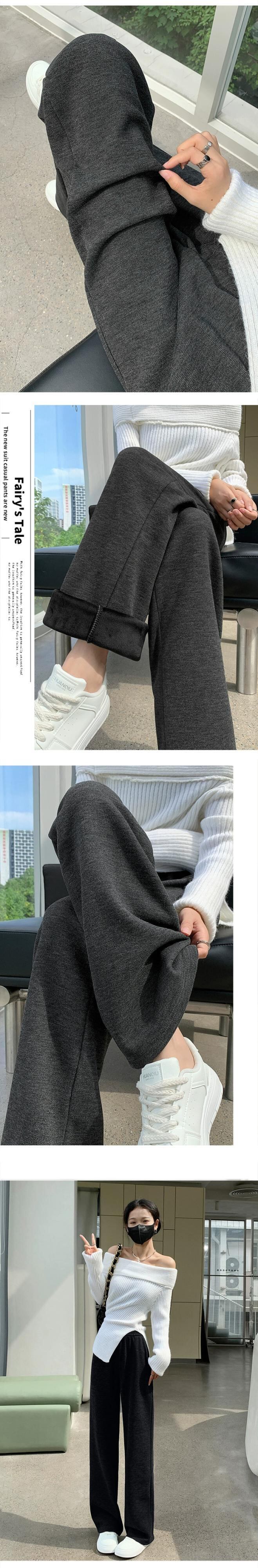 グレーニットワイドレッグパンツの女性の秋冬 2023 新しいルーズストレートハイウエストソフトとワックスの床の長さのカジュアルパンツ オータム 秋物 ウィンター 冬物 7460069417418660 | framboise21