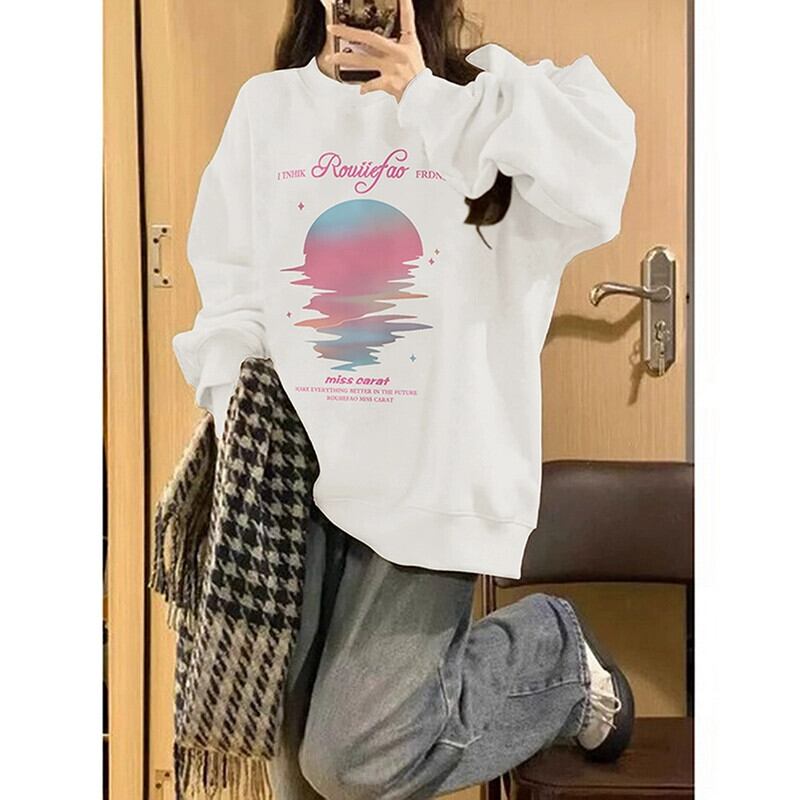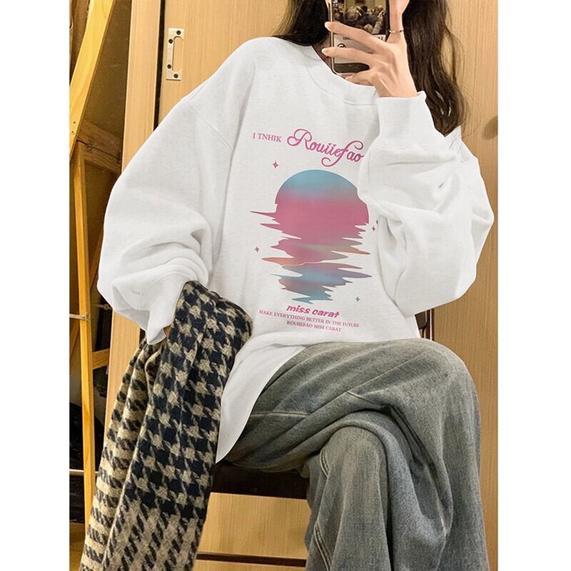 オーバーサイズベルベット肥厚トレーナー女性 2023 新スタイルの秋と冬ゆるい怠惰なスタイル白フードレスジャケット ホワイト オータム 秋物 ウィンター 冬物 74600228537853 | framboise21