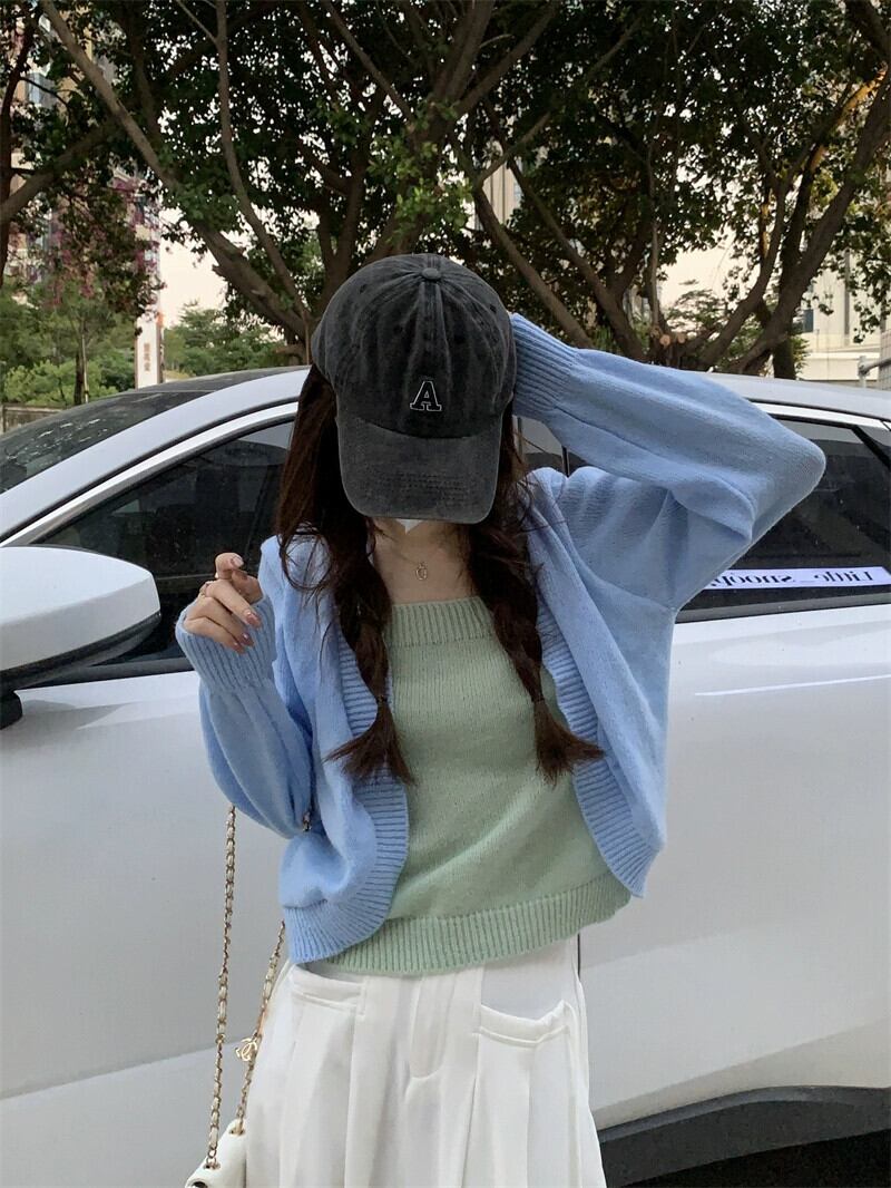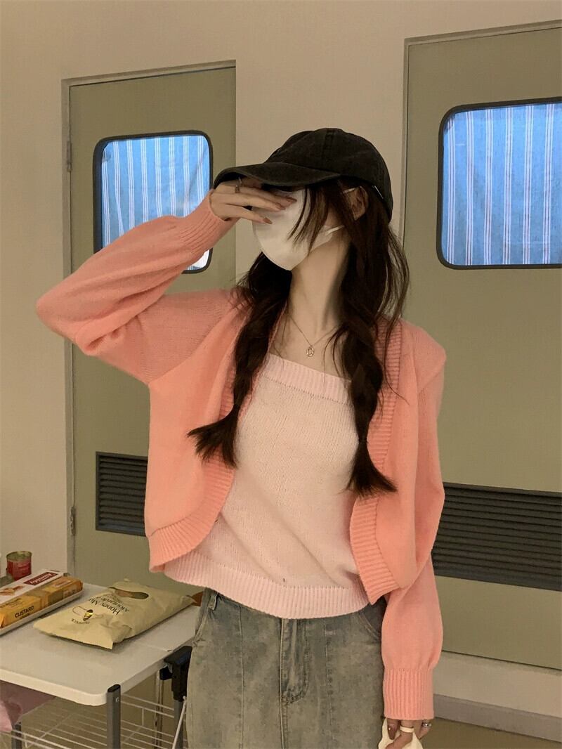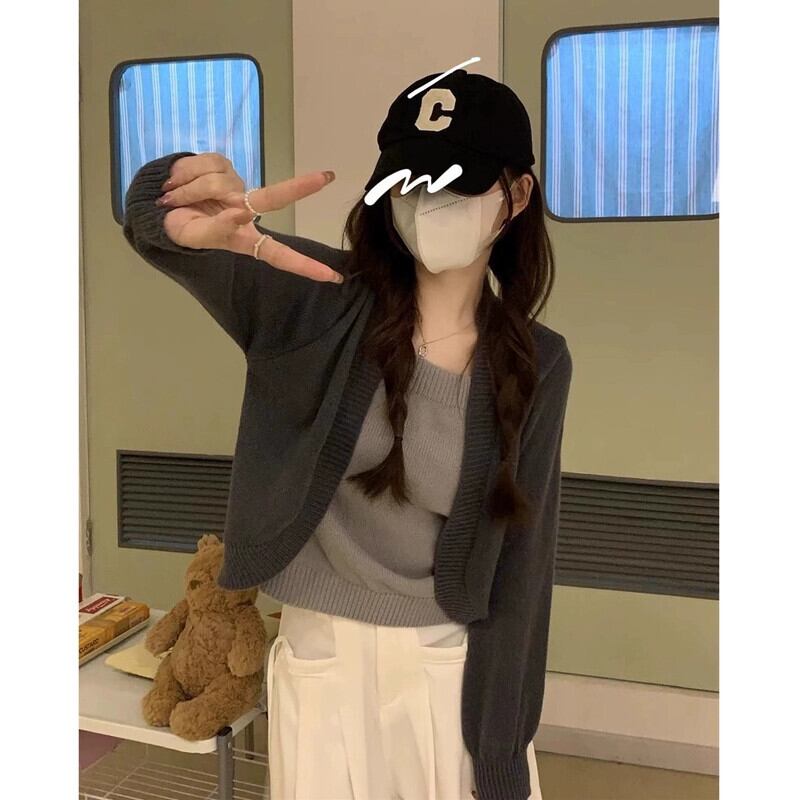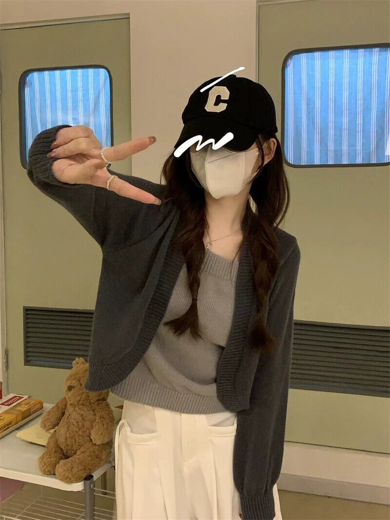偽ツーピースニットセーター女性秋冬 2023 新しいルーズアウターウェアスリミングショートスクエアカラートップグレー オータム 秋物 ウィンター 冬物 スクウェア 7460046233955895 | framboise21