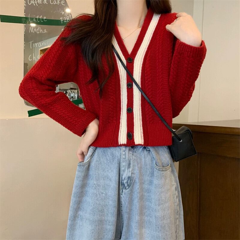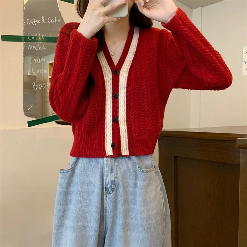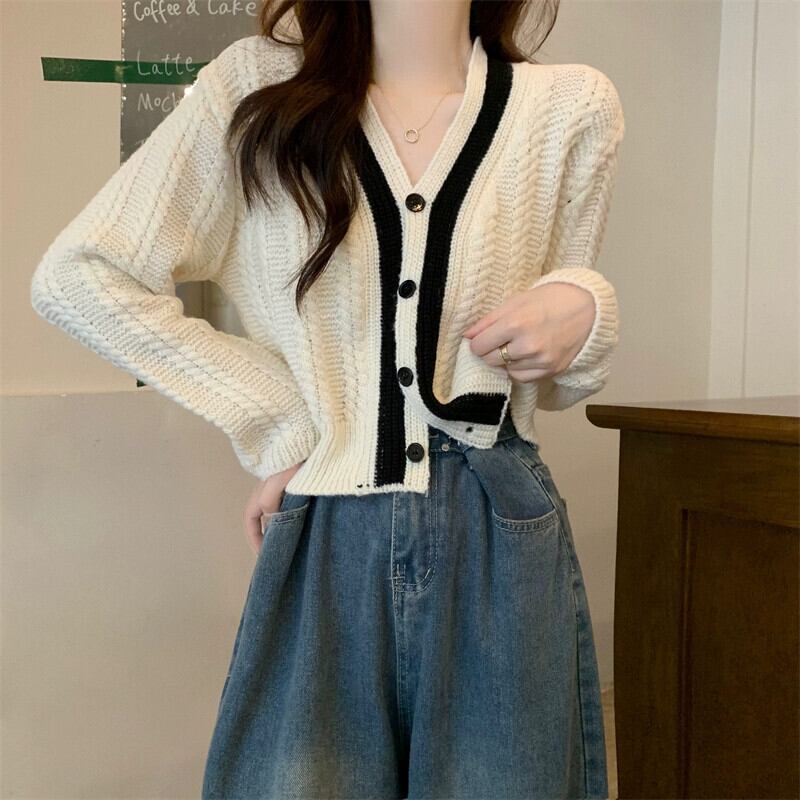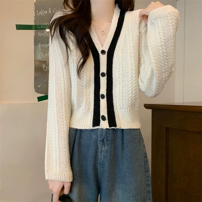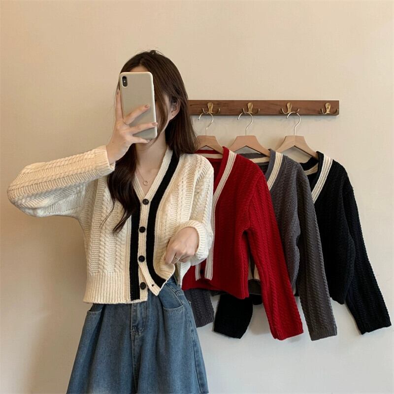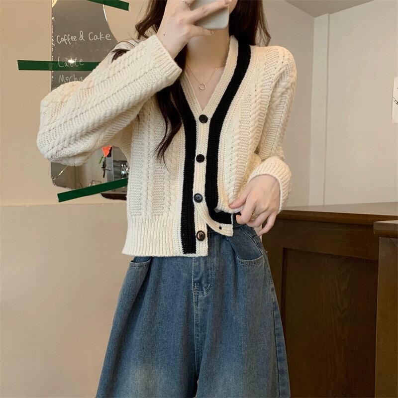 ショートツイストセータージャケット女性秋冬 2023 新しい人気スタイル怠惰なスタイルルーズアウターウェア v ネックニットカーディガン オータム 秋物 ウィンター 冬物 Vネック 7460031672745619 | framboise21