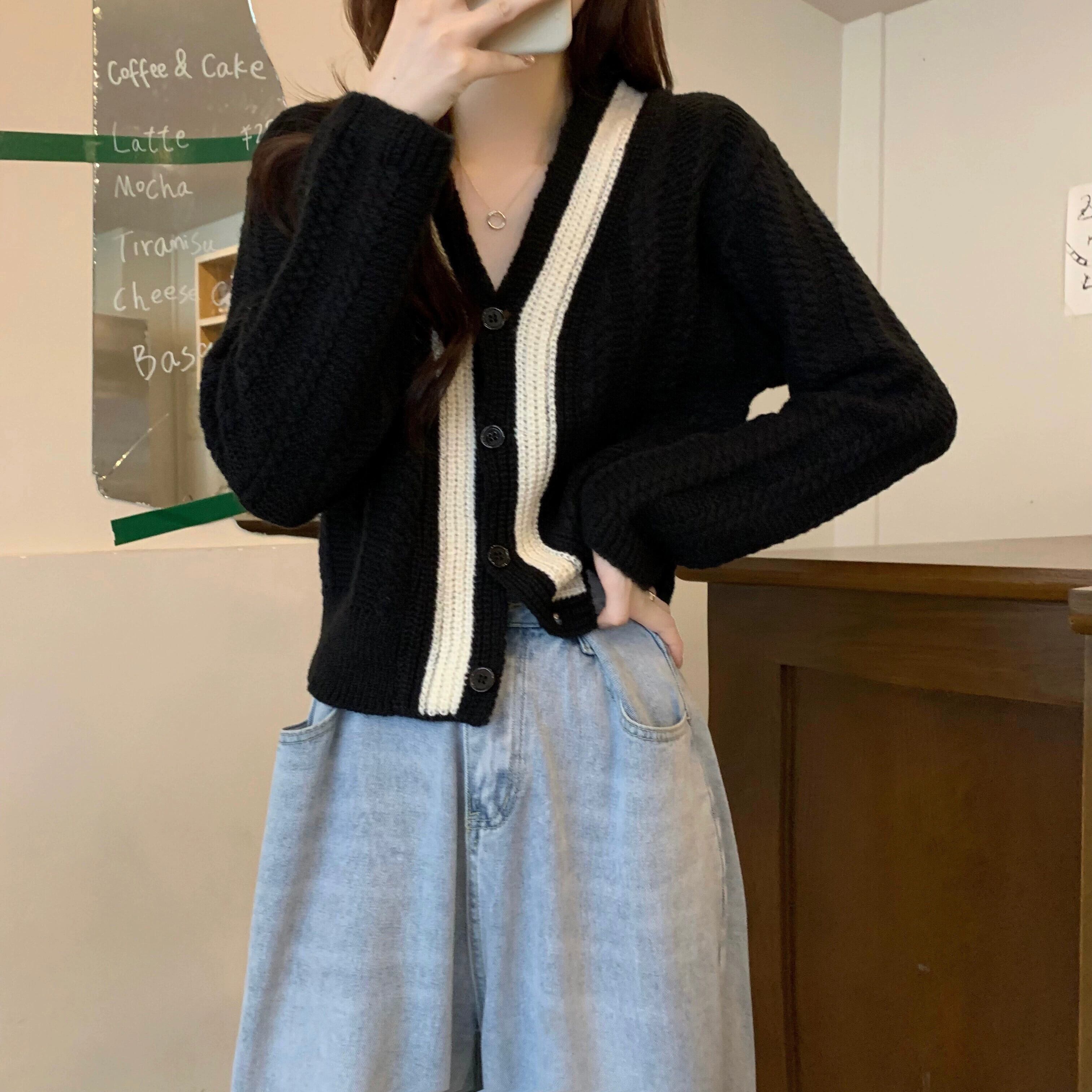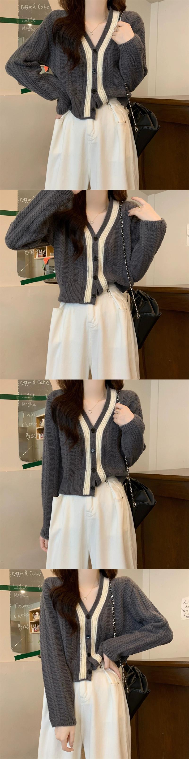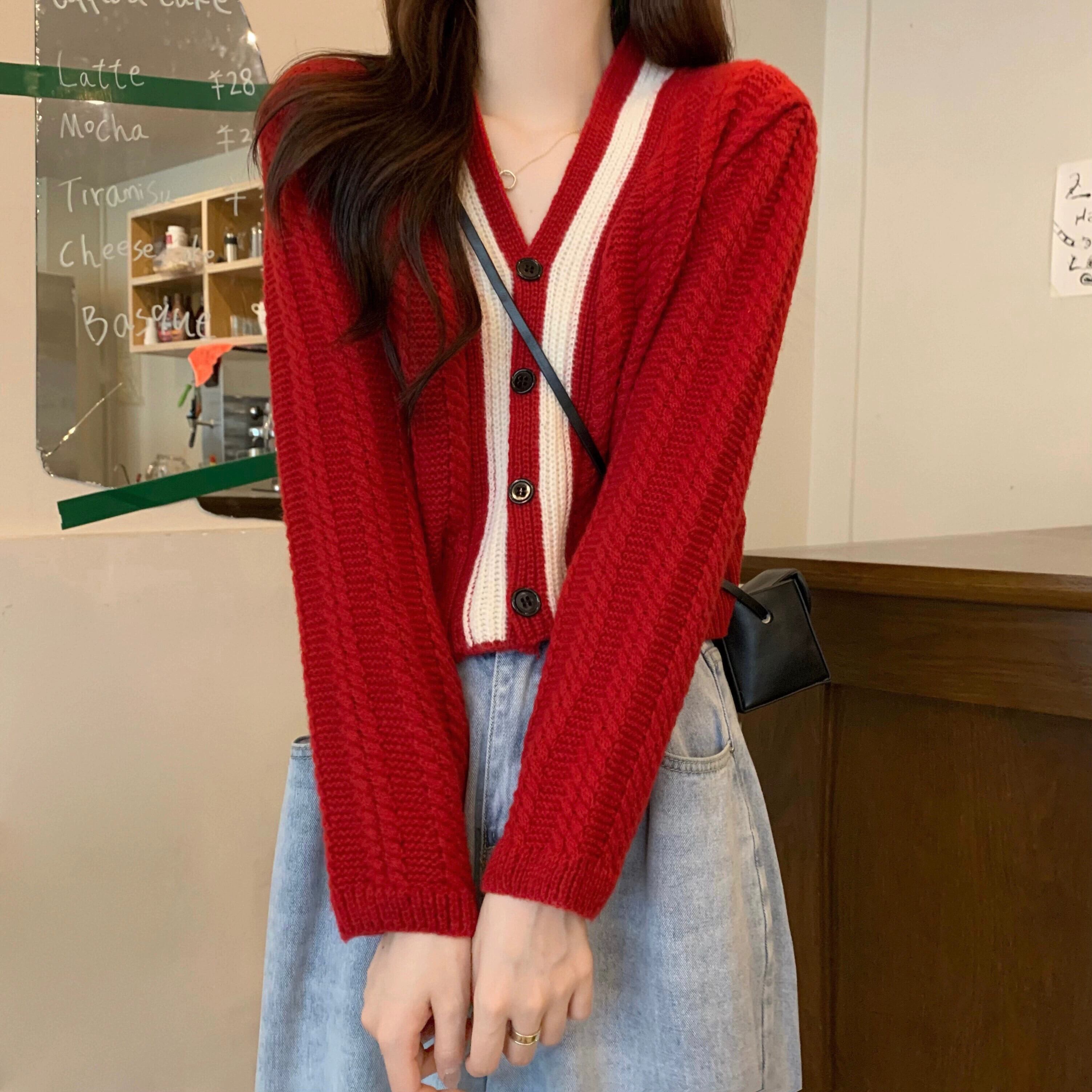 ショートツイストセータージャケット女性秋冬 2023 新しい人気スタイル怠惰なスタイルルーズアウターウェア v ネックニットカーディガン オータム 秋物 ウィンター 冬物 Vネック 7460031672745619 | framboise21