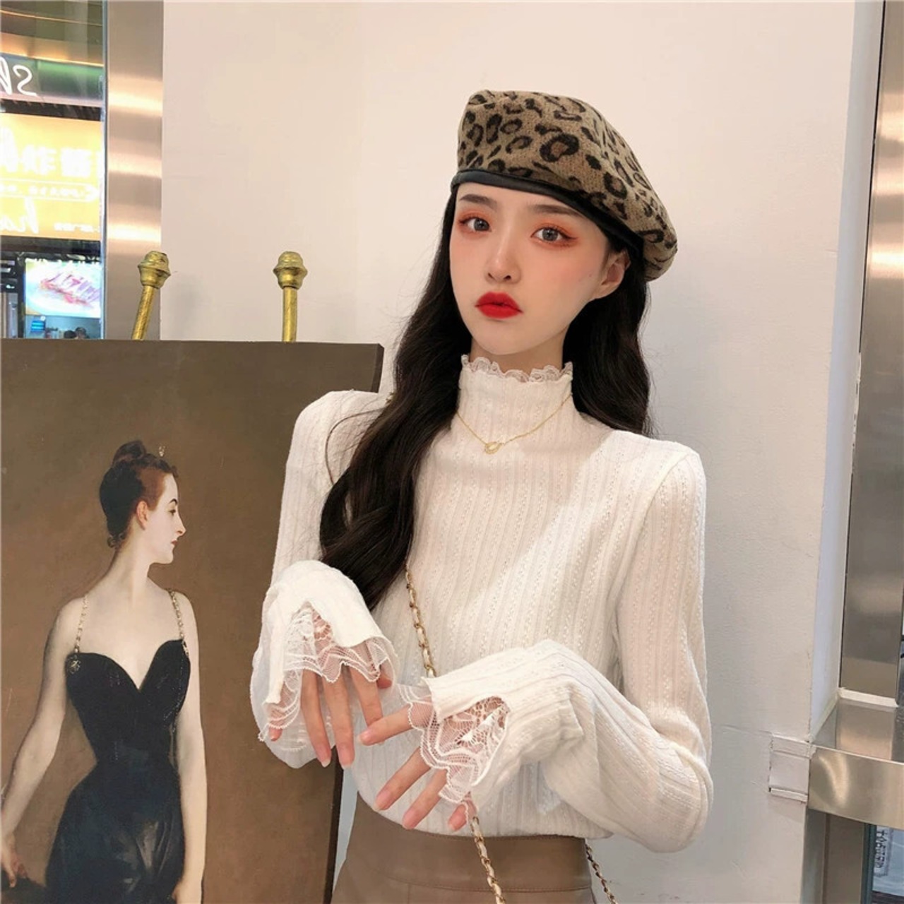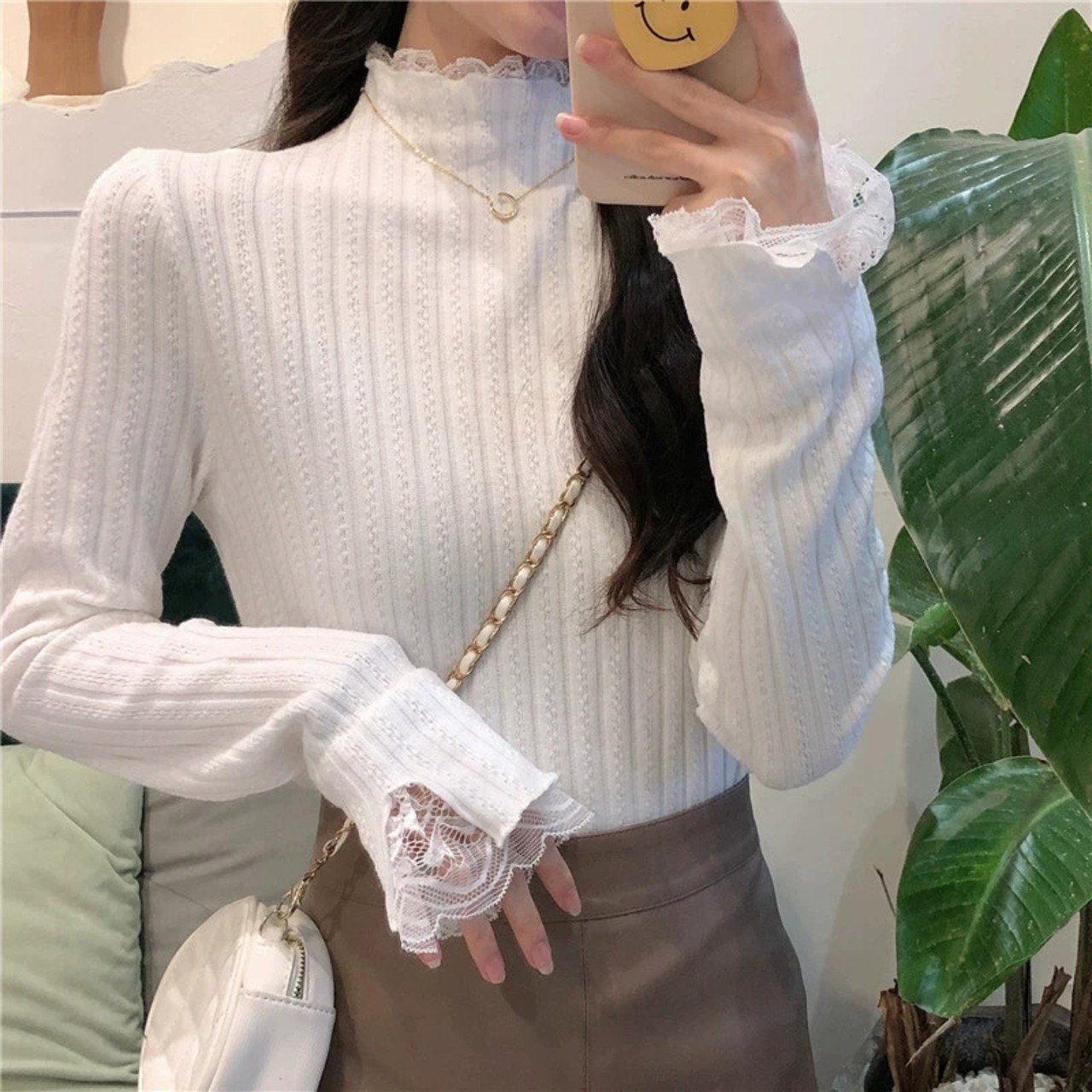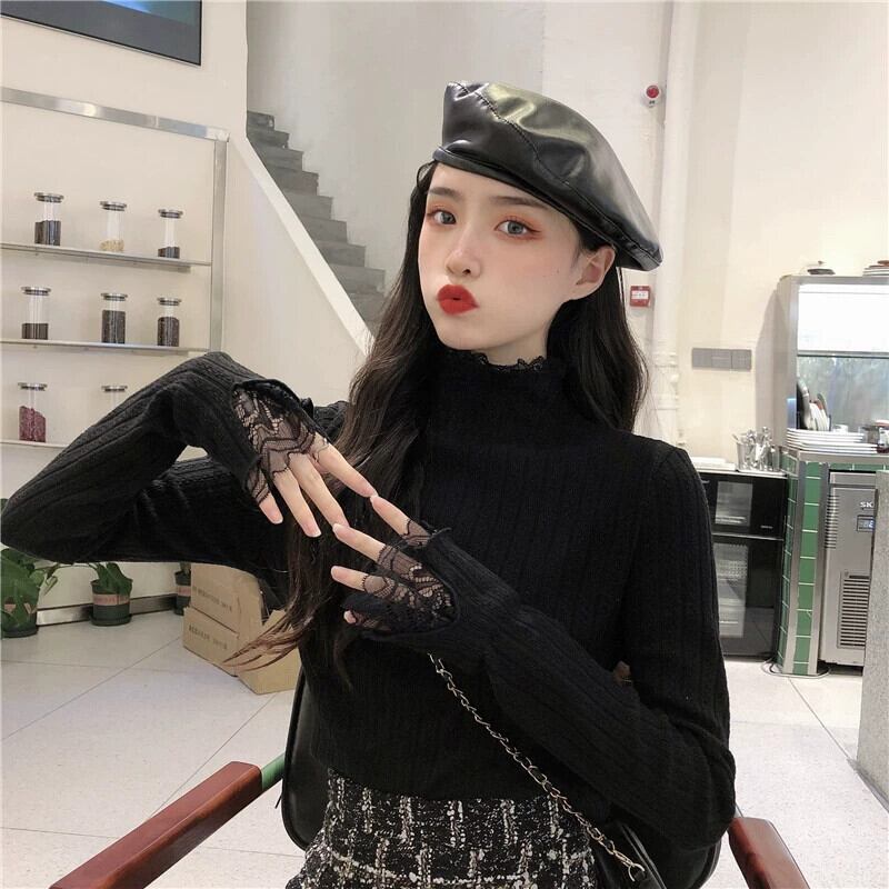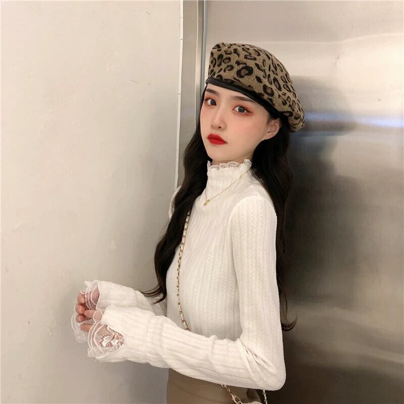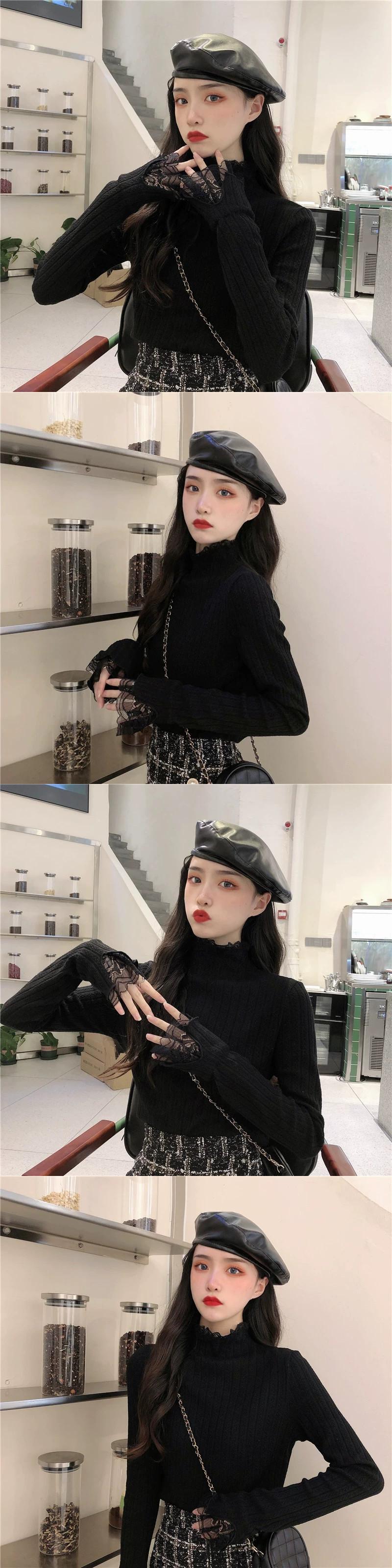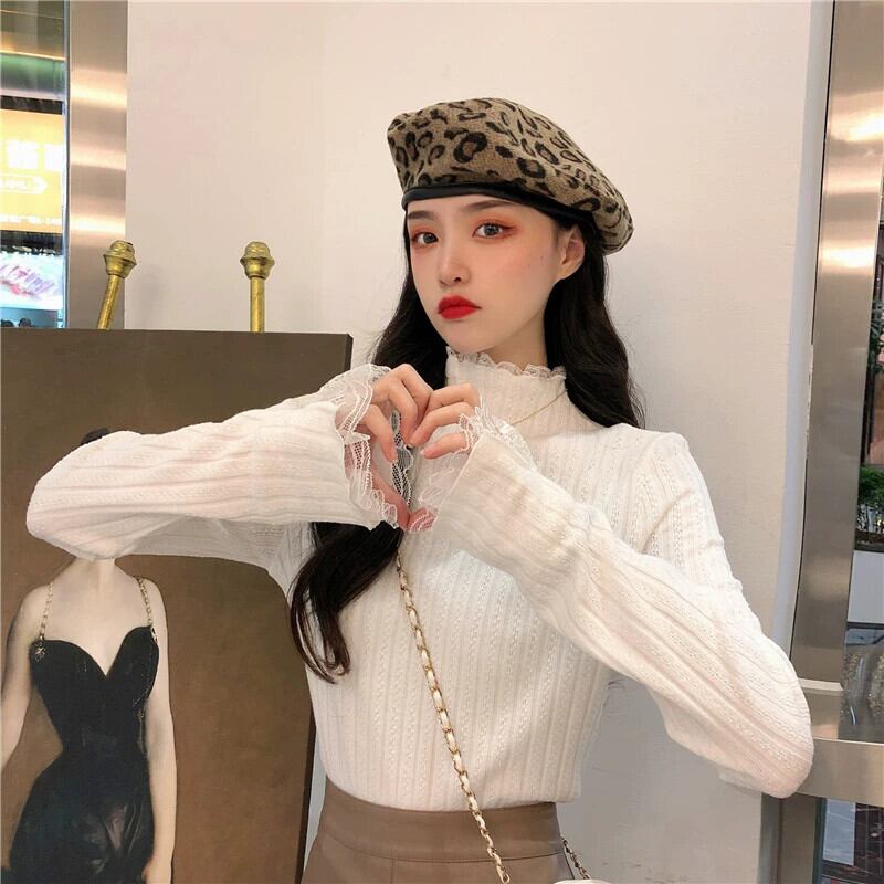 ベルベットと厚みのあるレースのハーフタートルカラーボトリングシャツ女性、秋と冬のファッショナブルでスリムフィット、長袖ニットセーター付き、白 ロング ホワイト オータム 秋物 ウィンター 冬物 7460082290956748 | framboise21