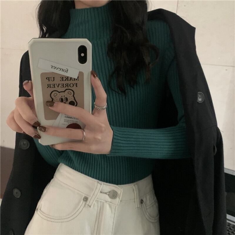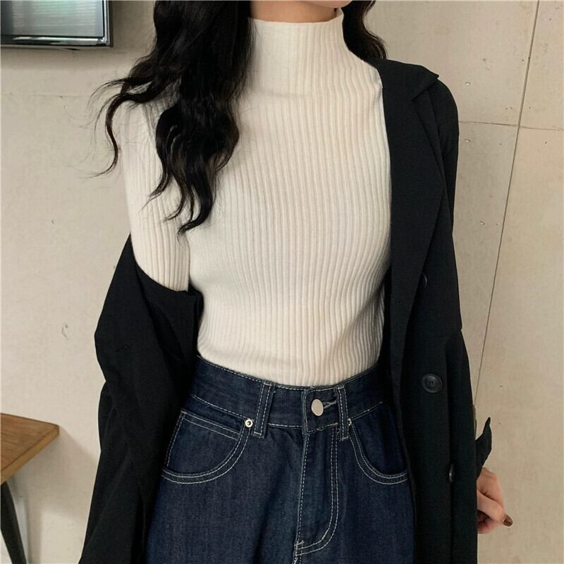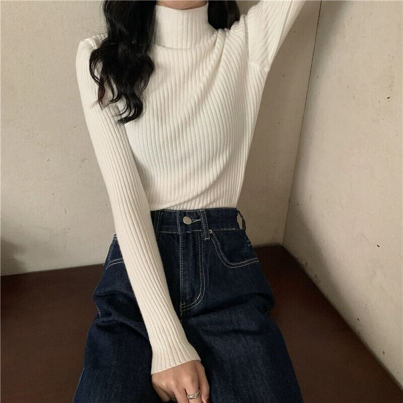 ホワイトハーフタートルネックボトリングシャツ 2023 新しい女性の秋と冬のセーターファッショナブルな西洋スタイルのスリムインナー長袖セーター ロング オータム 秋物 ウィンター 冬物 7460098115421373 | framboise21