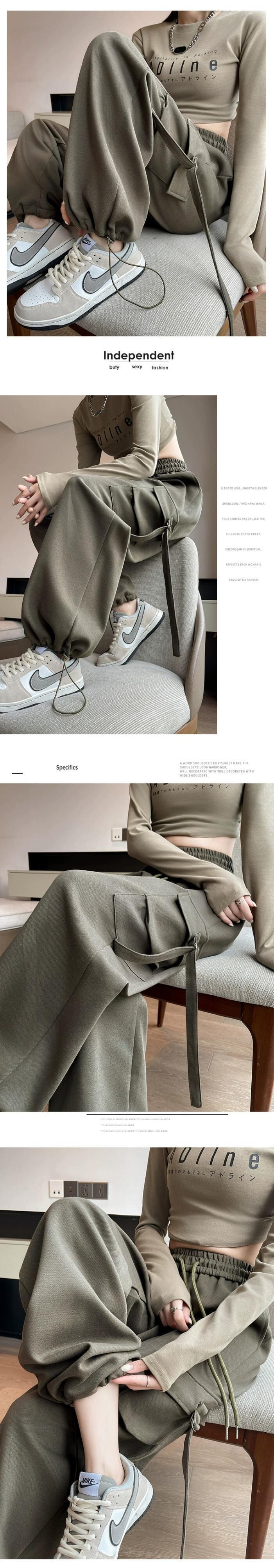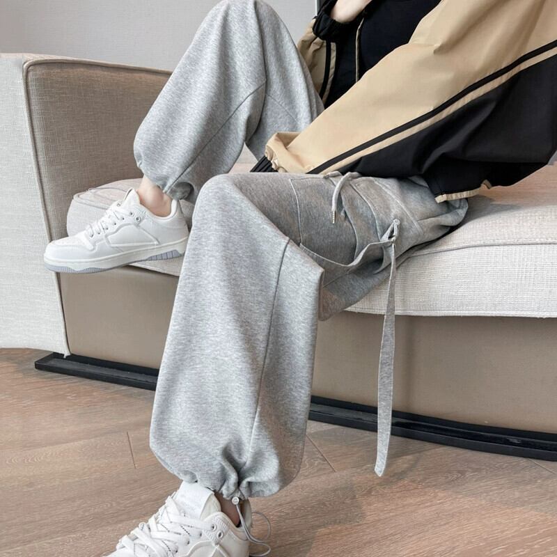 秋と冬のアメリカングレーの脚付きオーバーオールの女性、カジュアルなストレートレッグスウェットパンツ、ルーズでスリムなハイウエストのドレープパンツ ウィンター 冬物 7460080470952794 | framboise21