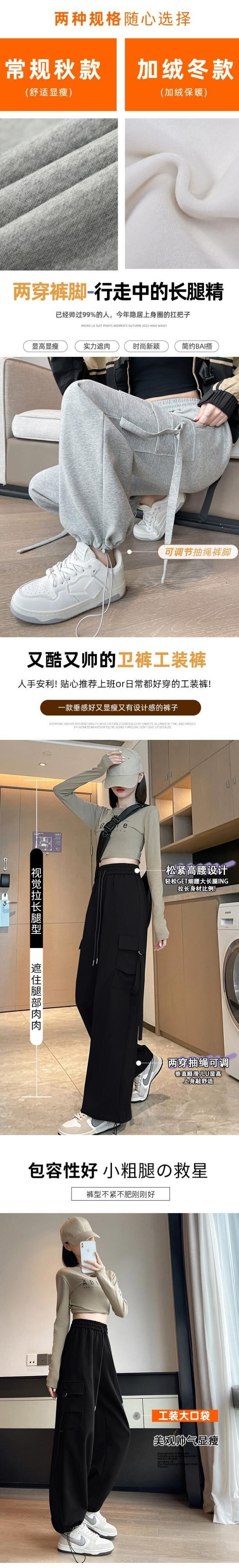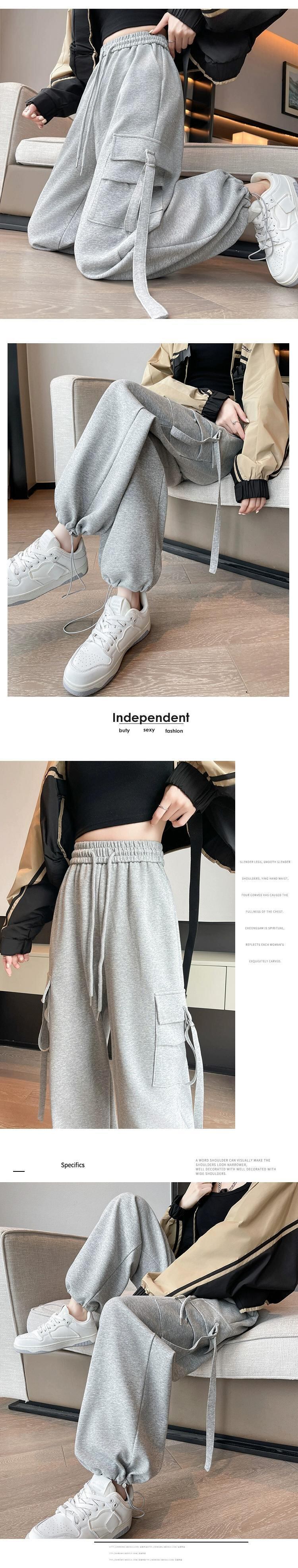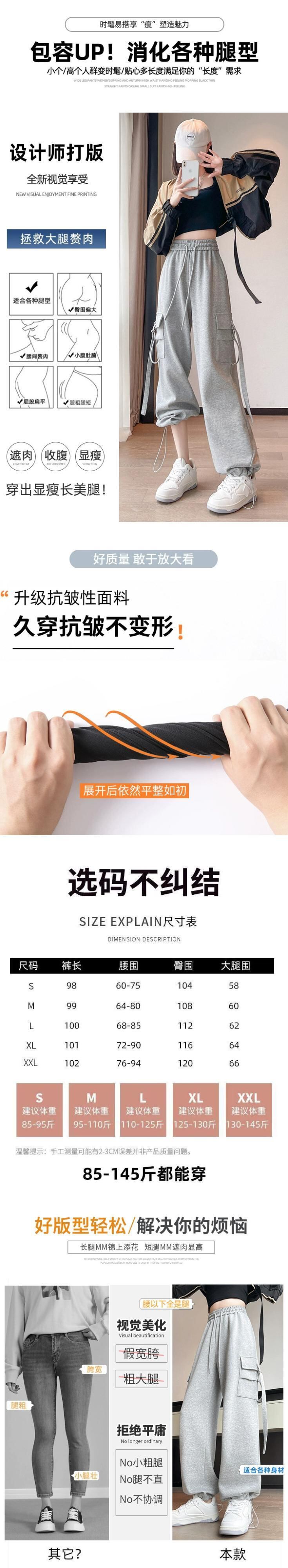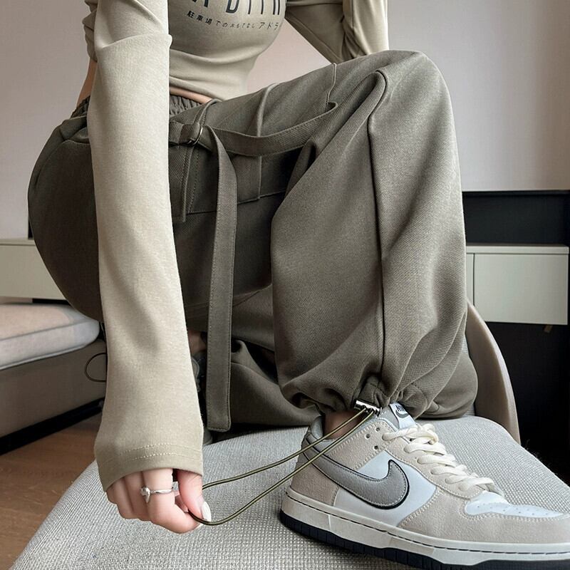 足首付きスポーツパンツ、レディース、秋と冬のアメリカンスタイルのハイウエストワークパンツ、ルーズでスリム、多用途のワイドレッグストレートスウェットパンツ オータム 秋物 ウィンター 冬物 7460046395330912 | framboise21