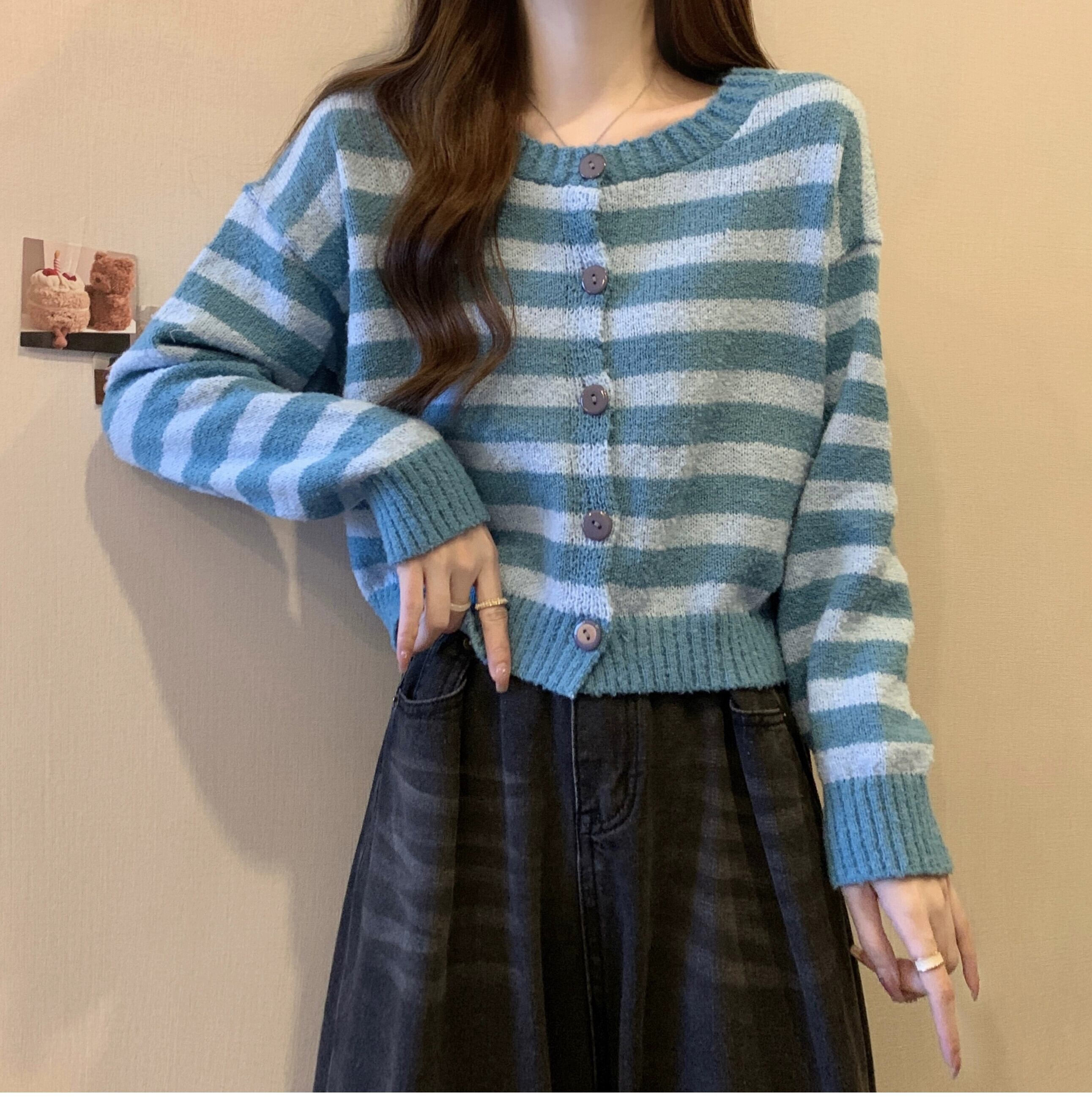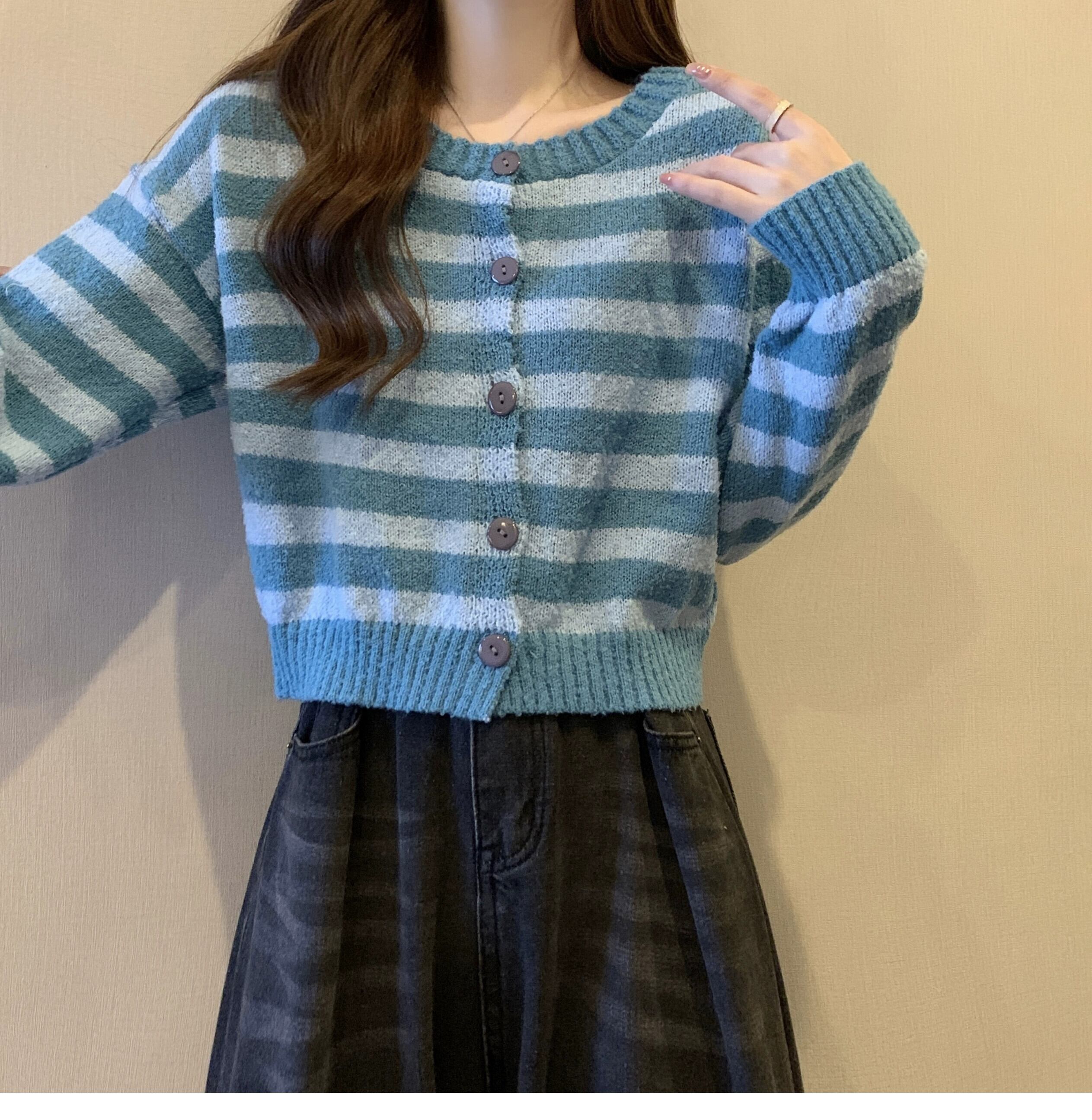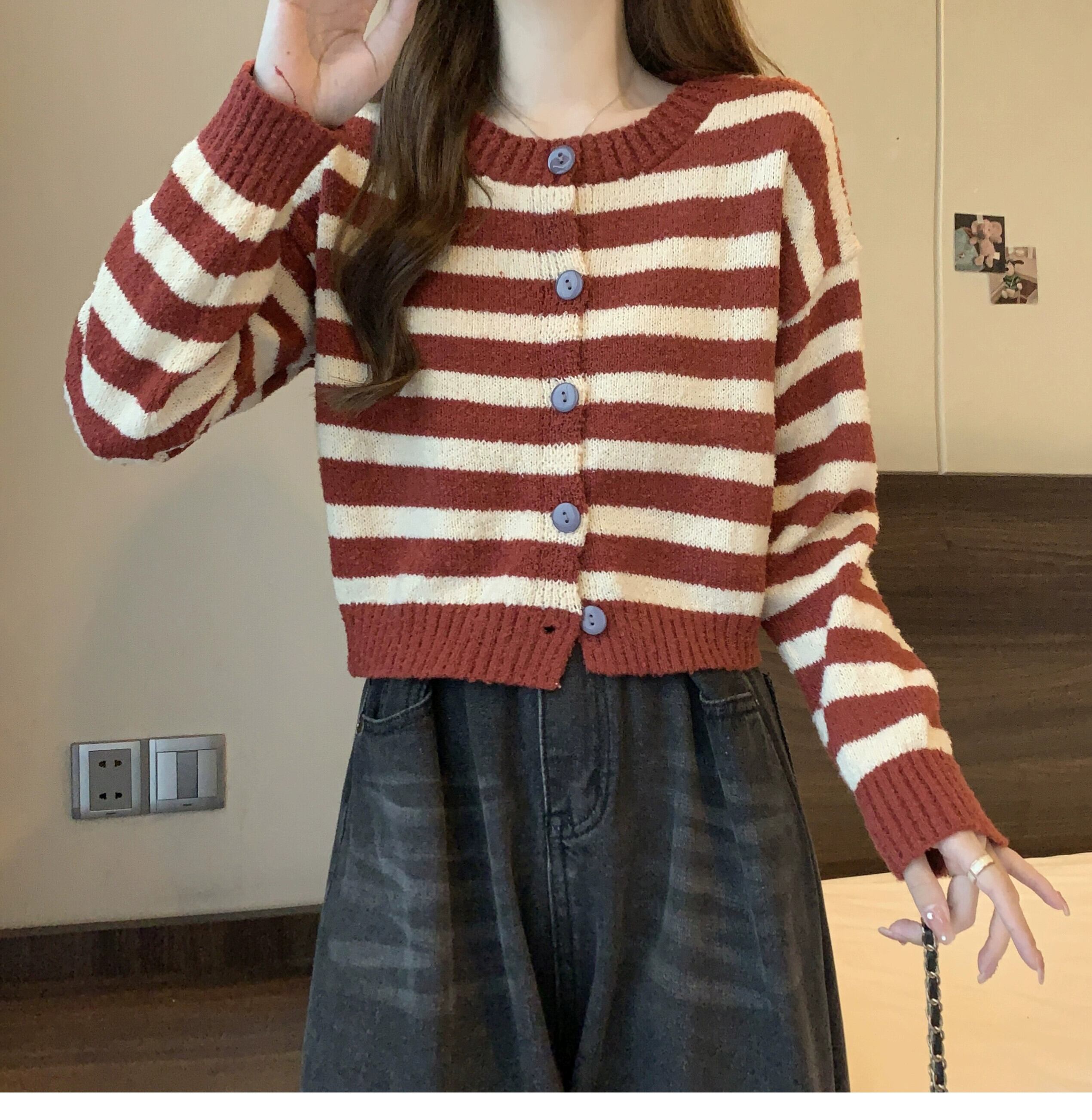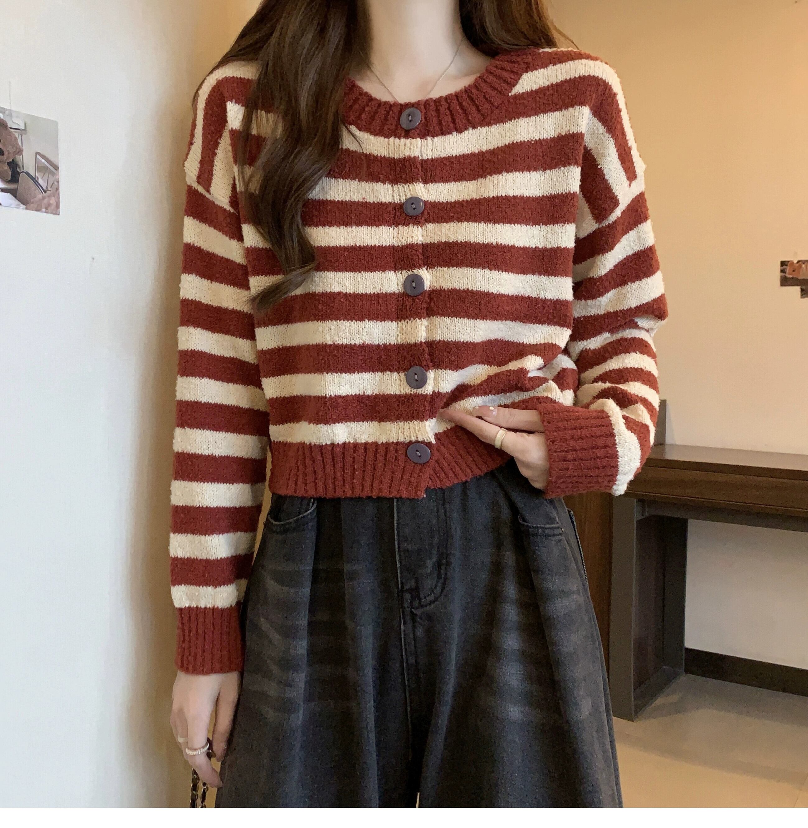 レトロなストライプのショートソフトワックスセータージャケットレディース、秋と冬のルーズなアウターウェア、怠惰なスタイル、多用途の長袖ニットカーディガン ロング オータム 秋物 ウィンター 冬物 7460020626687431 | framboise21